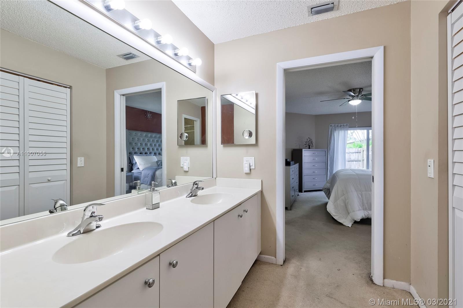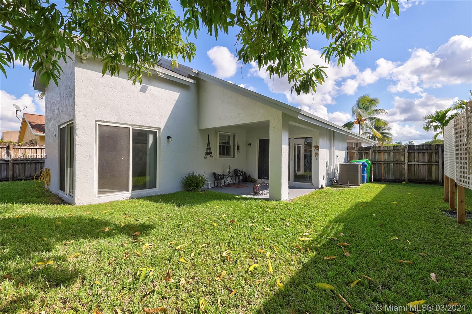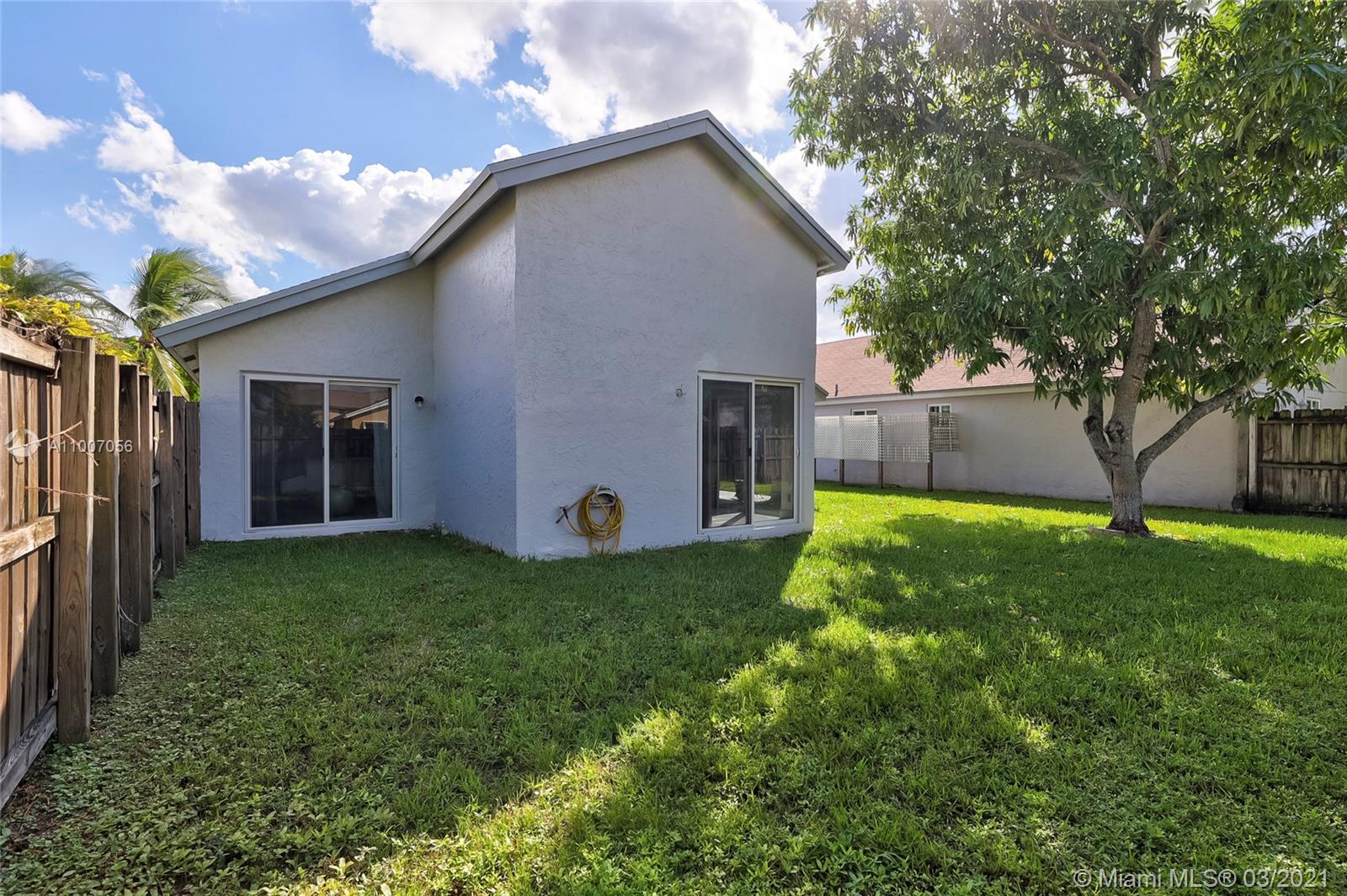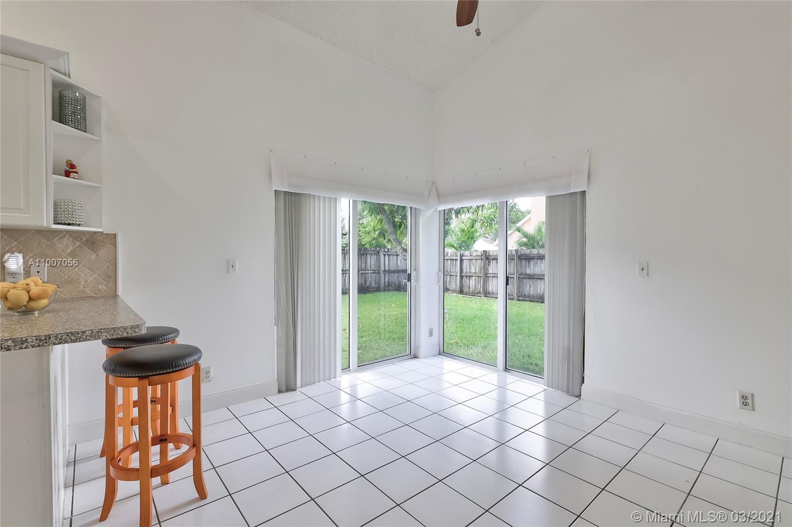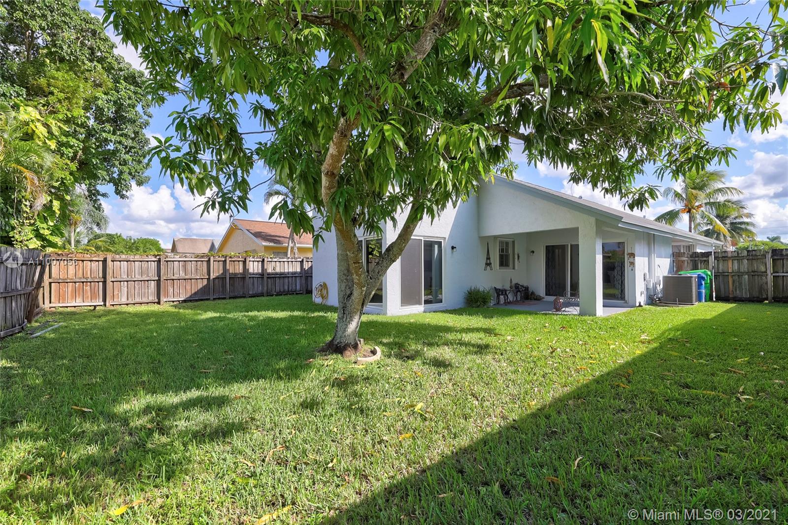 Beautiful 3 bedroom 2.5 bath home with 2 car garage in the desirable Spring Tree community. Sought after open floor plan, beautiful vaulted ceilings and split bedrooms. Huge private fenced-in backyard pool size lot. Cover porch. Impact resistant sliding glass doors/hurricane shutters on windows and the garage features a hurricane impact door. Tile flooring throughout main living area, bamboo flooring in two bedrooms and carpet in the master bedroom with a walk-in closet . Kitchen has been renovated / stainless steel appliances (2019). Bathroom with tub recently renovated with exquisite tiling. Freshly painted exterior and interior. Minutes away from Sawgrass Mills Mall, major highways I-75 /I-595, shopping centers, restaurants. Safe family community with a common pool.