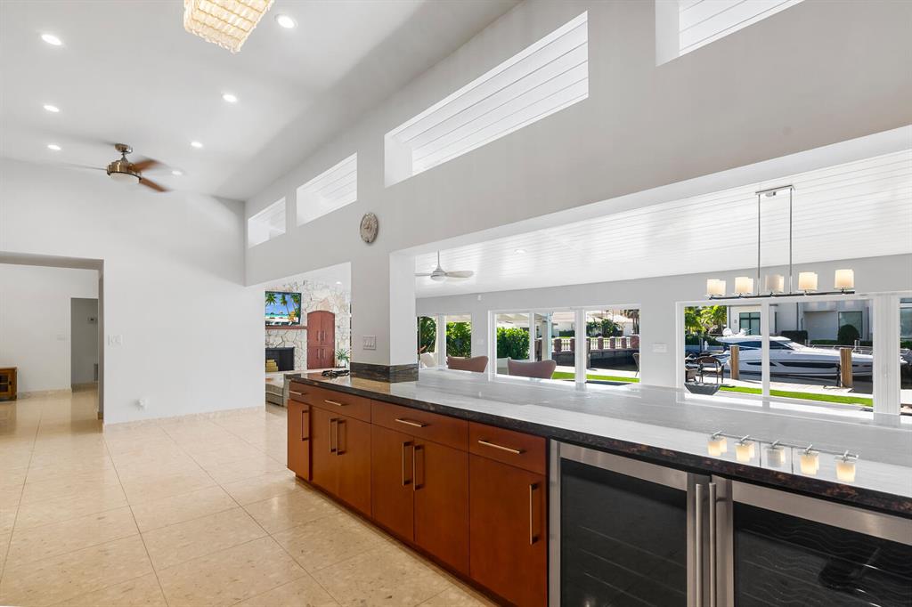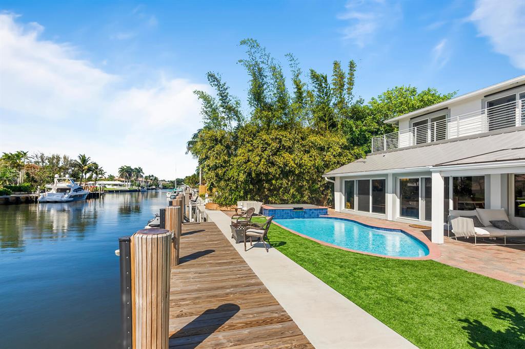 This totally remodeled home is located on prestigious Boca Harbor Island. The private Boca Harbour Island is the crown jewel of Boca Harbour's ultimate waterfront communities. The Island is truly a yachtsman's paradise being just one of 45 private beautiful homes. The 4BR/4BA, 4680 SF house with tranquil views with a brand new 87 Ft. sea wall and 50 Ft dock as well as a metal roof and deck finished in 2019. An amazing private, large corner lot, with no fixed bridges to ocean. Situated on a wide 120 Ft of deep-water turning basin, there are no HOA fees. Including pool and hot tub with a new spa heater, impact windows/doors, exotic tropical landscaping surrounds the entire house. The panoramic water views fill this bright, open floor plan home with