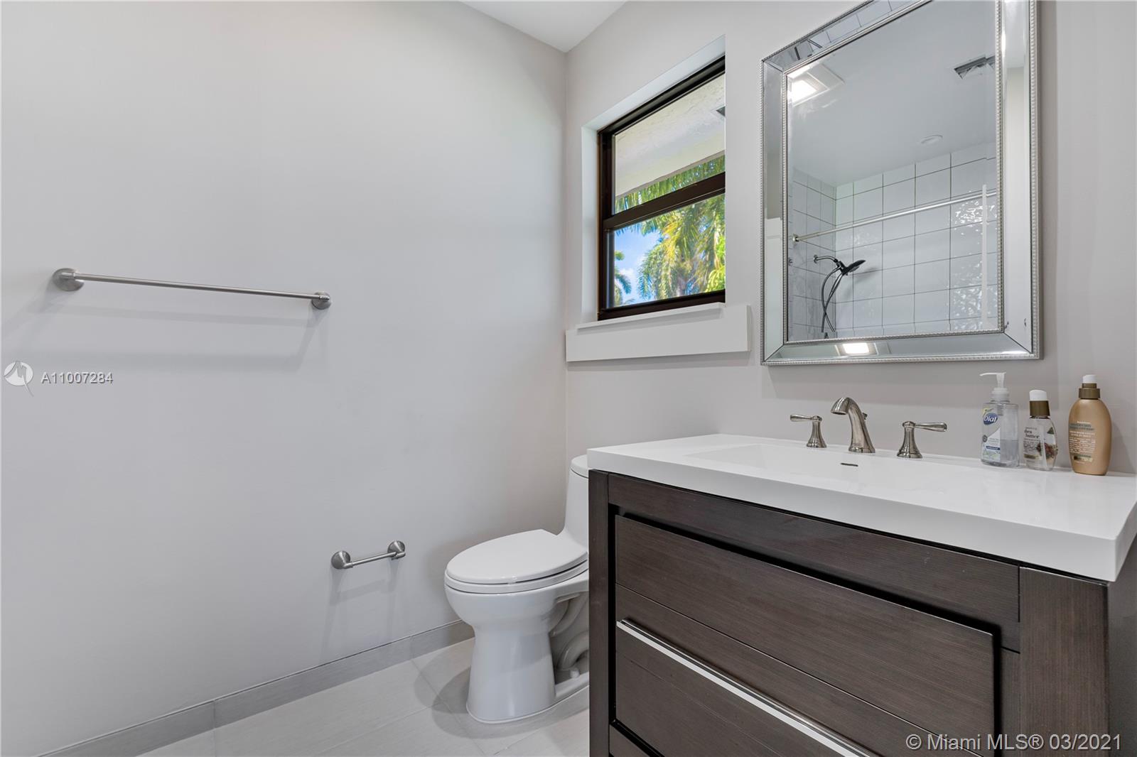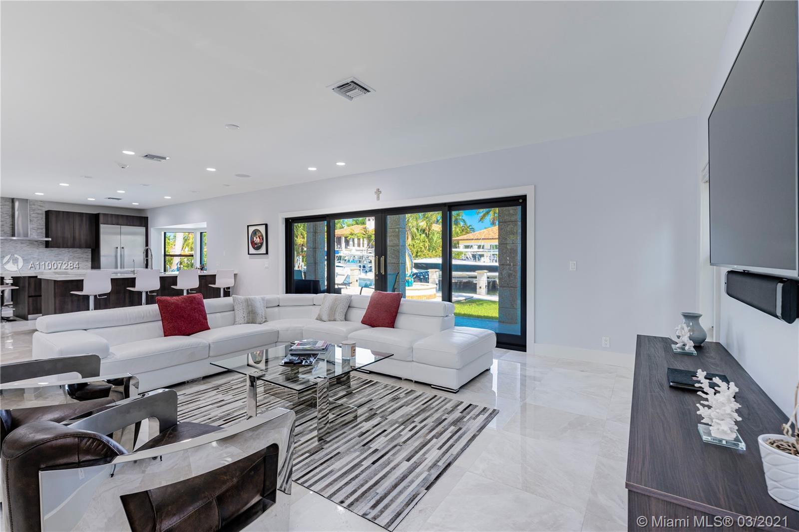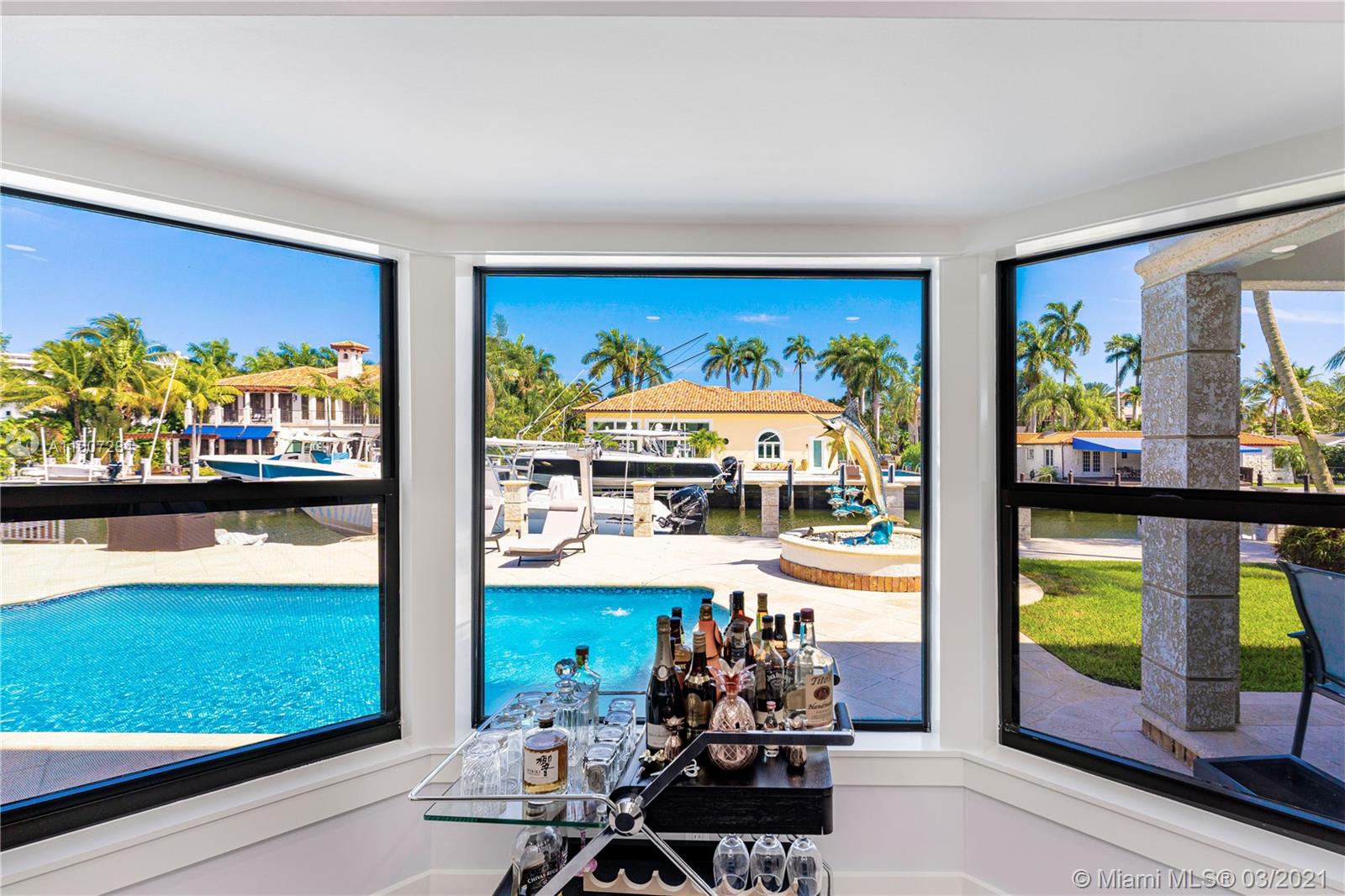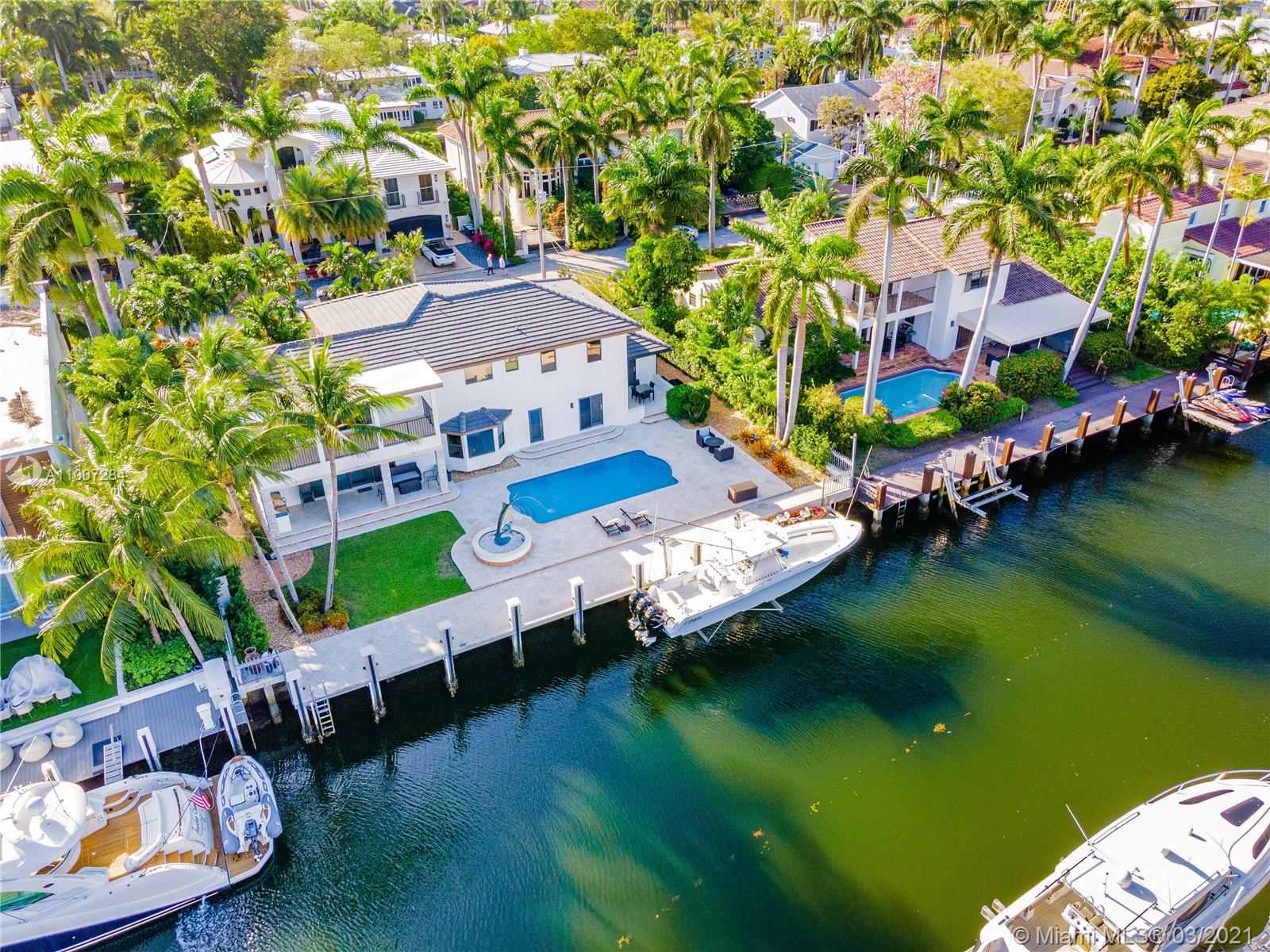 Gorgeous waterfront property with 100 ft private dock and boat lift. Close to intracoastal water, and ocean access. This 5-bedroom home has a full bathroom in every room, and 1 half bath downstairs. Master suite is upstairs with exquisite bathroom with large walk in shower and deep bathtub, both overlooks the water. Master suite also features private patio overlooking the water. Kitchen completely remodeled with new cabinets, deep sink, kitchen island, and quartz countertops. House also features impact windows throughout property. Backyard features a heated pool, covered patio with outdoor BBQ, and faces the east. 3 car garage with ample parking in front driveway. Private walkway to entrance to the front of the home.