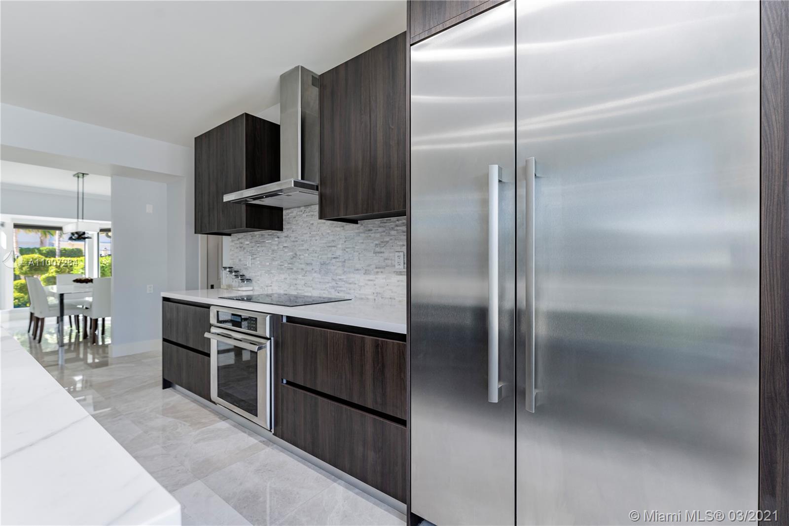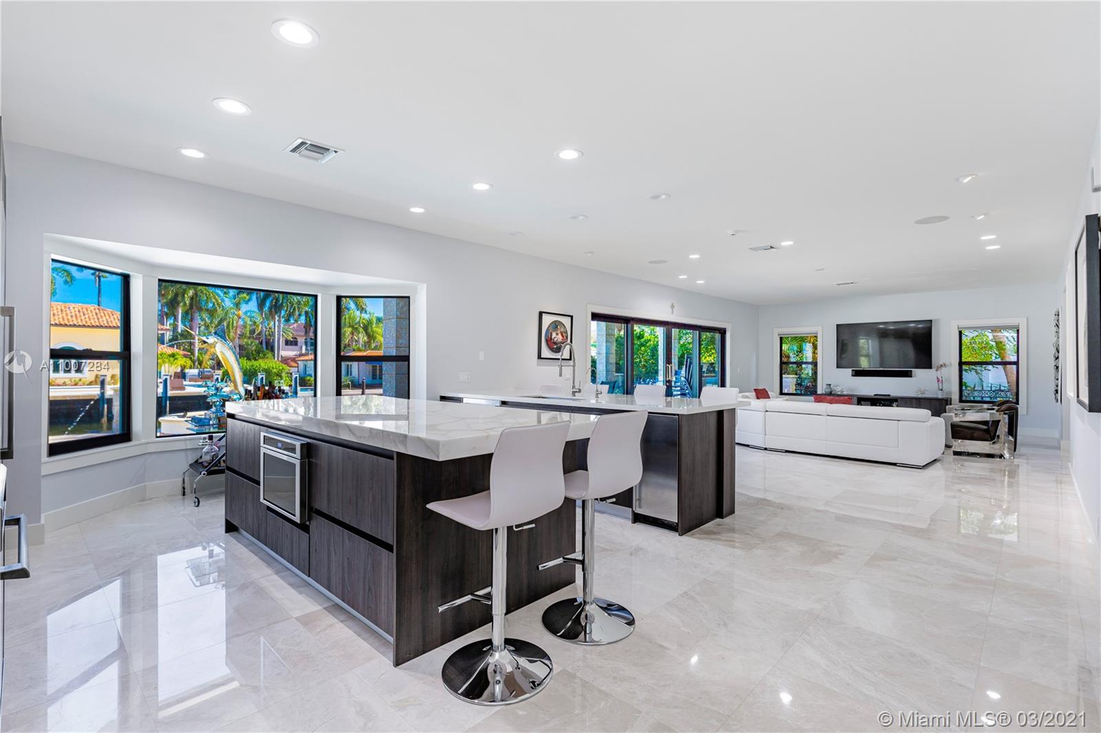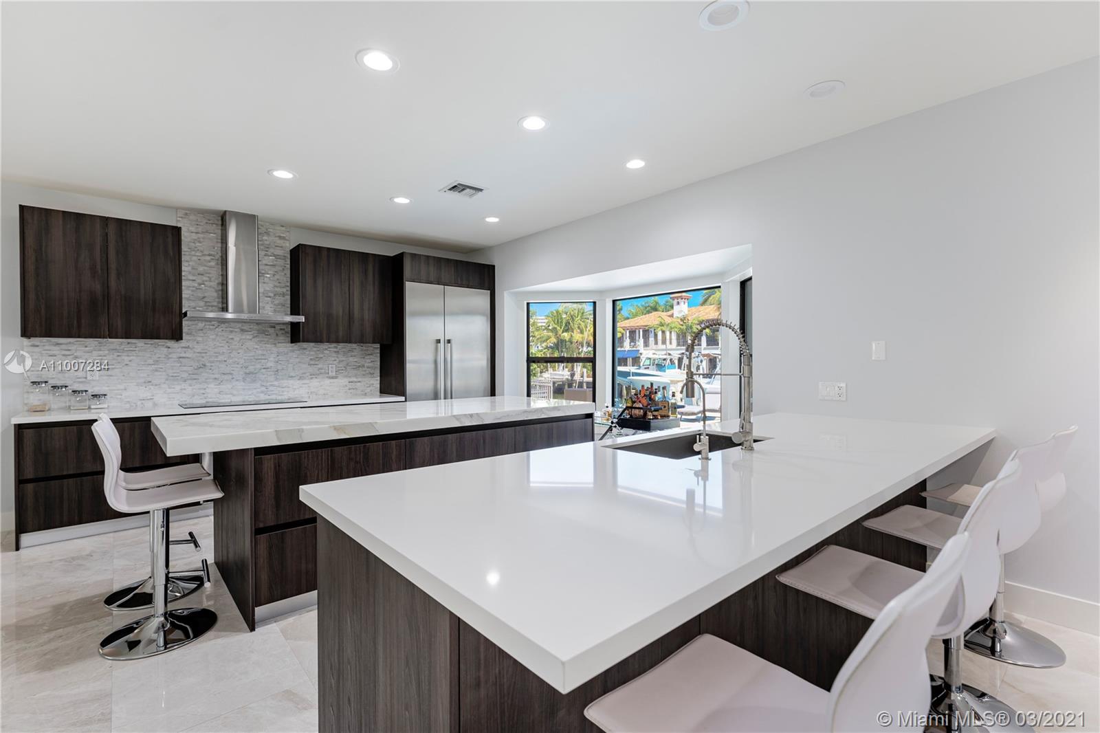 Gorgeous waterfront property with 100 ft private dock and boat lift. Close to intracoastal water, and ocean access. This 5-bedroom home has a full bathroom in every room, and 1 half bath downstairs. Master suite is upstairs with exquisite bathroom with large walk in shower and deep bathtub, both overlooks the water. Master suite also features private patio overlooking the water. Kitchen completely remodeled with new cabinets, deep sink, kitchen island, and quartz countertops. House also features impact windows throughout property. Backyard features a heated pool, covered patio with outdoor BBQ, and faces the east. 3 car garage with ample parking in front driveway. Private walkway to entrance to the front of the home.
