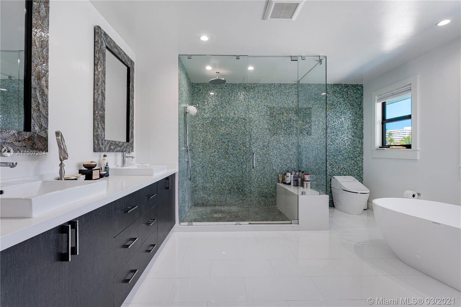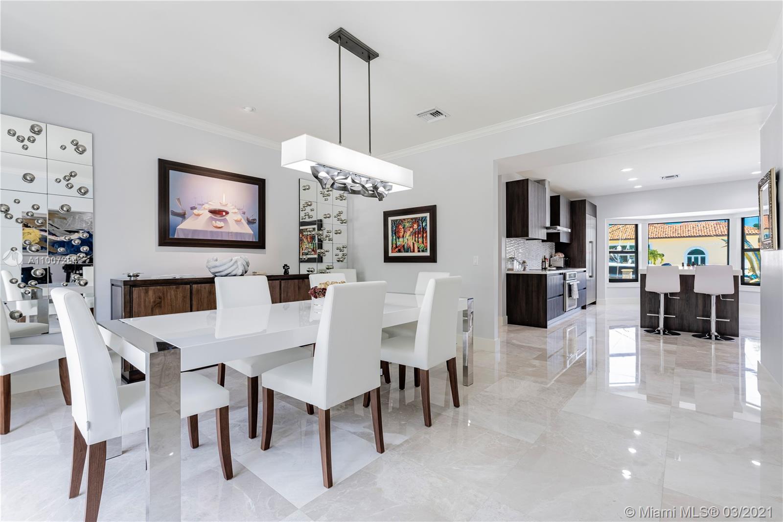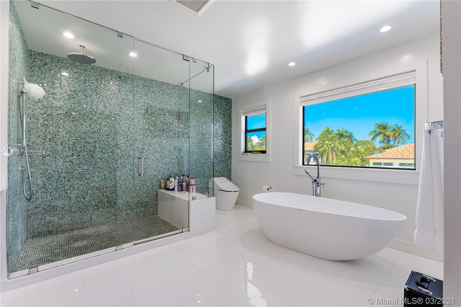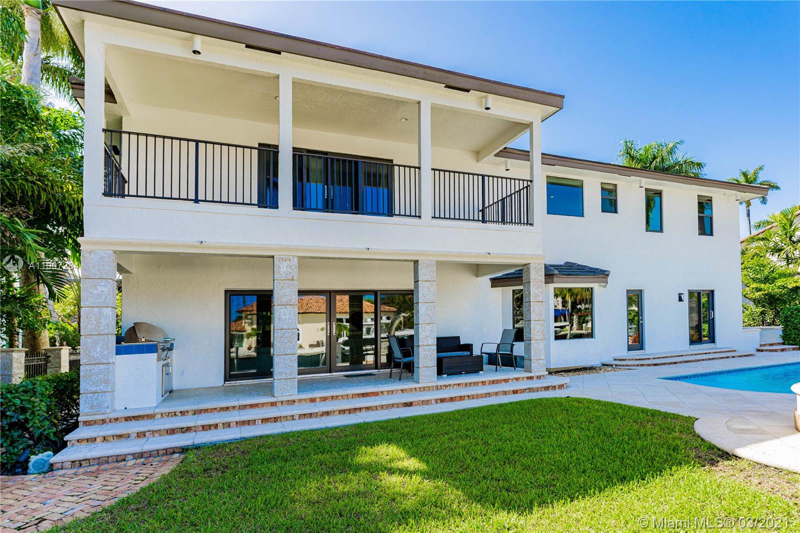 Gorgeous waterfront property with 100 ft private dock and boat lift. Close to intracoastal water, and ocean access. This 5-bedroom home has a full bathroom in every room, and 1 half bath downstairs. Master suite is upstairs with exquisite bathroom with large walk in shower and deep bathtub, both overlooks the water. Master suite also features private patio overlooking the water. Kitchen completely remodeled with new cabinets, deep sink, kitchen island, and quartz countertops. House also features impact windows throughout property. Backyard features a heated pool, covered patio with outdoor BBQ, and faces the east. 3 car garage with ample parking in front driveway. Private walkway to entrance to the front of the home.