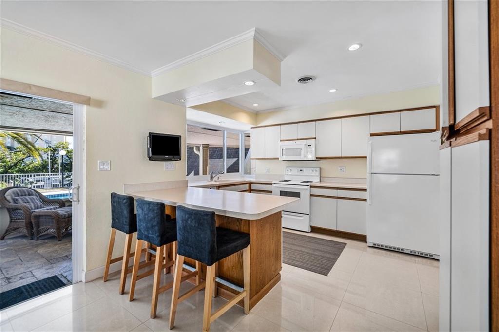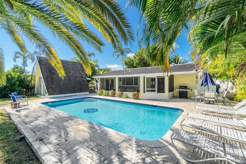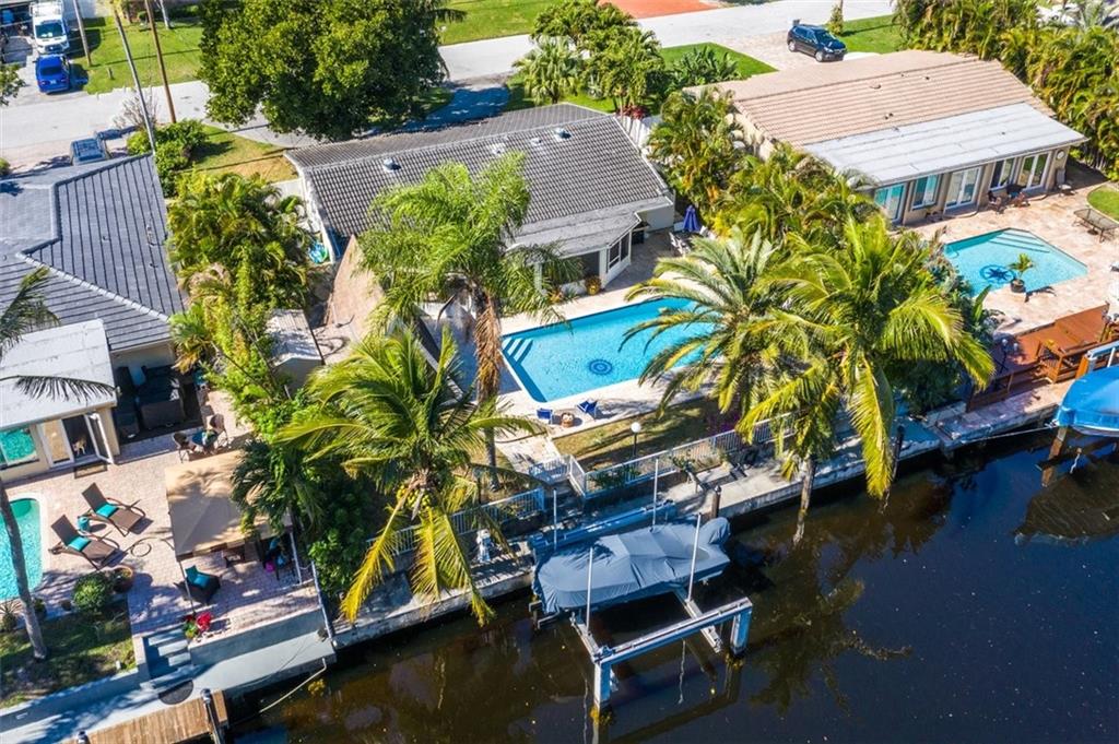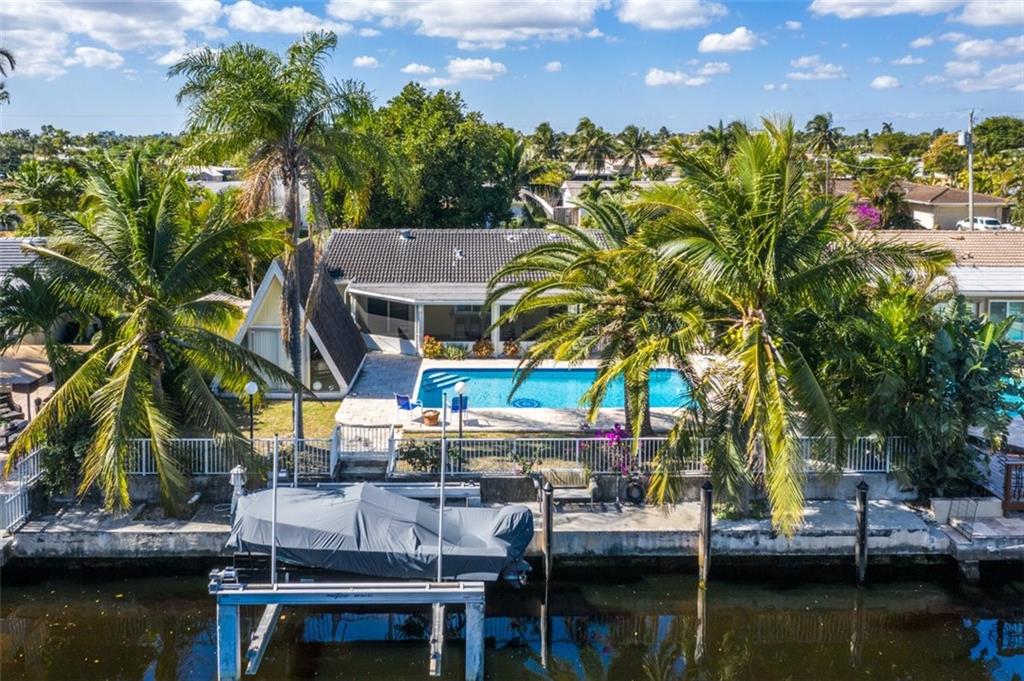 Wonderful opportunity to own this 3 bedroom/2 bathroom waterfront home in booming Pompano Beach or keep as the vacation rental property that it is! 70' of ocean access waterfront with one fixed bridge (Federal Highway 13-15' clearance) with the boat lift, concrete pilings and new seawall cap installed 2016. Entire home has impact windows and doors, 2019 tankless gas hot water heater, 2007 A/C, new porcelain tile throughout the house and both bathroom fully renovated! Enjoy your fully fenced spacious backyard with an oversized heated pool and tons of privacy. Additional building off the backyard that could be renovated to be a guest suite, gym, home office...the possibilities are endless! Current tenants in place until mid march. You will love this well priced home!
