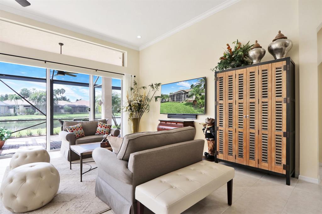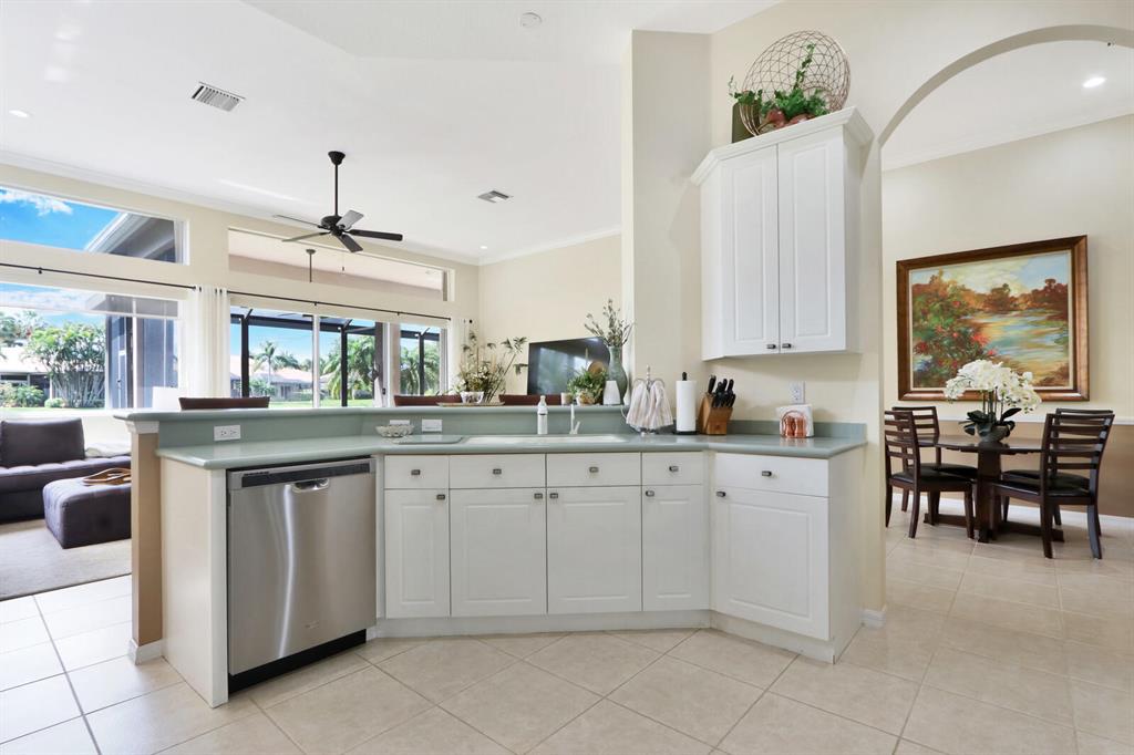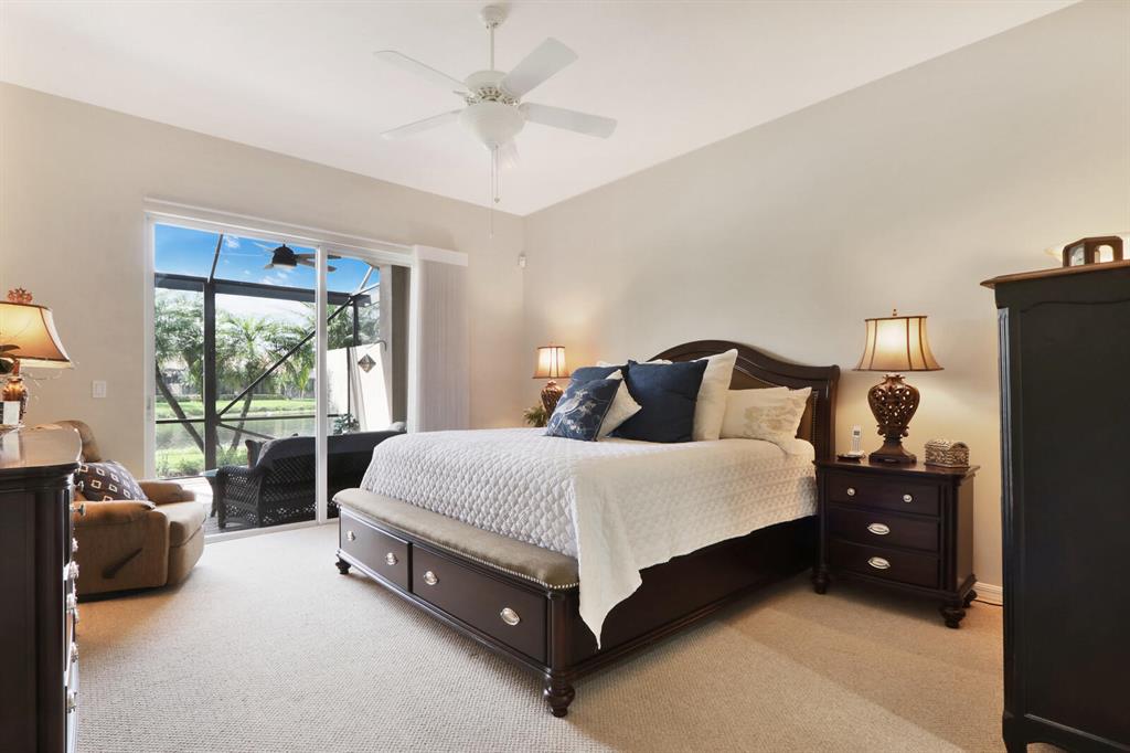 This 3 bedroom 2 bath Briarcliff is one of a kind, and on a beautiful lot overlooking a serene lake in Ibis Golf and Country Club. With stainless appliances in kitchen (2019), newer carpet, (2015) new tiles in Master shower,(2020) new toilets, (2020) new screening (2020) new window shades in Great room (2020), expanded Master closet, recirculating hot water,(2020), new window treatments in 2 bedrooms, (2020), new landscaping 2020, and new gutters (2020), exterior painted in 2018, all closets upgraded for maximum storage, accordian shutters, this home will be a joy to live in. Situated in the community of The Grande, and with a beautiful, recently renovated community pool, the lifestyle is second to none. Furniture negotiable.