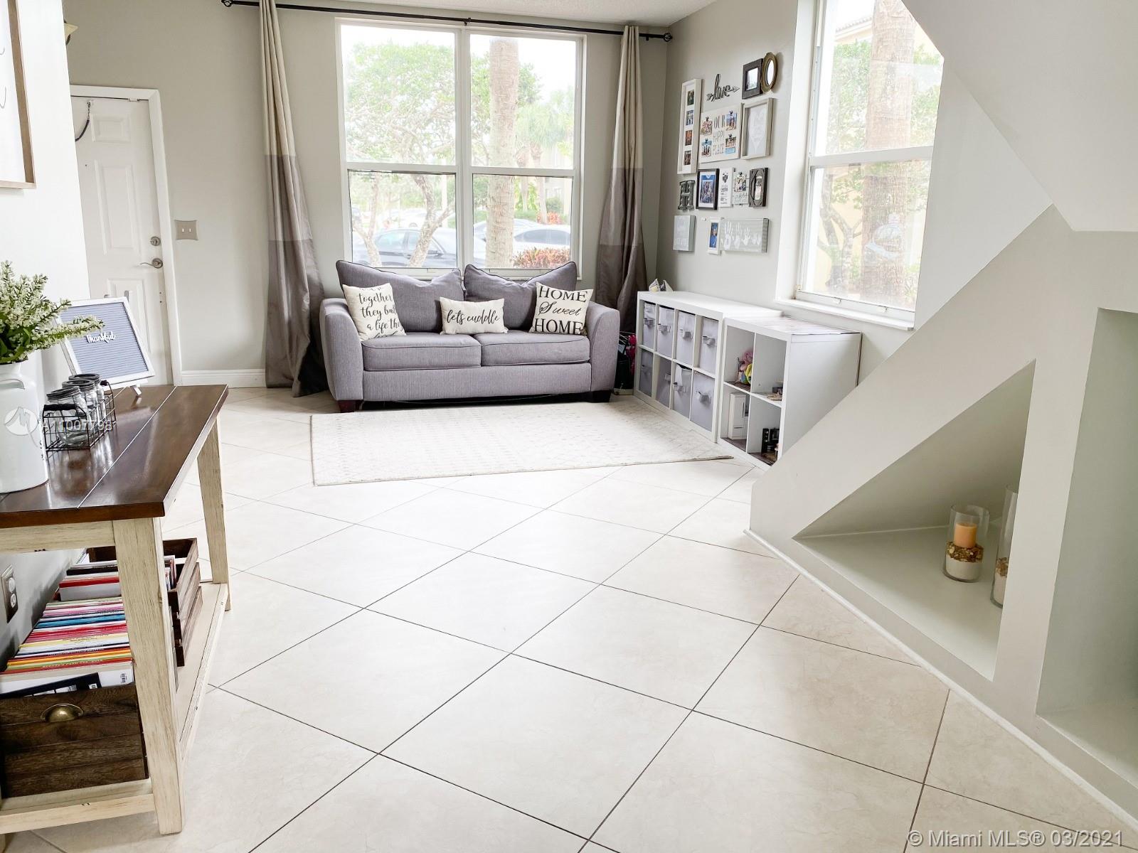 Beautiful townhome in the West Pembroke Pines neighborhood of Park Crossing inside Towngate. This corner lot unit features lots of windows with all the natural light you could want. 24x24 porcelain tile on 1st floor & laminate is on stairs and 2nd level. The kitchen has been upgraded to all white shaker cabinets with granite countertops. All stainless steel appliances. The backyard has all artificial grass meaning no maintenance and no muddy footprints in and out of the house. You also have access to the private, gated common area as you walk out of your back gate. Home comes with a one car garage and a driveway that safely fits 5-6 cars. HOA covers all roof maintenance and repair as well as yearly pressure cleaning. Fantastic neighborhood, filled with kids and a great place to call home!