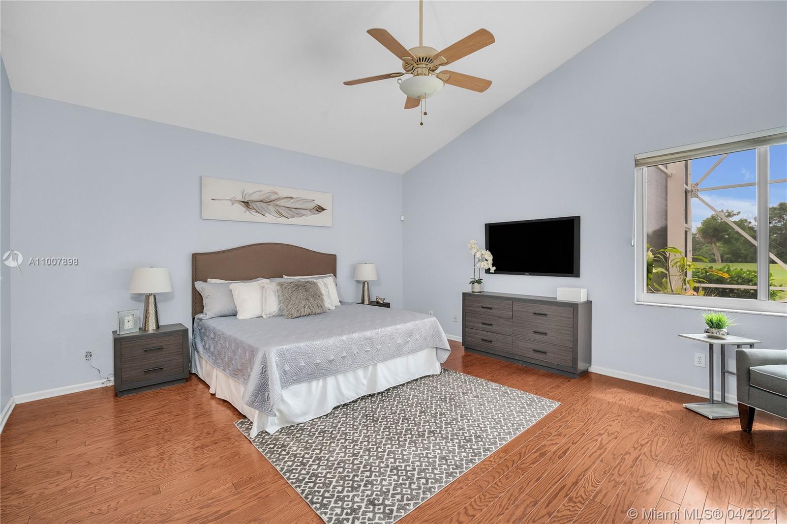 Superb tropical paradise - pool home on spectacular golf front lot in Grand Palms Resort Community. 4 BR plus loft, 3.5 baths with screened covered patio and heated pool overlooking golf course, lake and woods. Remodeled kitchen and matching wet bar with granite, wood cabinetry and stainless steel appliances. Newer roof, impact windows, newer dual zone A/Cs. Manned gated community with HOA fees including monitored alarm security, cable and internet, landscape maintenance and sprinklers, home painting and pressure washing, more. Great location close to shopping and dining, top quality Broward County schools and to I-75 for easy travel in every direction. Walk to remodeled golf course, restaurant and fitness center that are separate very reasonable fee amenities.