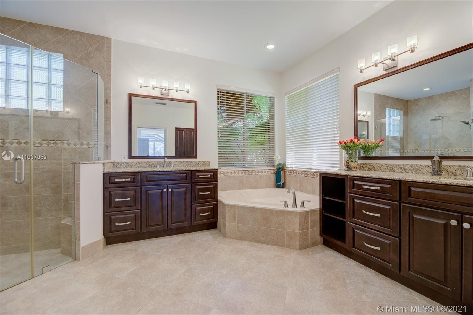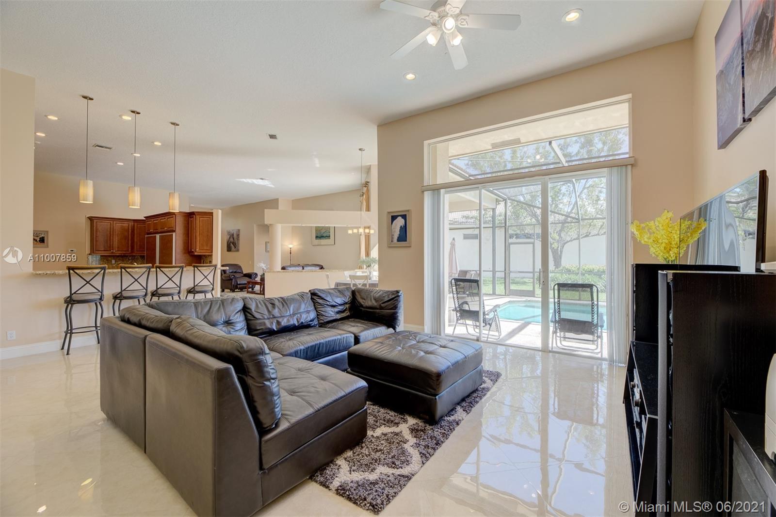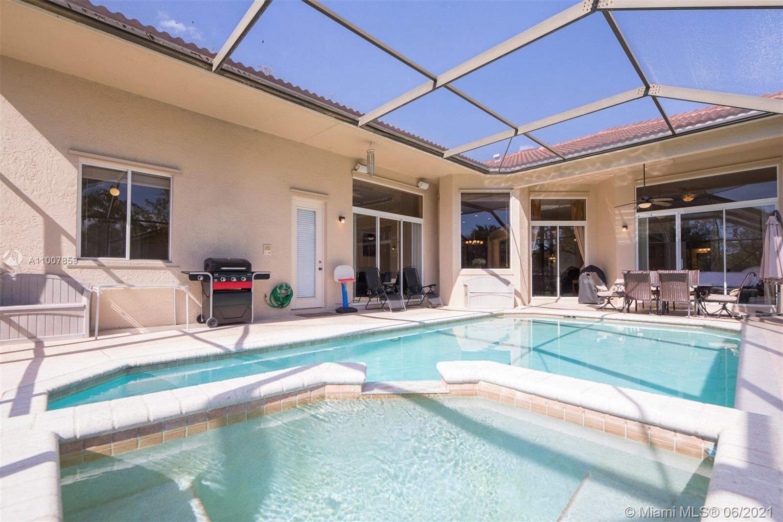 Fall in love with the breathtaking lake views the moment you enter this immaculate designer 5 bed plus office pool home in the desirable community of The Islands. Shows like a model, substantially renovated with gourmet kitchen featuring top of the line Jenn Air Appliances, Sub Zero refrigerator & gorgeous granite counter tops. Triple split floor-plan Master with duel walk-in closets & gorgeous updated master bath. 2 bedrooms share a Jack & Jill bathroom plus a Junior Suite with it's own bathroom perfect for in-laws or guests. Cabana bath provides access to your over sized screened in patio & sparkling pool. Roof 2017, 2-zone AC, New water heater, magnificent 24" porcelain tile plus wood floors in bedrooms, hurricane shutters, A-Rated Weston Schools! Absolutely gorgeous and move-in ready!