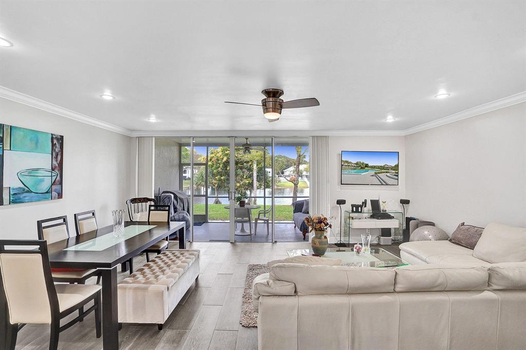 Stunning lakefront Townhouse in central Boca Raton. This renovated, open and bright lakefront Townhome in Boca Park has a half bath downstairs and 3/2 upstairs. Kitchen tastefully renovated with granite counters and granite Island. SS French Door refrigerator. Crown molding throughout and painted. All bathrooms renovated. Recess lighting - (no popcorn ceilings up or down), wood looking tile throughout downstairs. Upstairs flooring is wood looking plank vinyl (waterproof). Tile in upstairs laundry matches downstairs tile. Master has two walk-in closets. Newer Accordion Shutters throughout with exception of slider that has panels. Beautiful lake view from spacious covered screened patio. Located steps from tennis courts and short walk to community pool & cabana.