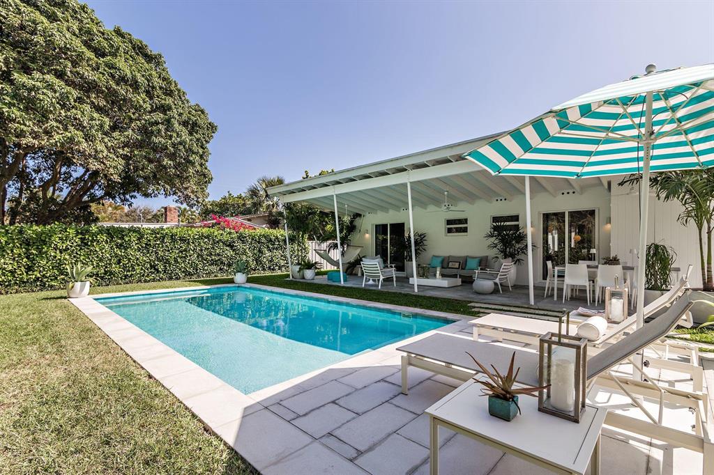 Classic 1950's Mid-Century Modern renovated 3-bedroom, 2 bath South of Southern house offers an updated kitchen and bathrooms, a newer roof and terrazzo floors, impact windows and doors. Exterior features include a circular driveway, carport, a large fenced backyard, covered porch, lush landscaping and pool. Convenient to Palm Beach, downtown attractions and minutes to great local restaurants, the airport, museums and the beach.