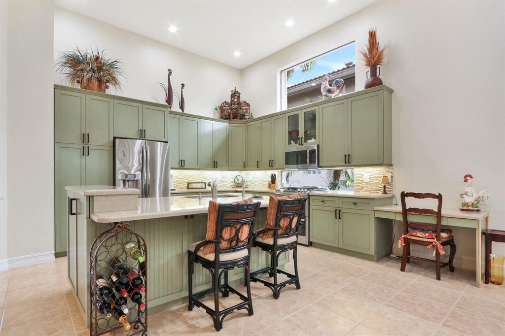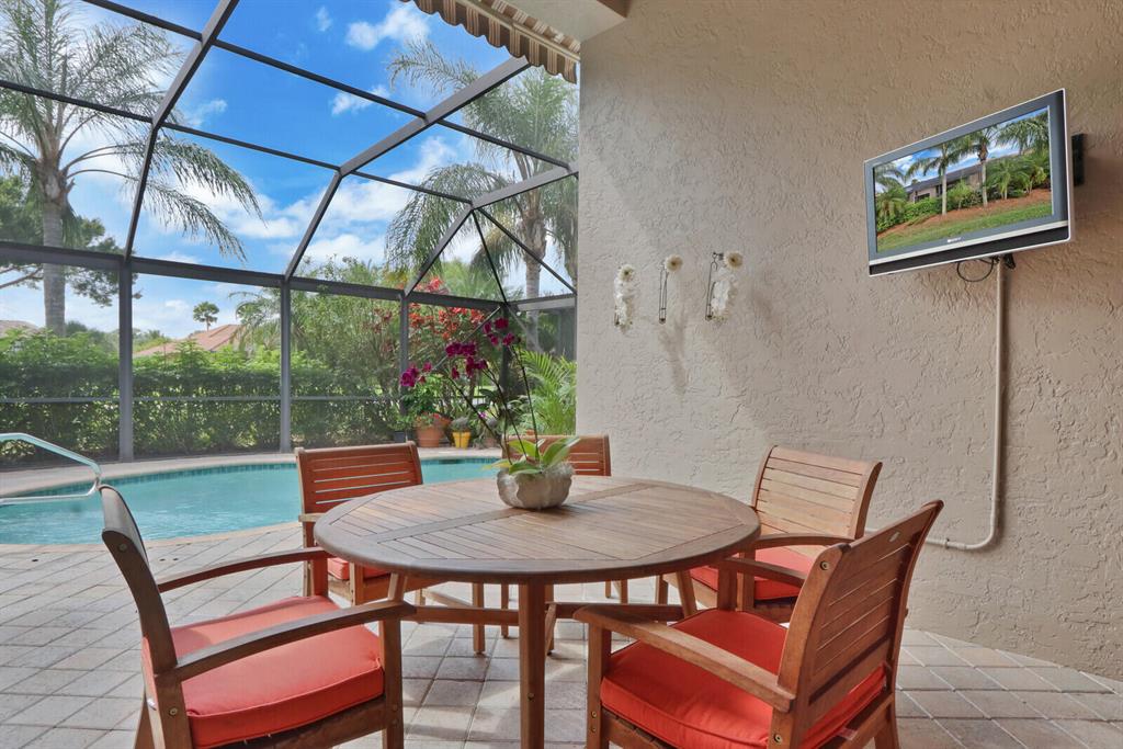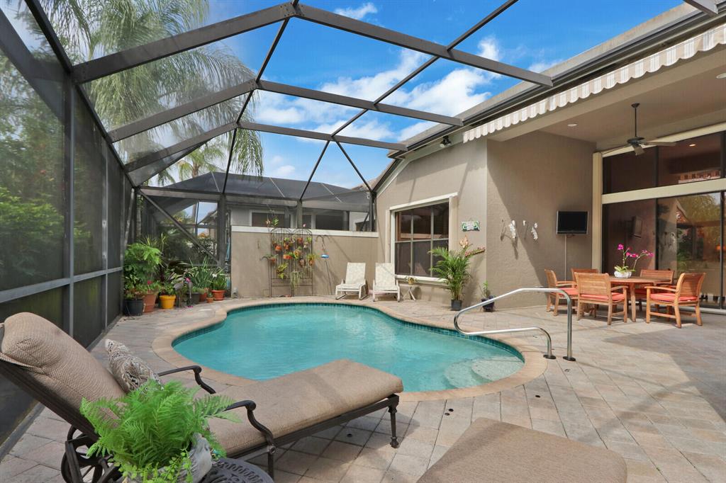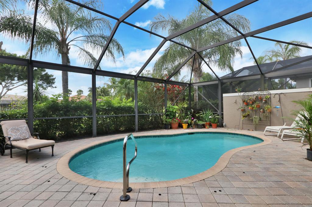 Enjoy this rarely offered Juliana floor plan that has been customized and highly upgraded. With 3BR/2.5BA+Den, this Sabatello-built home features high ceilings, an open feel and many wonderful improvements. The remodeled kitchen features new cabinetry, Quartz tops, designer back splash, and an upgraded stainless appliance package. The remodeled master bathroom looks like it's out of a design magazine. The screened pool and patio is perfect for enjoying Sunset views of the Tradition course, while the front of the home boasts magnificent easterly lake views. Accordian shutters, side entry 2.5 garage, are other features of this fabulous Blue Heron home.