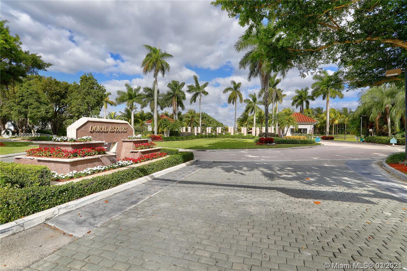 Luxurious remodeled home in the prestigious Doral Estate Villas with private access to the Doral Golf & Spa Resort. This spectacular one-story smart home features 3 bedrooms, 2.5 bathrooms, open floor plan with 16ft high ceilings, gourmet kitchen with quartz countertop, stainless steel appliances and a built-in wine cooler, a spacious covered patio great for entertaining and relaxing and a 2-car garage with a large driveway. Community features 24-hour guard security, community pool and golf course access. Ride your golf cart directly from your home to the golf course and spa!