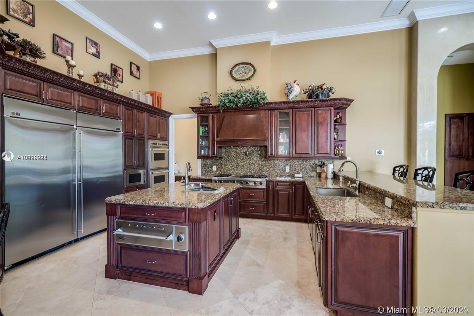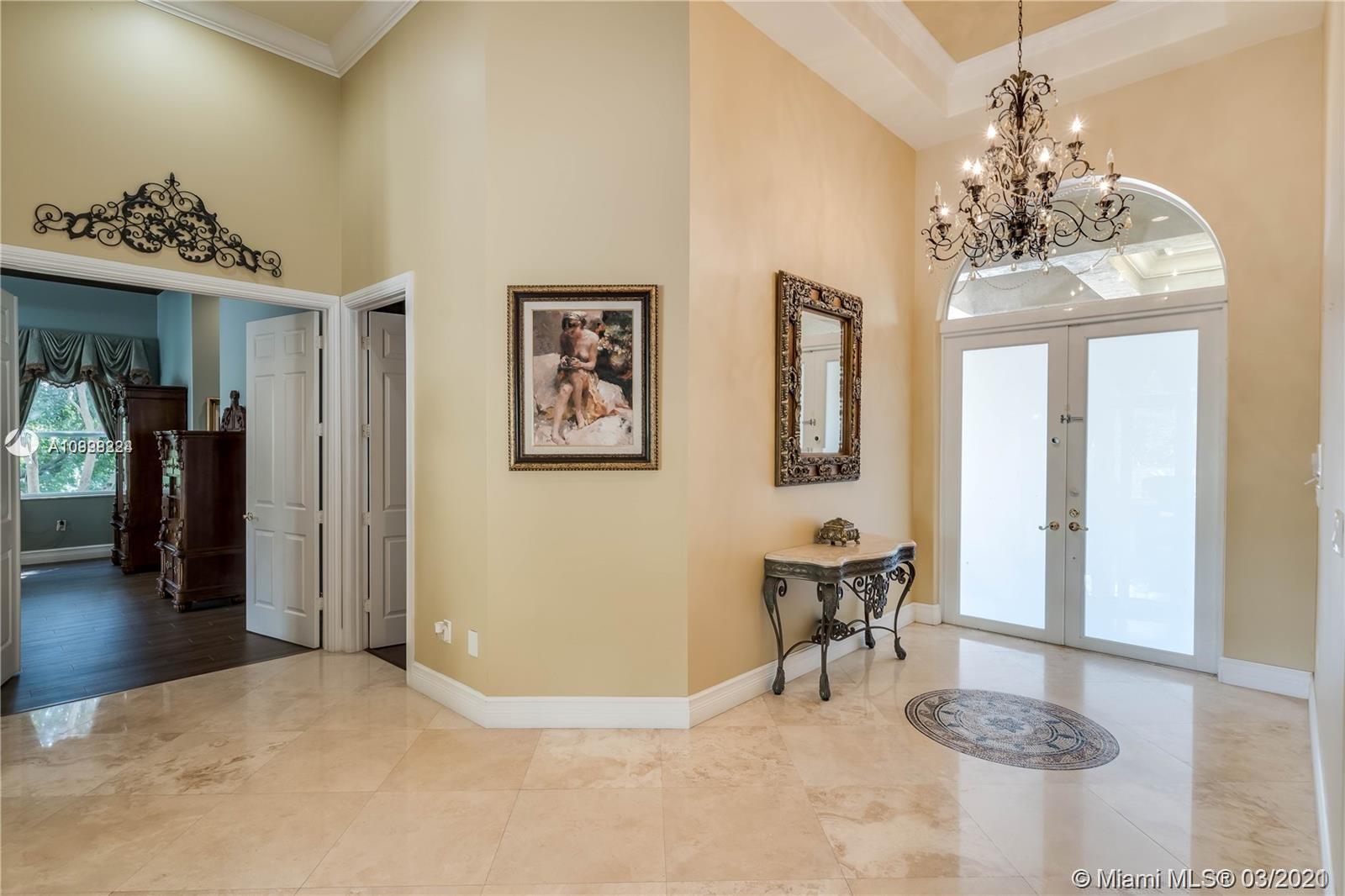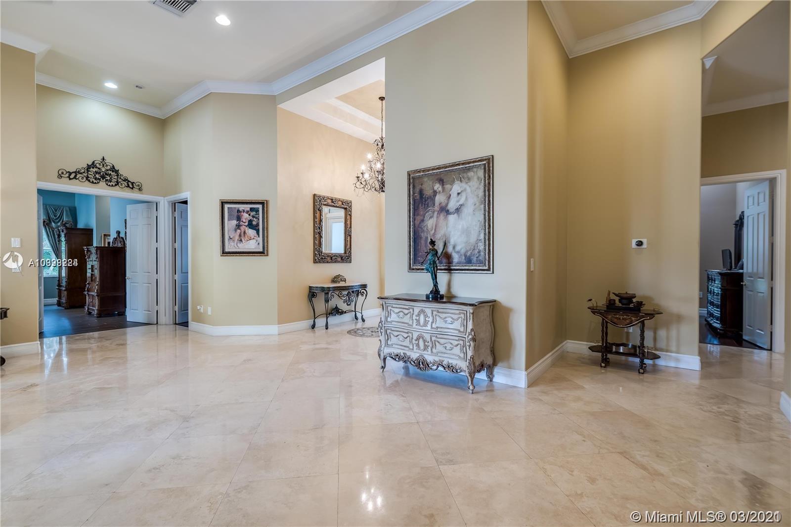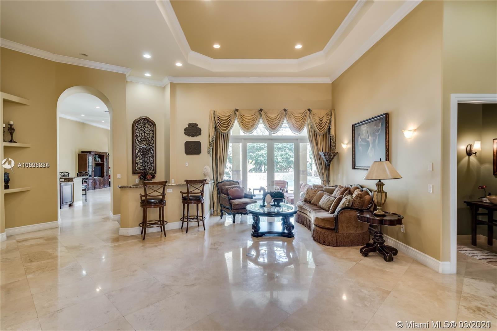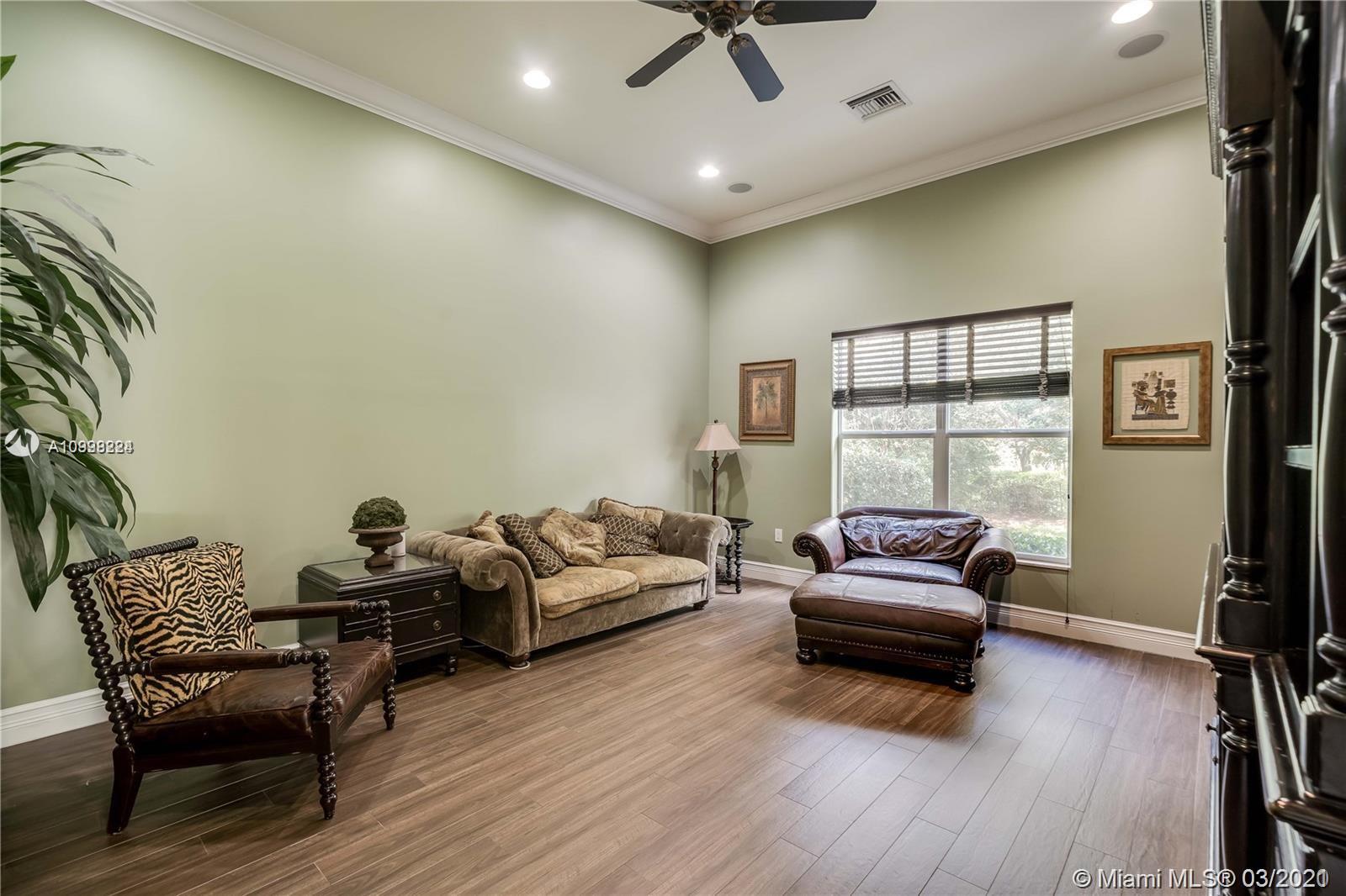 Enjoy class and elegance in this custom built triple split 6/5.5 + an office in the exclusive gated community of Paradise Pines. Soaring Ceilings and exquisite marble floors in all living areas, and wood in all bedrooms. Expansive master suite w/sitting area, two walk-in closets, and grand master bath w/roman spa shower. Gourmet kitchen featuring Viking gas stove, double over overlooking the sprawling family room. Tuscan pool w/cascading waterfalls, marble gazebo, summer kitchen, and spa. Impact windows, Porte-Cochere, and the list goes on.
