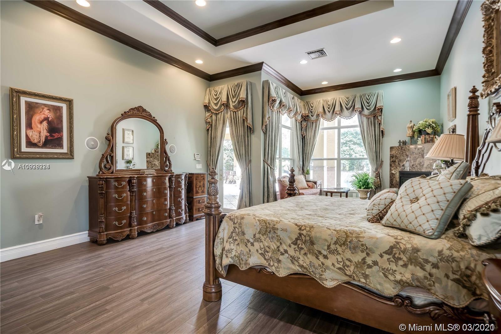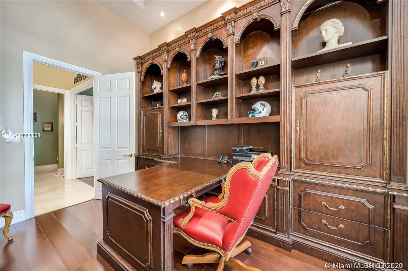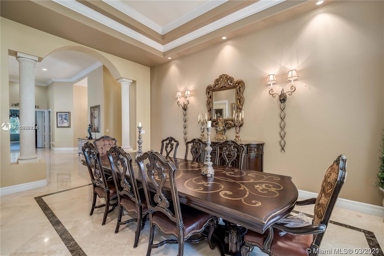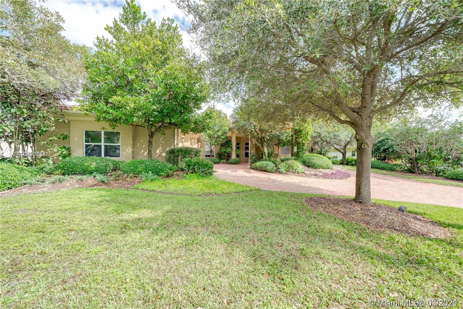 Enjoy class and elegance in this custom built triple split 6/5.5 + an office in the exclusive gated community of Paradise Pines. Soaring Ceilings and exquisite marble floors in all living areas, and wood in all bedrooms. Expansive master suite w/sitting area, two walk-in closets, and grand master bath w/roman spa shower. Gourmet kitchen featuring Viking gas stove, double over overlooking the sprawling family room. Tuscan pool w/cascading waterfalls, marble gazebo, summer kitchen, and spa. Impact windows, Porte-Cochere, and the list goes on.
