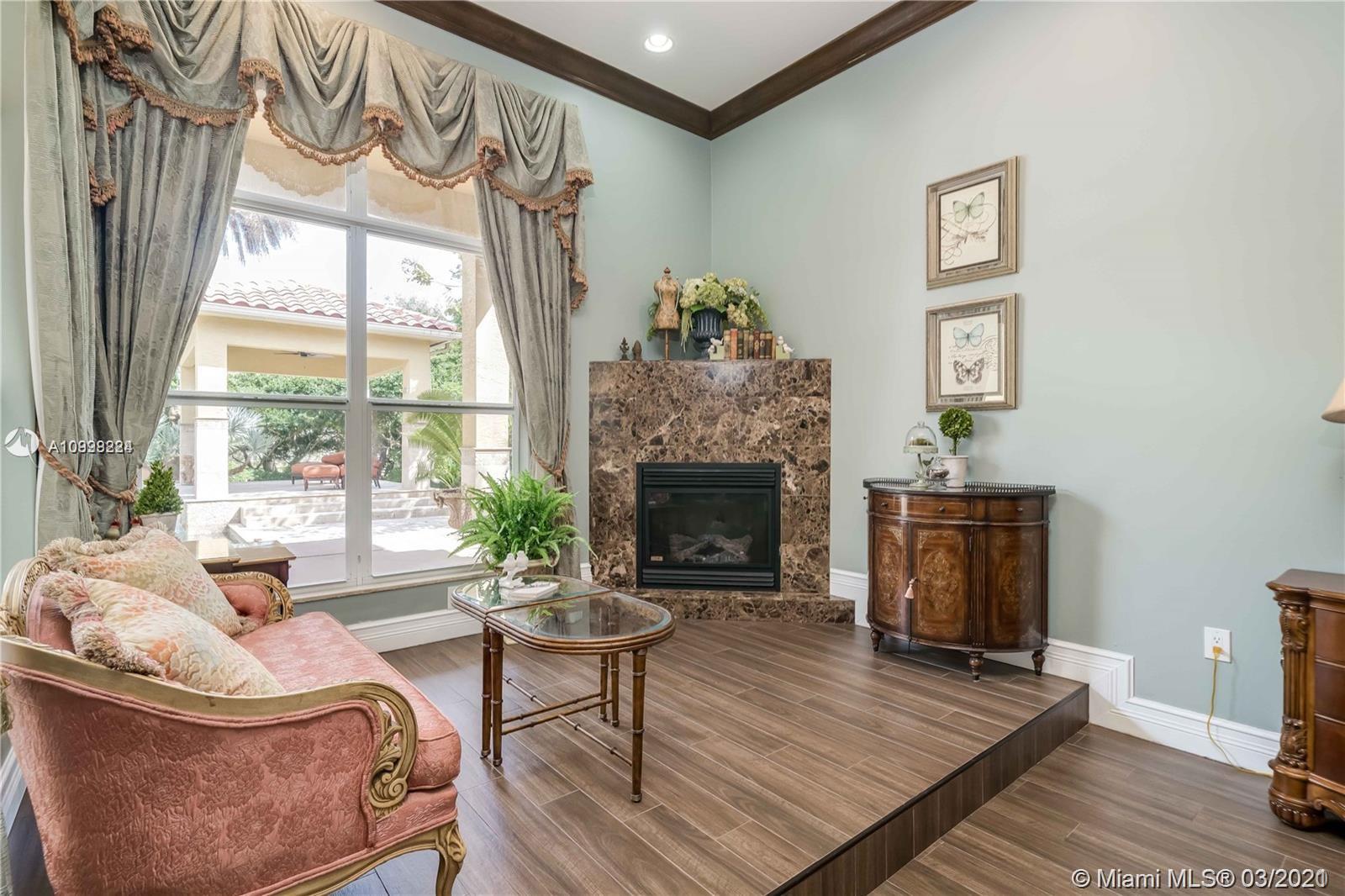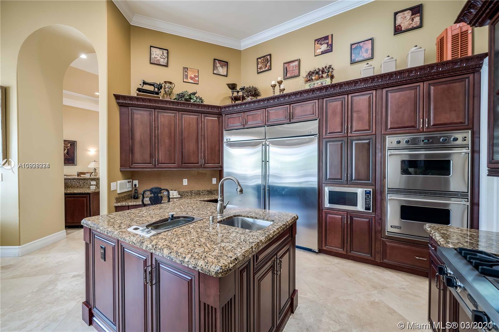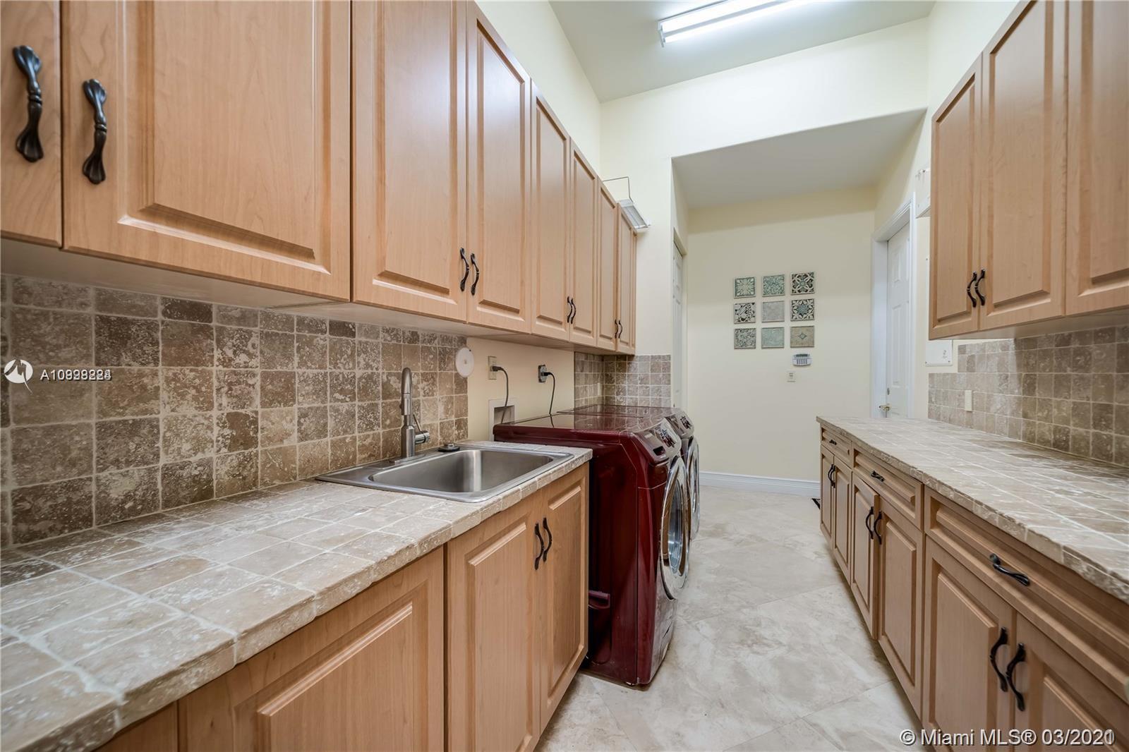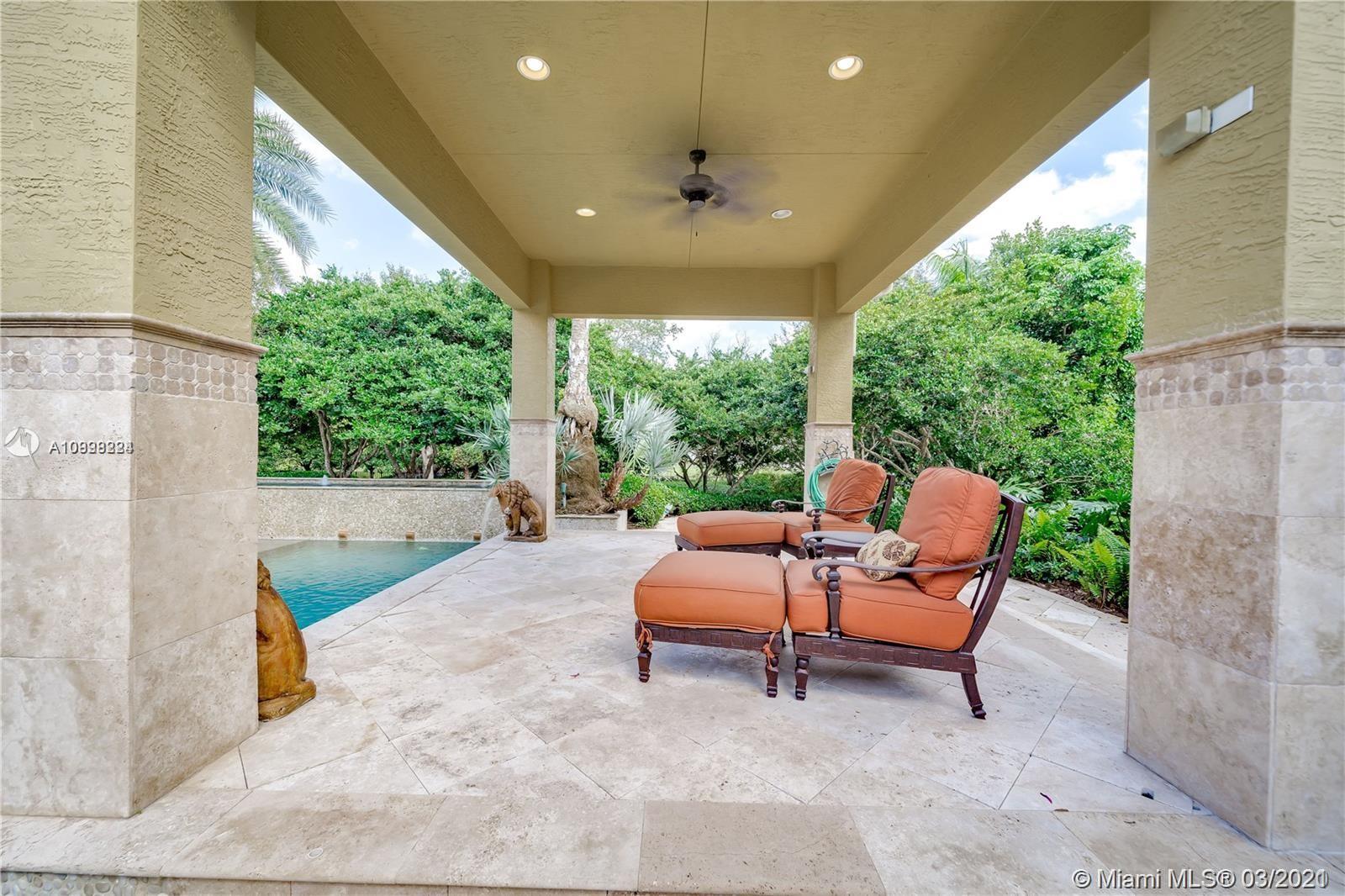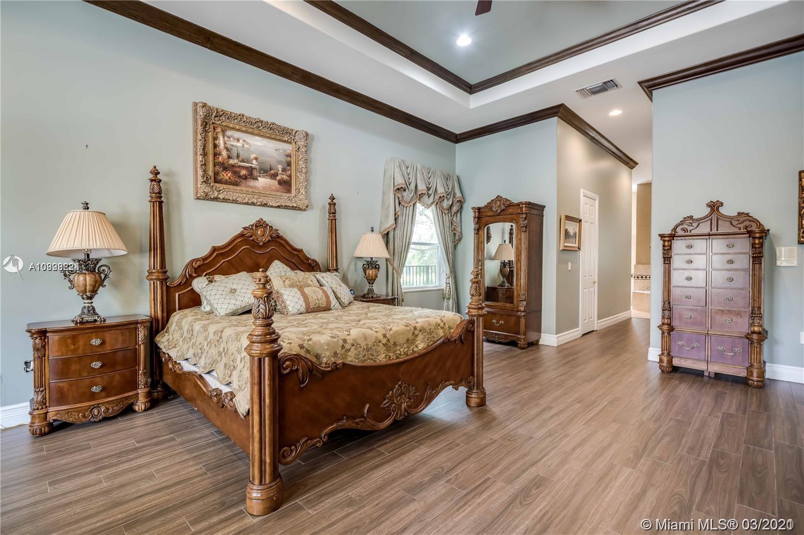 Enjoy class and elegance in this custom built triple split 6/5.5 + an office in the exclusive gated community of Paradise Pines. Soaring Ceilings and exquisite marble floors in all living areas, and wood in all bedrooms. Expansive master suite w/sitting area, two walk-in closets, and grand master bath w/roman spa shower. Gourmet kitchen featuring Viking gas stove, double over overlooking the sprawling family room. Tuscan pool w/cascading waterfalls, marble gazebo, summer kitchen, and spa. Impact windows, Porte-Cochere, and the list goes on.