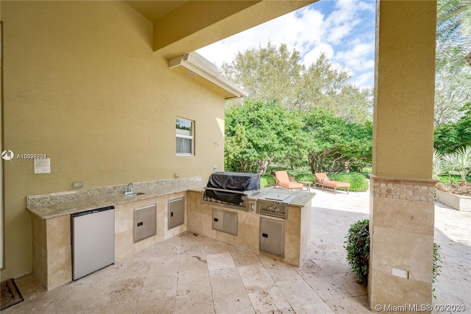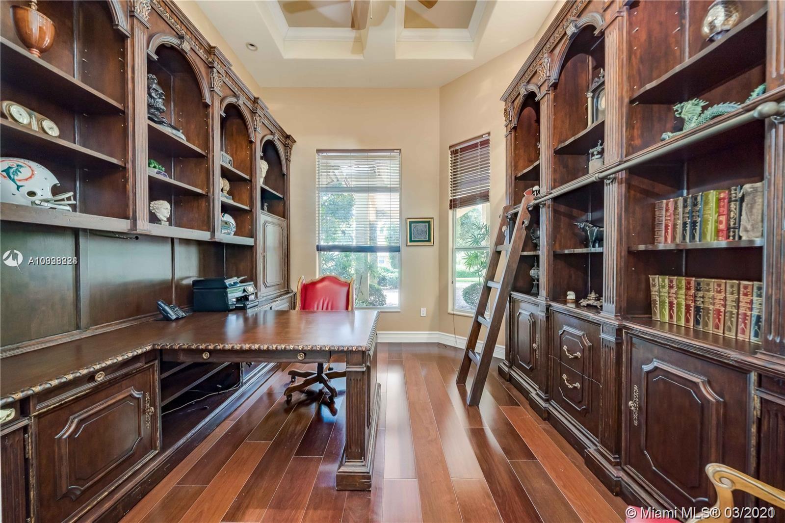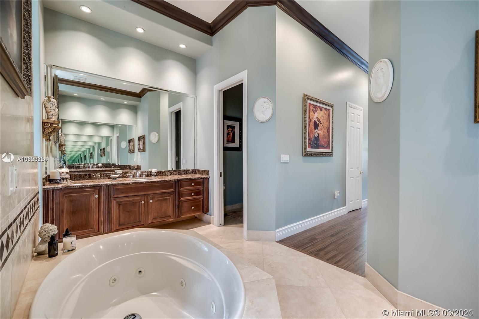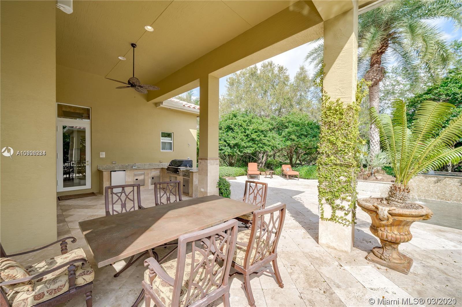 Enjoy class and elegance in this custom built triple split 6/5.5 + an office in the exclusive gated community of Paradise Pines. Soaring Ceilings and exquisite marble floors in all living areas, and wood in all bedrooms. Expansive master suite w/sitting area, two walk-in closets, and grand master bath w/roman spa shower. Gourmet kitchen featuring Viking gas stove, double over overlooking the sprawling family room. Tuscan pool w/cascading waterfalls, marble gazebo, summer kitchen, and spa. Impact windows, Porte-Cochere, and the list goes on.