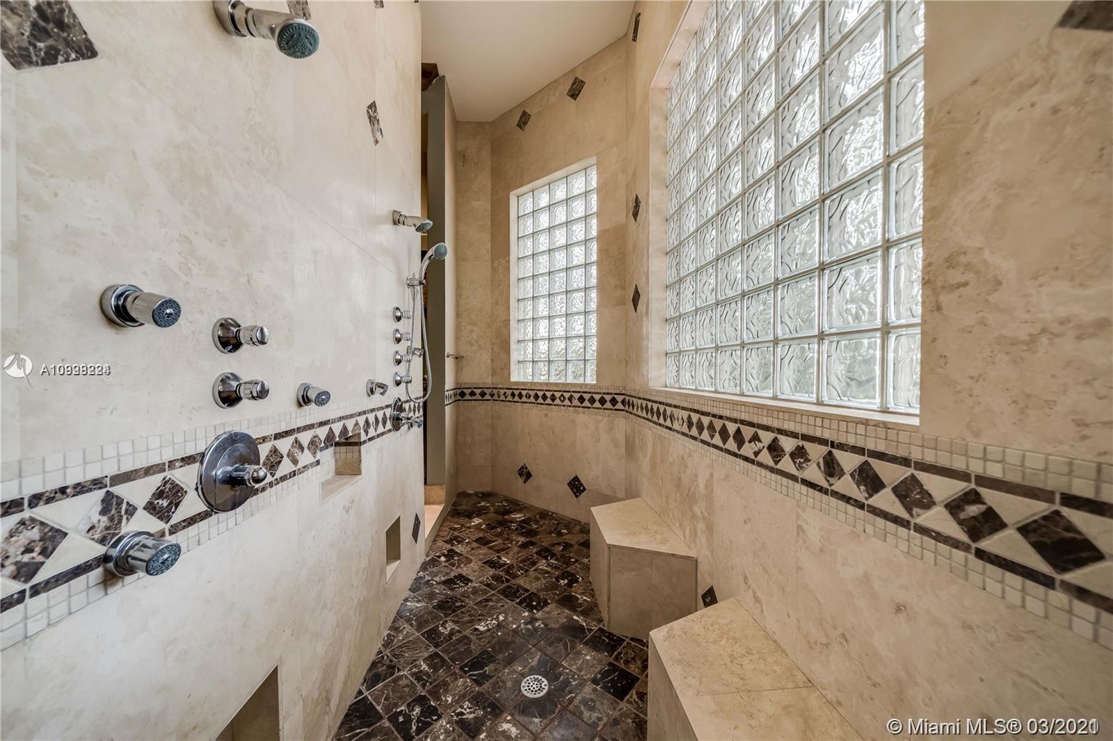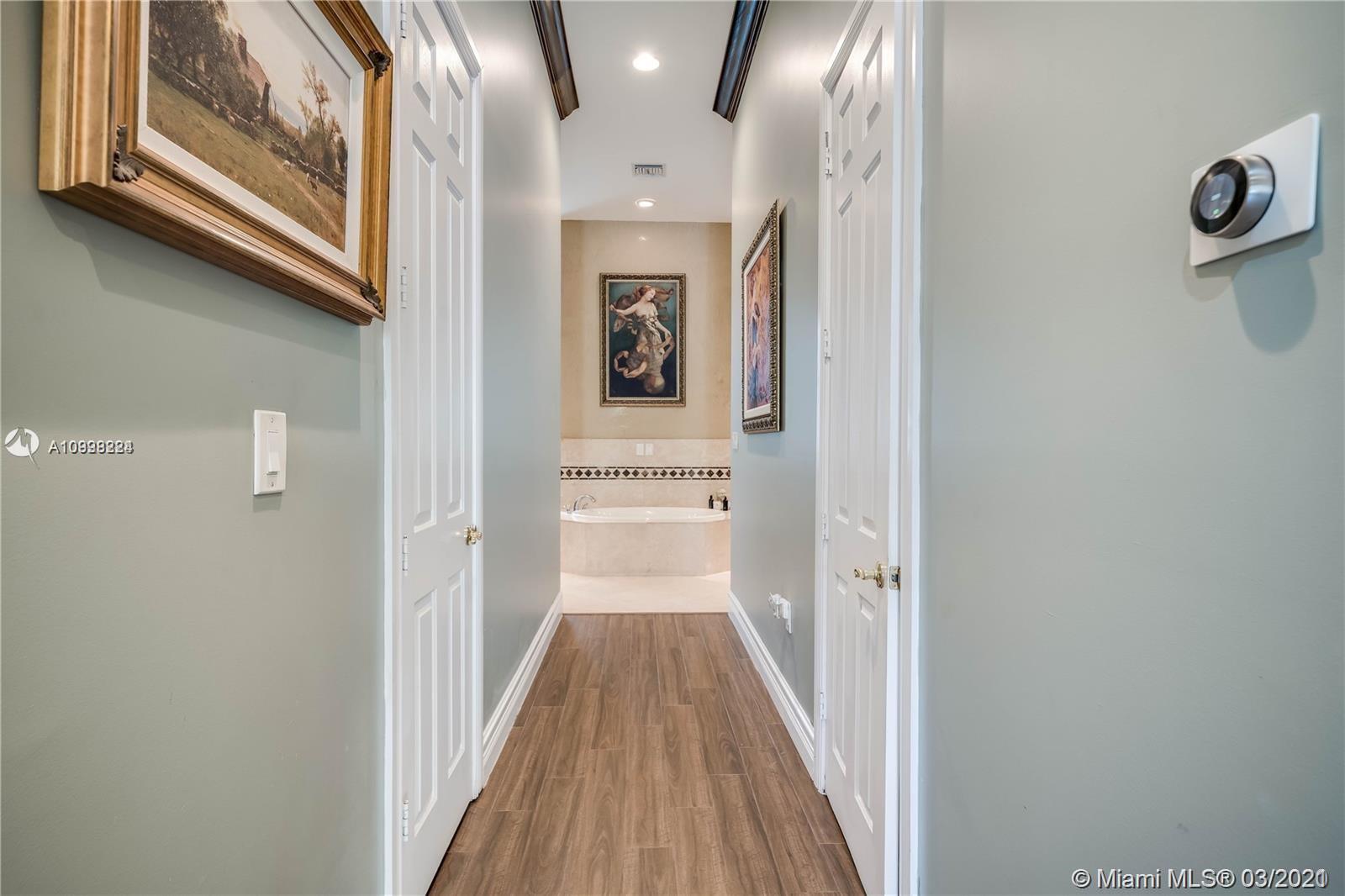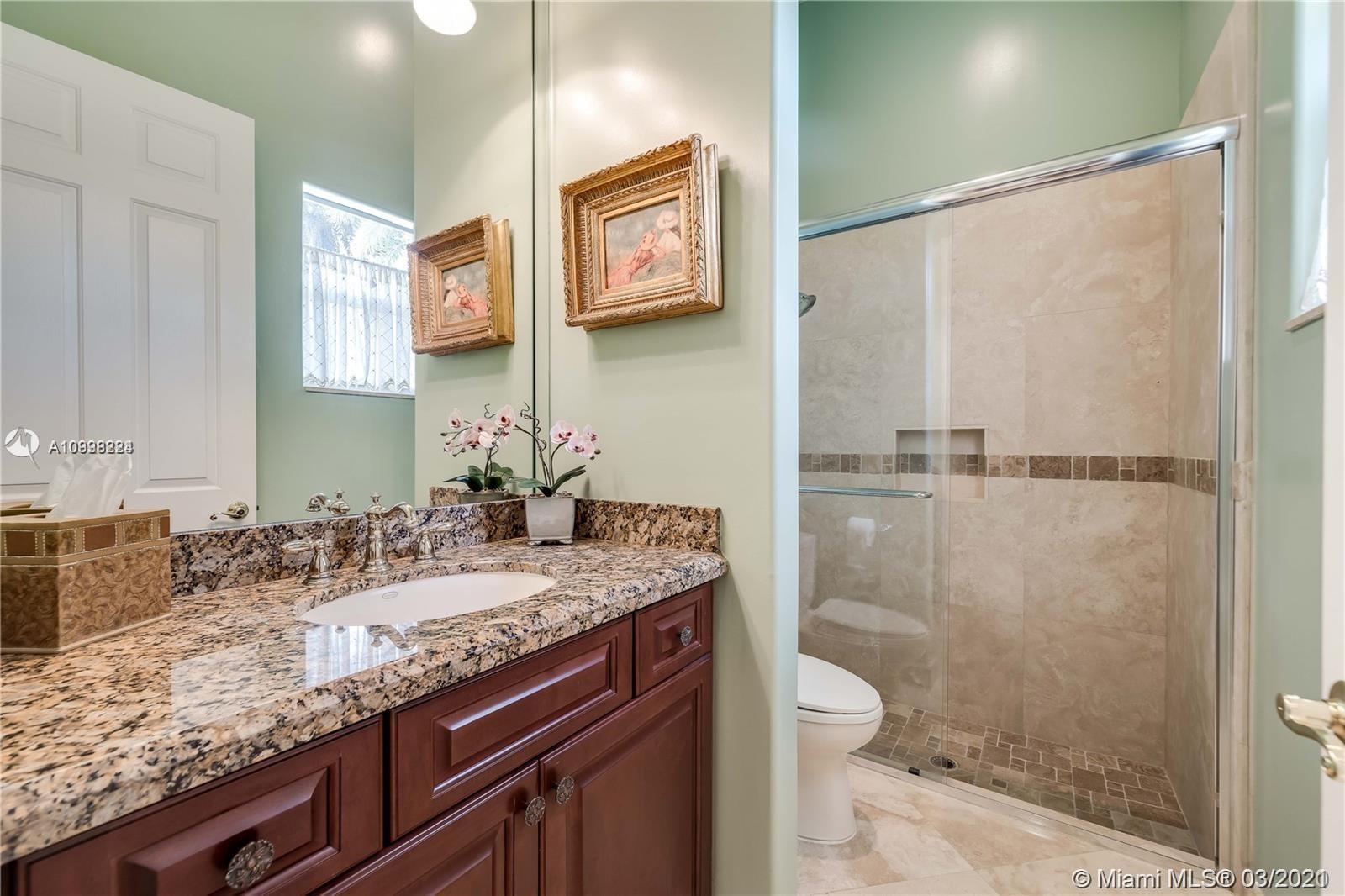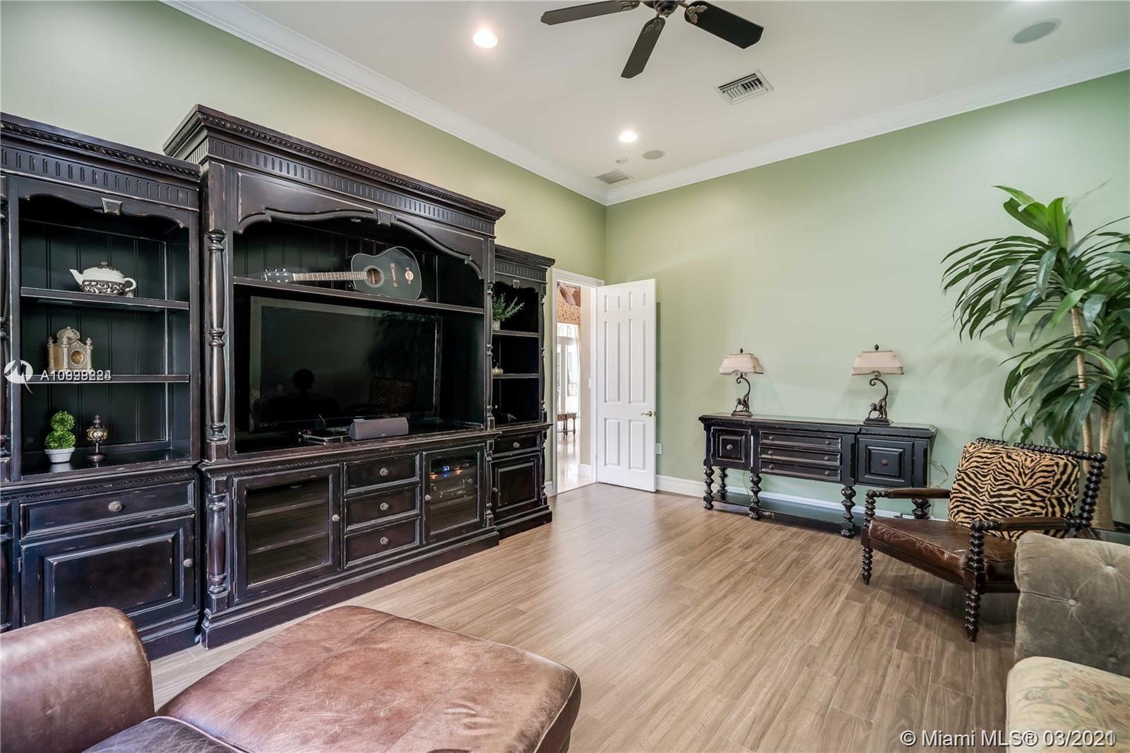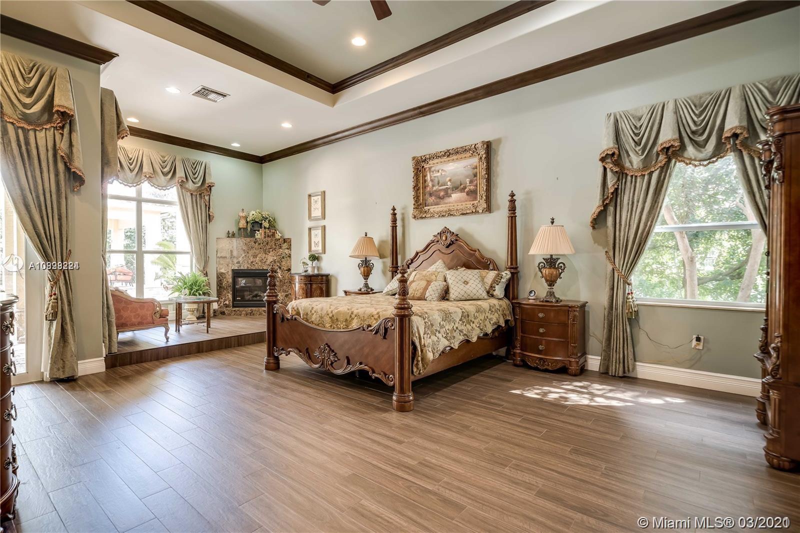 Enjoy class and elegance in this custom built triple split 6/5.5 + an office in the exclusive gated community of Paradise Pines. Soaring Ceilings and exquisite marble floors in all living areas, and wood in all bedrooms. Expansive master suite w/sitting area, two walk-in closets, and grand master bath w/roman spa shower. Gourmet kitchen featuring Viking gas stove, double over overlooking the sprawling family room. Tuscan pool w/cascading waterfalls, marble gazebo, summer kitchen, and spa. Impact windows, Porte-Cochere, and the list goes on.