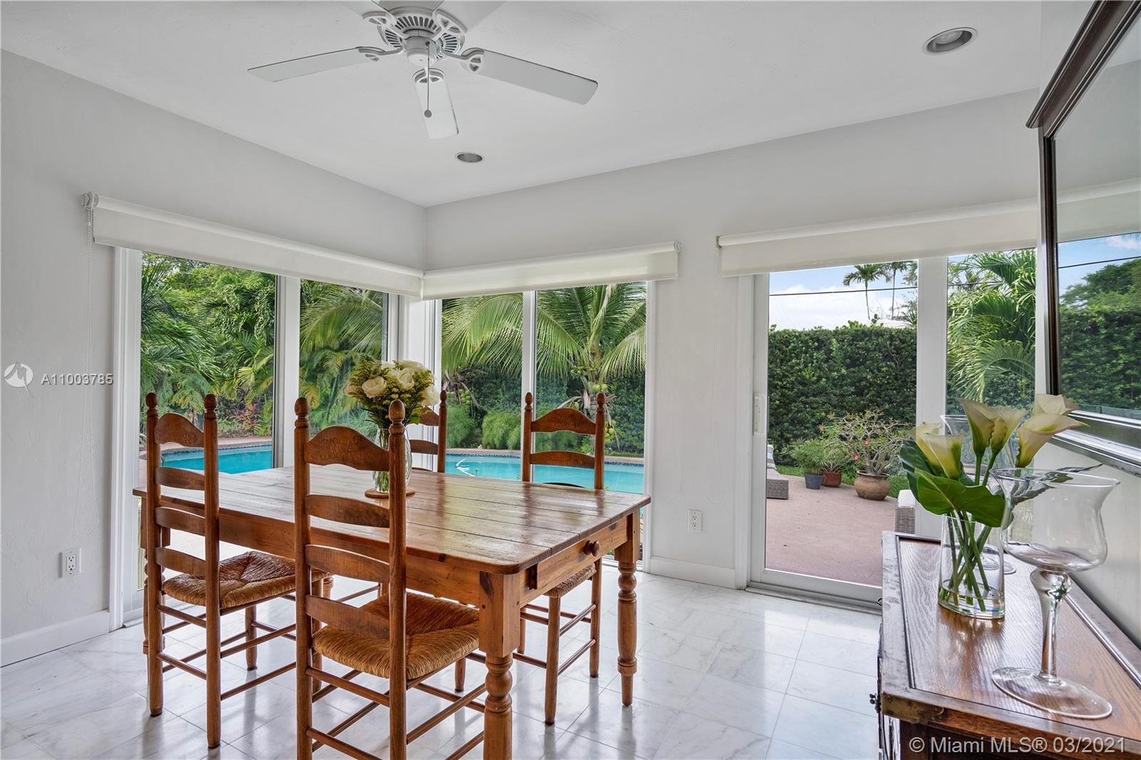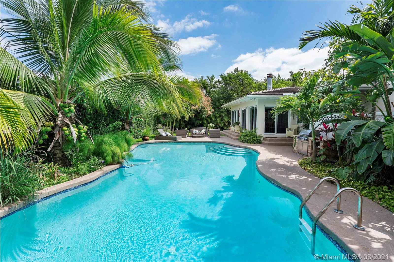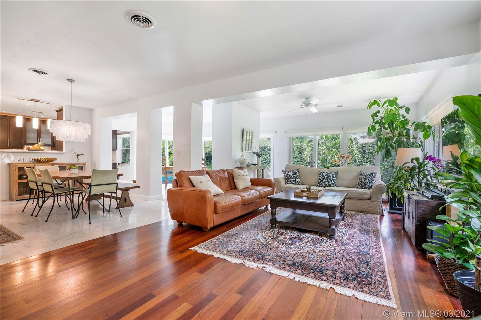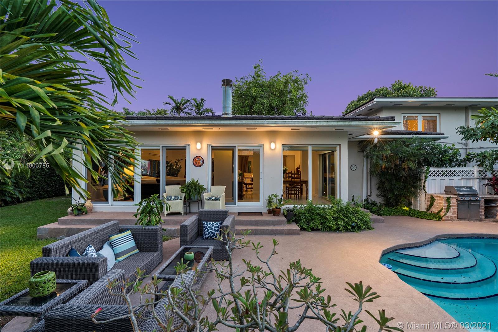 Spectacular home in Miami Shores, one of the most desired neighborhoods in Miami. Nestled on almost a 1/2 an acre property, this 2/story family home is steps from Biscayne Bay & east of Biscayne Blvd. This large & elegant home provides 3,500 sqft.A majestic pool & outdoor paradise. The kitchen is equipped with high end appliances such as Viking, ideal for any chef. It overlooks the Florida room surrounded by natural light complete with French doors that open to the outside. The pool area is ideal for entertaining or lazy Sundays, complete with an outdoor kitchen & scented air filled with citrus smells from its’ mango and lychee trees. This expansive home also has a fifth bed, that serves today as nanny quarters, & an additional large office, perfect for those that are working from home.