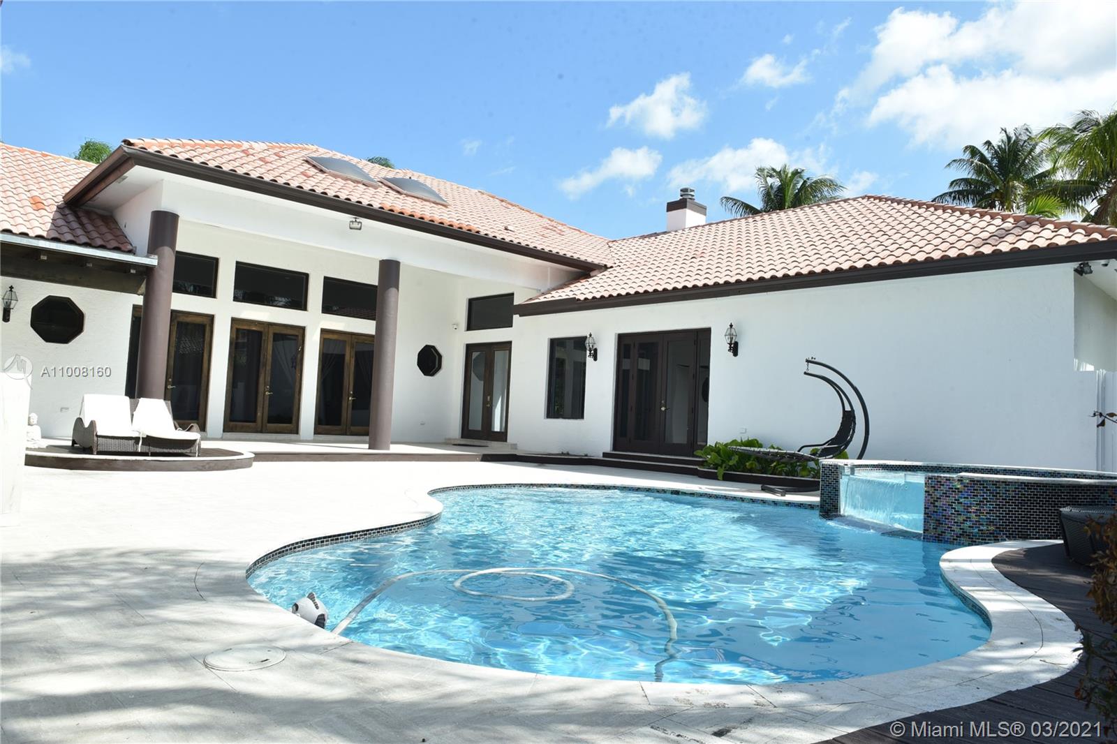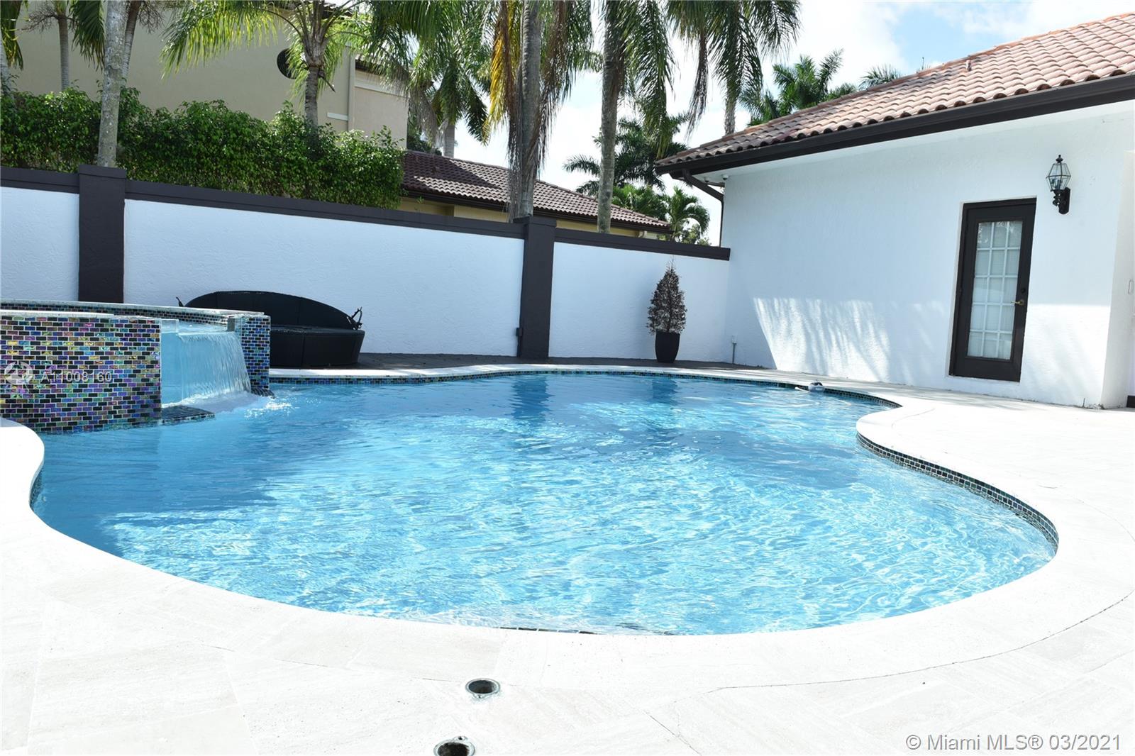Gorgeous Estate Home in the Enclave Circle, the most prestigious section of Grand Palms Gulf & Country Club. This home sits on a water front lot. Indoor patio with pool, bar and covered area for outdoor enjoyment. The split floor plan offers 5 bed, 4 & 1/2 bath. Master suite with vaulted ceiling, open view to the lake, his her w/in closet, master bath with separate tub-shower & his-her vanity. Formal dinning, wine cellar, very spacious kitchen, cook island & separate breakfast sitting area open to large family room with pool views, covered sitting @ outdoor patio area. Great location close to A+ schools, shopping, dining, highway & transportation. HOA includes: basic cable, ADT alarm, man guard main gate & second gate into the Enclave community.