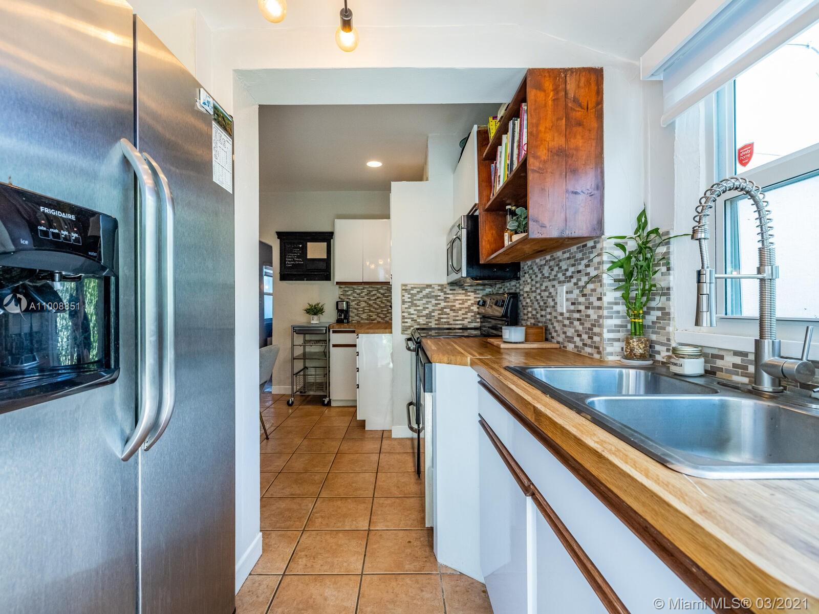 Welcome to Blue Shores Nirvana! It’s all blue skies and good vibes at this adorable 2bed/1bath jewel-box bungalow located just two blocks from downtown Miami Shores. This compact city home is chock-full of charming period details, including vaulted wood beam ceilings, a cozy fireplace, decorative wall niches, pristine original wood floors, and a hip NY-style tiled bathroom. Step out back to a sprawling yard with plenty of room for relaxation, entertaining, and expansion. Additional features: bright eat-in kitchen, impact windows, new roof (2019), newer A/C, newer tankless water heater, updated electric, new gutters, and more! Detached 1-car garage perfect for storage or office/studio. This is your chance to have your own little slice of heaven in the Shores under $500k!