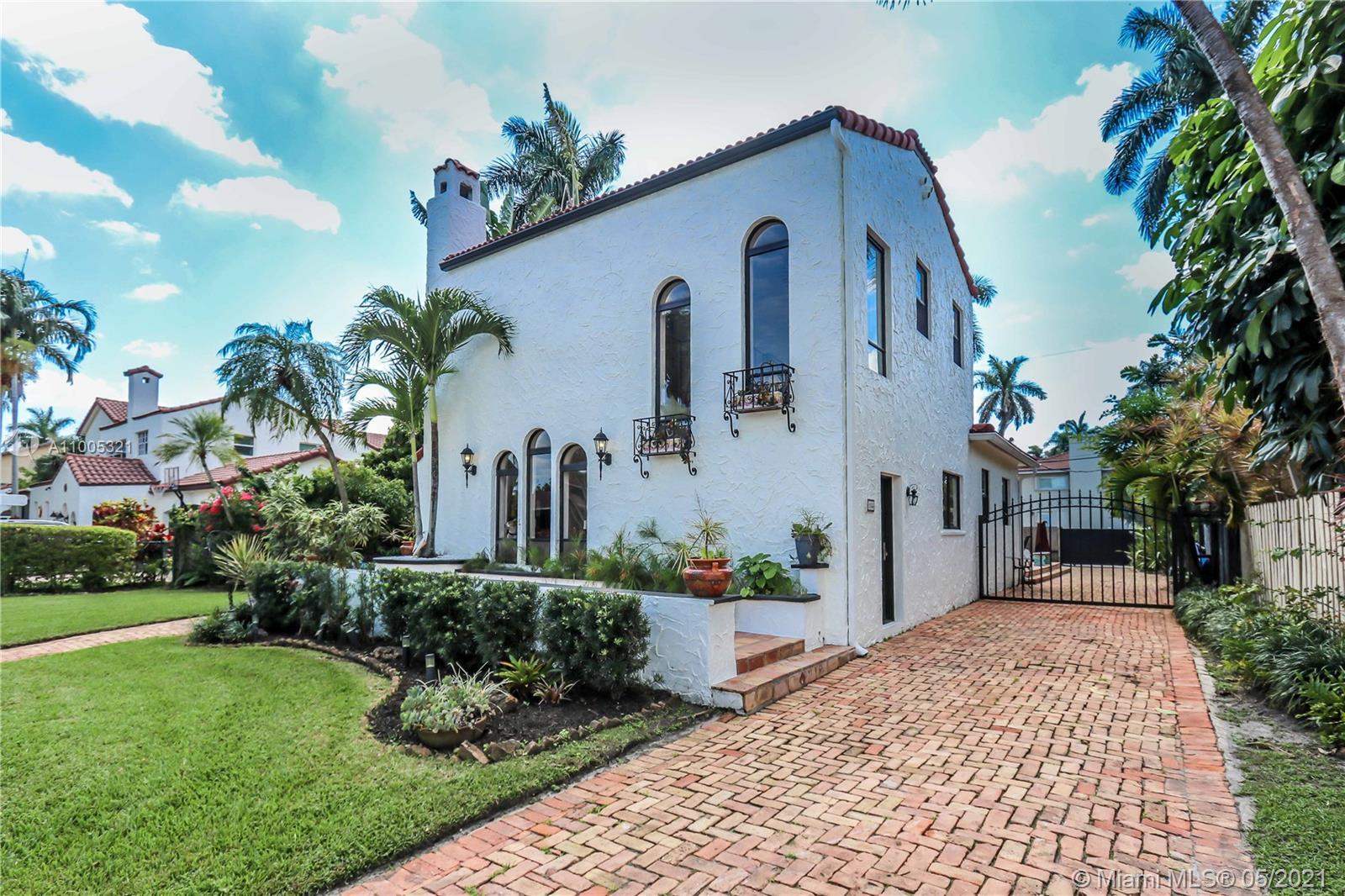 Exquisitely styled, this two level 3 Bedroom, 2.5 Bath home, provides luxurious appointments. Lush landscaping, beautiful Chicago brick driveway. Beyond the entrance, you are immediately welcomed to a bright and warm setting, Mexican Satillo tile, a wood burning fireplace, Spanish tile brick accents & arches throughout provide another level of beauty. Updated kitchen features, ss appls, the countertops, cabinetry & backsplash complement each. Wood & tile floor encompass to the bedrooms. French doors open to an outdoor sanctuary perfect for entertaining with Satillo tile encompassing large pool surface & Chicago brick. Addt’l details: Int/Ext Painted 2020, Hurricane Fabric Panels, AC units recently serviced, 2019 Elect Water Htr, New Waterline from Meter to House.