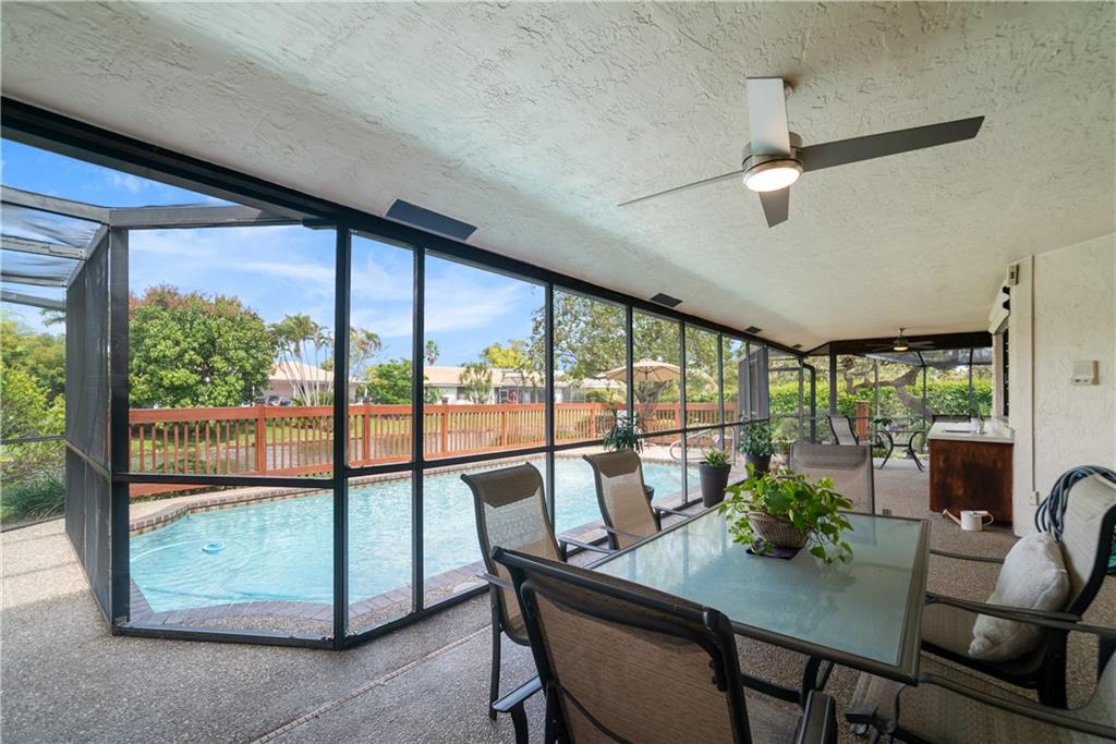 Walk into this home and feel the true ambiance of a Zen retreat! This home sits on over 1/4 acre waterfront lot and features 4 bedrooms, 2.5 bathrooms, screened-in patio with Koi pond, and swimming pool. Open floor plan concept with vaulted ceilings - sunken formal living room, spacious formal dining room, family room with built-in bar and entertainment center. The open kitchen features a wine fridge, trash compactor, double oven, island cooktop with hood, walk-in pantry and breakfast nook. Master suite has sliding glass doors overlooking your back patio and pool, large walk-in closet, updated bathroom with shaker cabinets, stone countertops, and a walk-in shower overlooking private outside garden. Well manicured greenery including bamboo plants, Bonsai and Juniper trees. Welcome home!