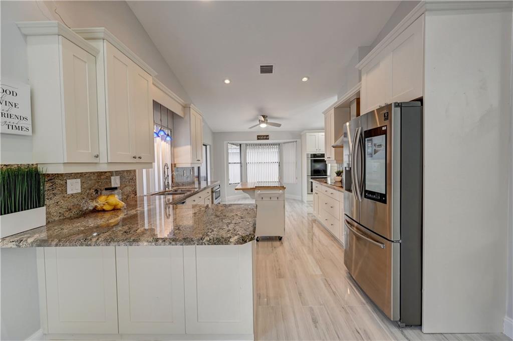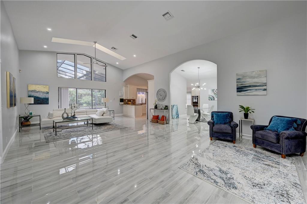 Spectacular 4 bedroom, 2 ½ bathroom move-in ready home, with screened pool, in an exclusive gated community. This home features high vaulted ceilings with skylights and tons of modern recessed lighting. You are sure to save a lot in your electricity bills with the solar water heater system. The soft water system is perfect for reducing/eliminating chemicals in the tap water. This spacious home features a custom kitchen with 42” kitchen cabinets, moveable island, double ovens, drawer microwave, and a brand new refrigerator with a Family Hub that has a computer system. You will love the new and upgraded bathrooms with modern fixtures, LED mirrors, and rainfall showers. The new closet organizers are sure to impress you. This home comes complete with a security system and lots of upgrades.