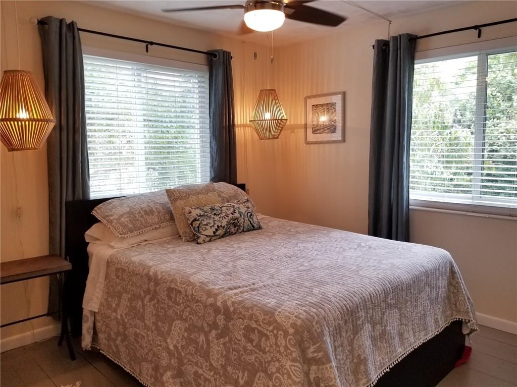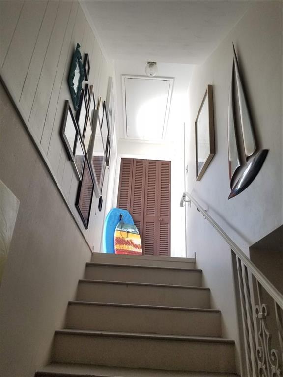 Unique layout offers common entry to 2/1 apartment (up) with balcony - set up as vacation rental called The Squirrel Upstairs. Downstairs has a huge bedroom (20x14), walk-in closet, large bathroom & Terrazzo floors. Good size living room & dining area combo with wood laminate flooring (Terrazzo under). The oversized 2-car garage (24x22) has a laundry room and 1/2 bath. There is an 'office' on the side of garage with flat roof replaced in 2013. Updated in past few years: Impact glass, doors & Broten garage, 2 a/c units (up & down), elec panels, 2 water heaters, fans, lighting, garage 1/2 bath, washing machine, stove, interior/exterior paint & tile roof got elastomeric coating 2019. Just minutes from everything - beach, airport, downtown, Whole Foods/Publix, Tap 42, I-95 & 595, Harbor Shops