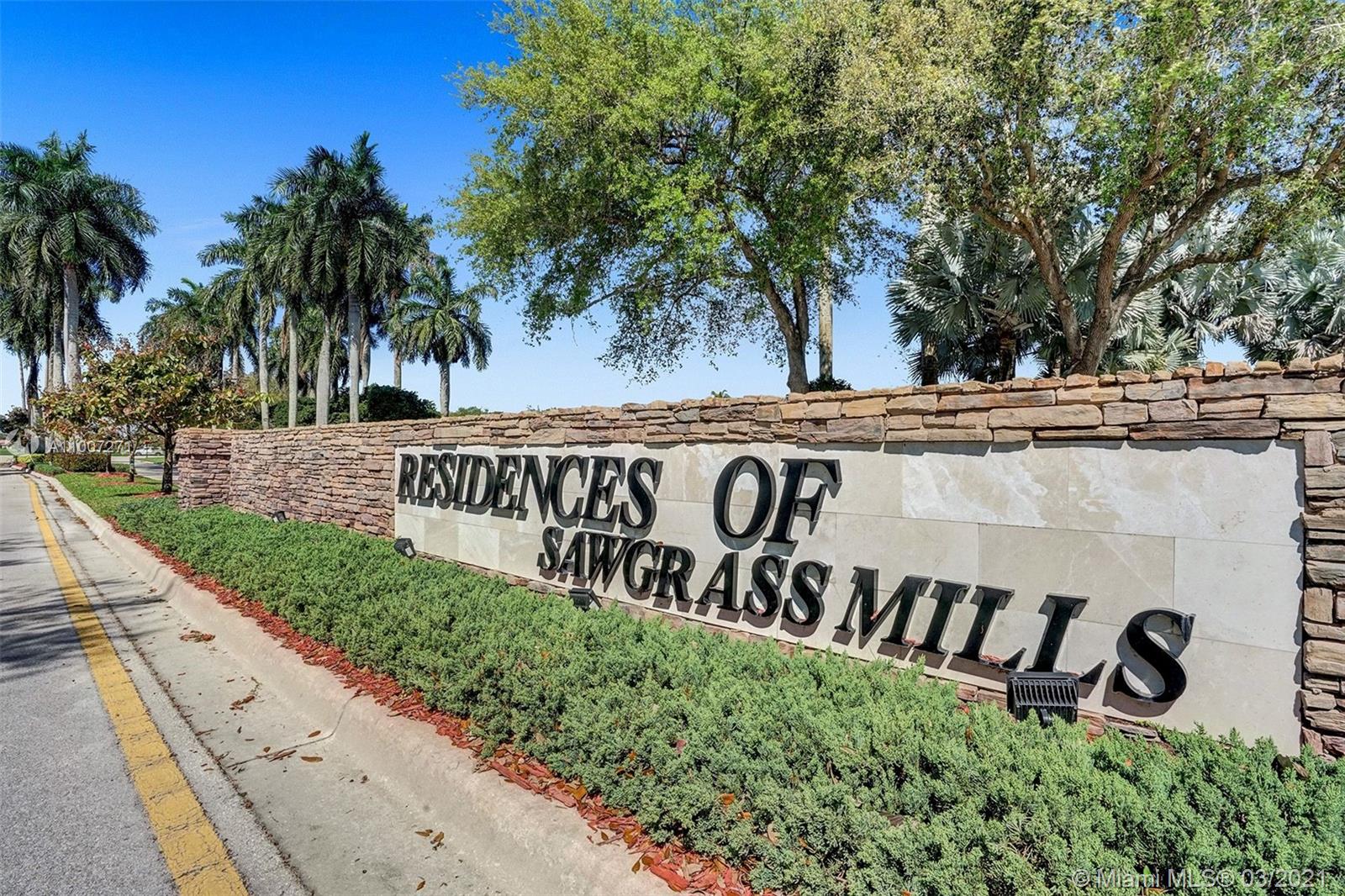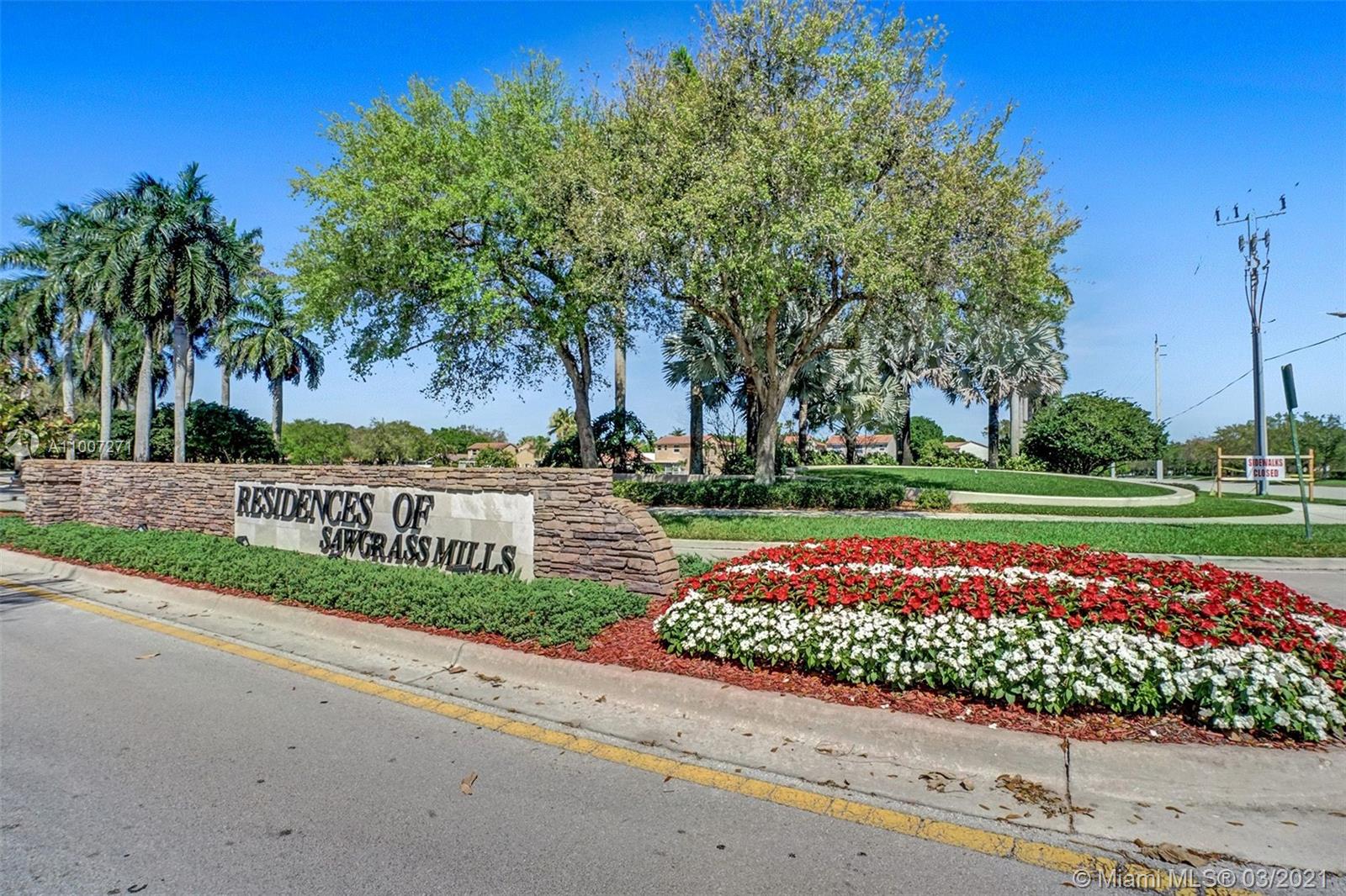 Light & bright, soaring ceilings greet you upon entering this updated two story single family home in Sunset Bay, a subdivision of the desirable Residences of Sawgrass Mills. Beautiful newly renovated kitchen has stainless steel appliances, white cabinets & quartz countertops. Slider leads to the fully fenced backyard patio for easy outdoor dining. Main floor is tiled. Carpet in bedrooms and on stairs. Master bedroom is located downstairs with a renovated bathroom. Two bedrooms upstairs share a Jack & Jill bath. One car garage plus driveway accommodates 2 more vehicles. HOA covers lawn service for front of property. Community pool. New roof 2018. New A/C 2020. Fabulous cul-de-sac location, close to shopping, restaurants, highway access and walking distance to Sawgrass Elementary.
