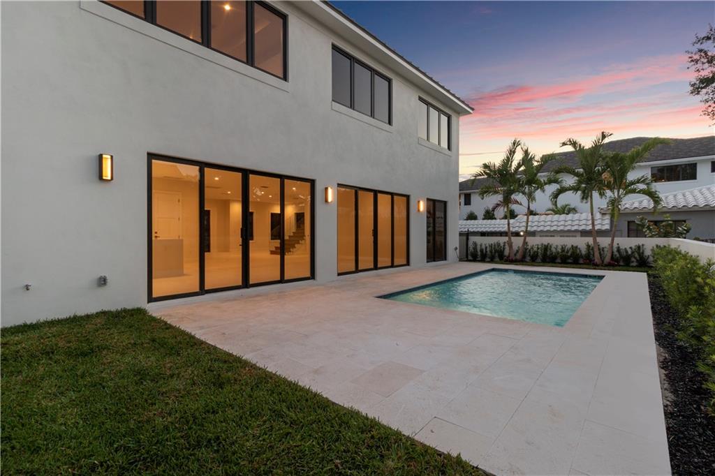 NEW CONSTRUCTION | IMMEDIATE OCCUPANCY | This transitional contemporary home is conducive to today's lifestyle with a luminous open floor plan, volume ceilings & multiple doorways blending indoor & outdoor living spaces. The outstanding curb appeal leads to an open foyer overlooking the dining area, great rm, pool & patio area. The culinary kitchen features upgraded appliances, tremendous storage & oversized counter space ideal for entertaining. The open staircase is framed with a glass enclosure & wide wood flooring throughout the 2nd floor. The spacious primary suite boasts 2 walk-in closets & lavish bathrm. Additional details include a 1st floor bedrm or home office & 2nd floor laundry. Mins to the Lauderdale Yacht Club, shopping, restaurants & gyms. Sq ft from developer