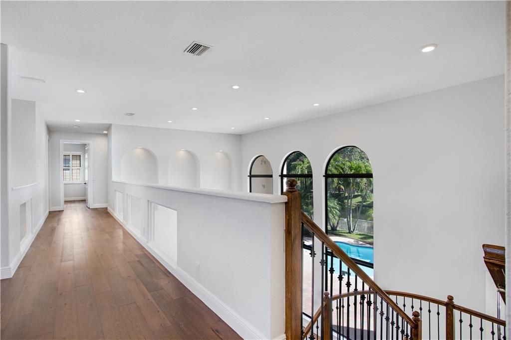Uniquely elegant "Modern Farmhouse" style home on perfect waterfront lot with expansive views. One of a kind home in the neighborhood with updates throughout to include impact windows and doors. Gorgeous, ample kitchen with wood flooring throughout the entire home. Fresh interior trim, paint, and more. Spectacular views as you walk into the home with a large patio and pool perfect for entertaining. Home has 5 bedrooms plus office, large loft/den upstairs and 5 full baths. LED lighting throughout, newly installed impact windows and doors. Roof is 5 years old. Perfect for a large family or moderate downsizing. Priced to sell. Immediate occupancy. Includes a home warranty- easy to show! Won't last!