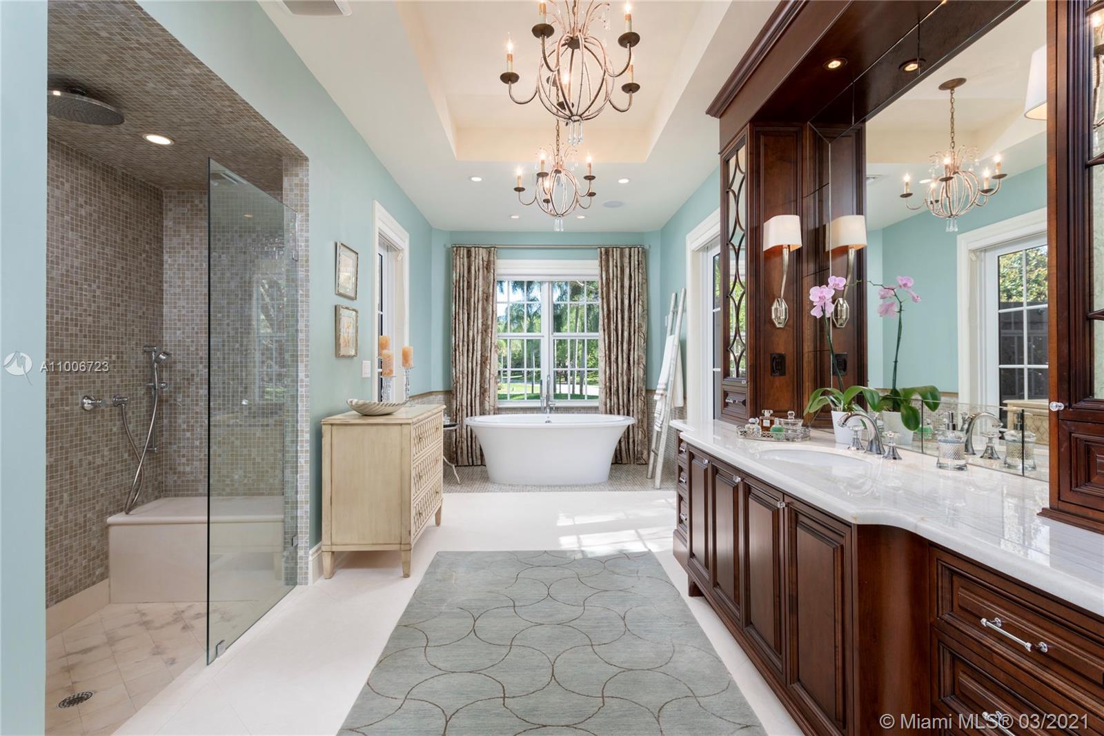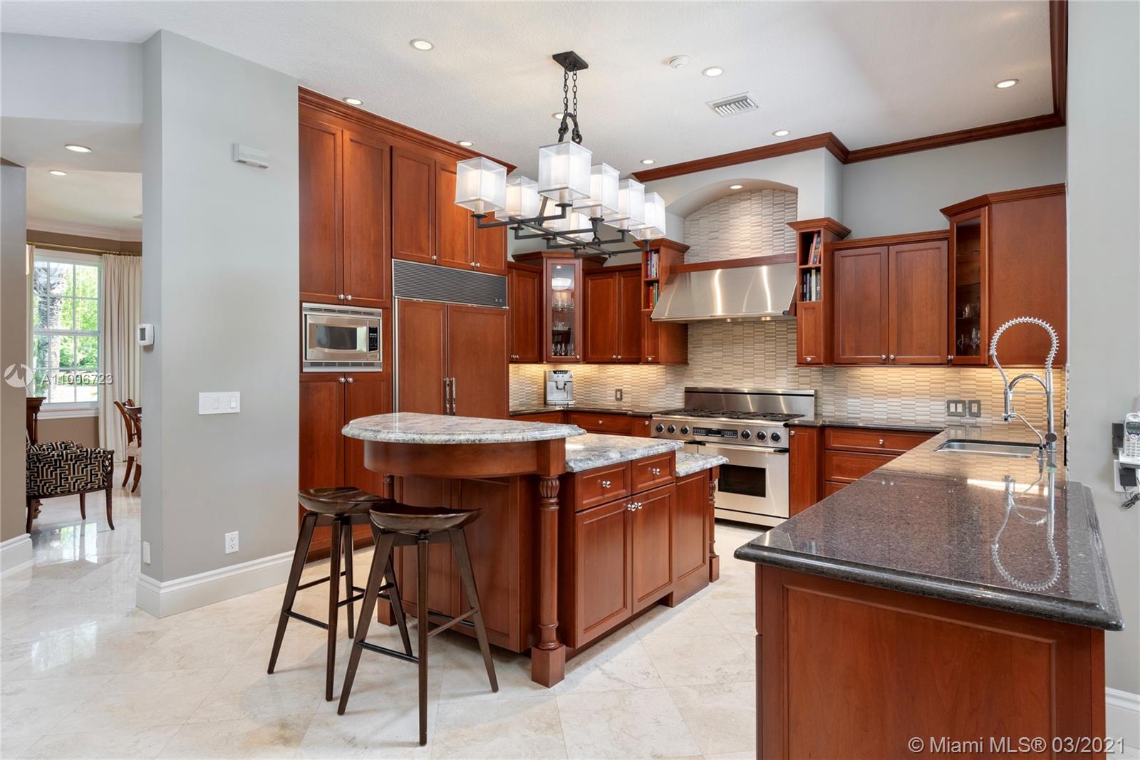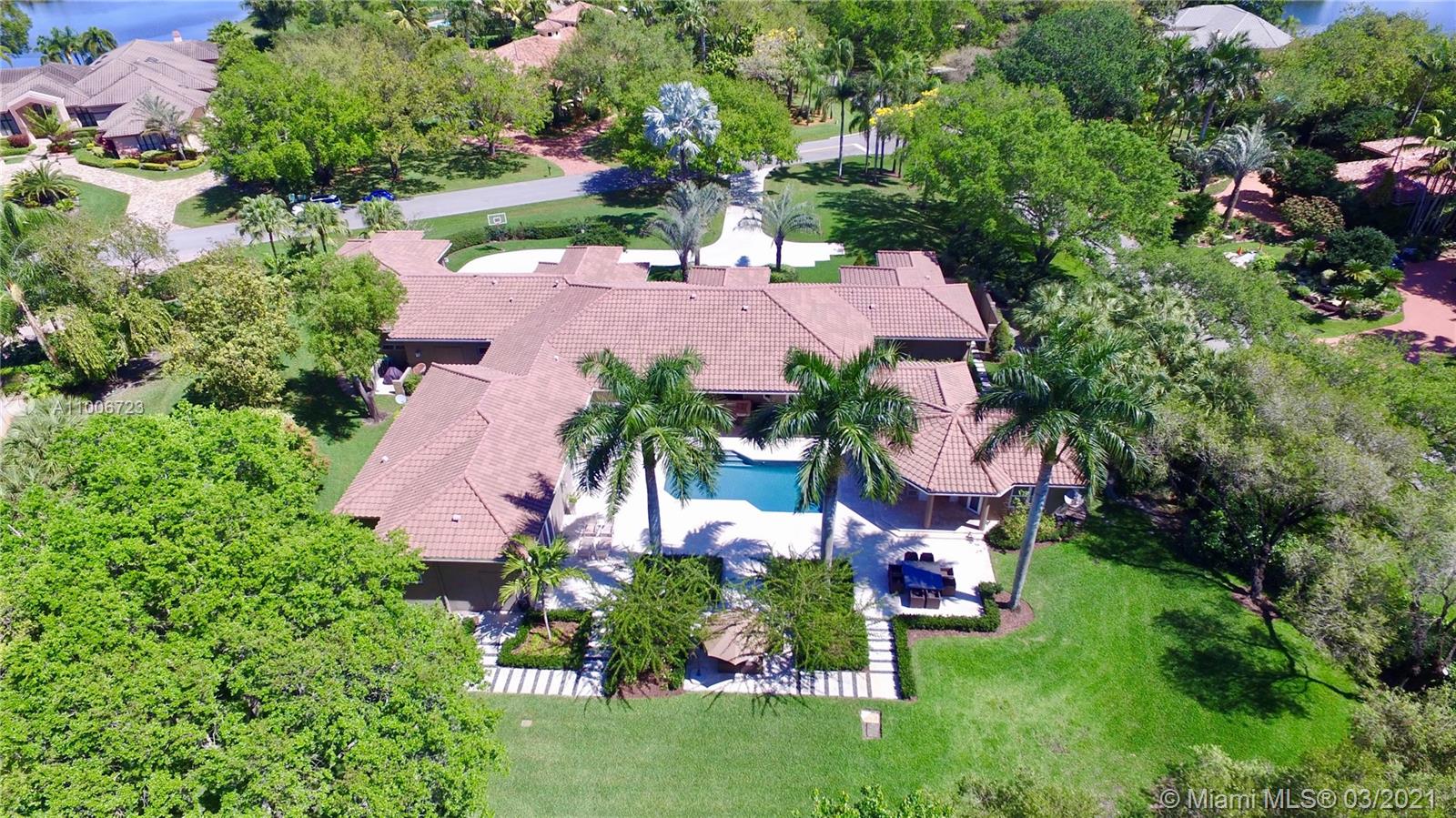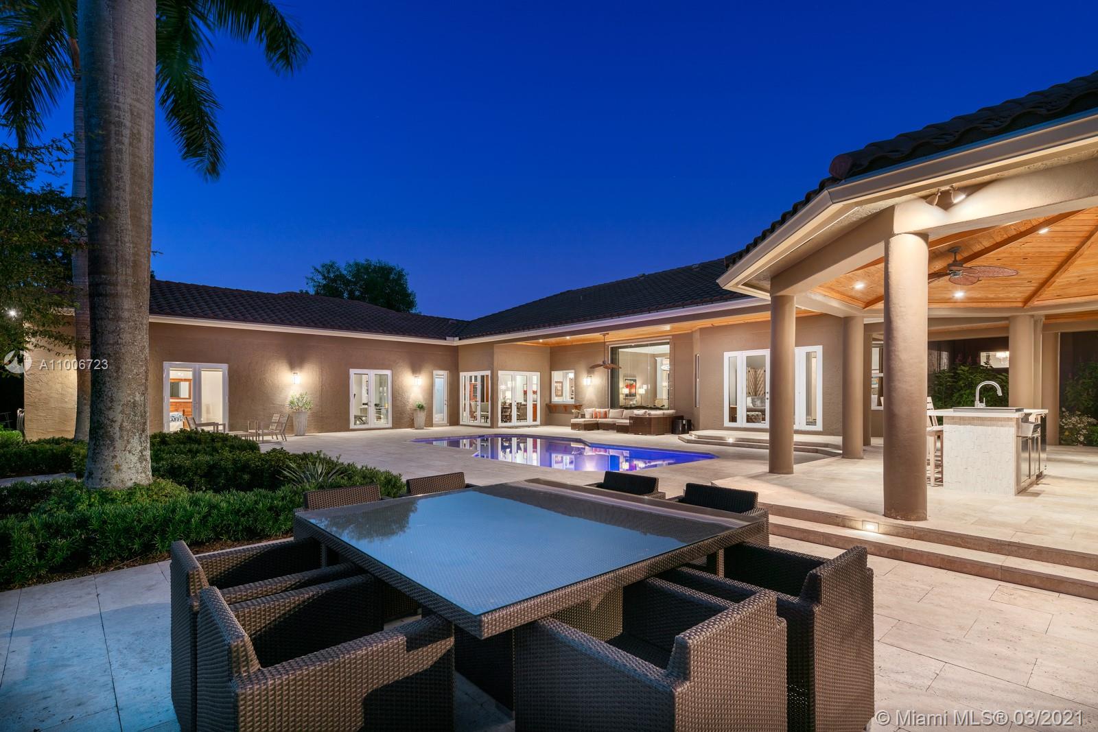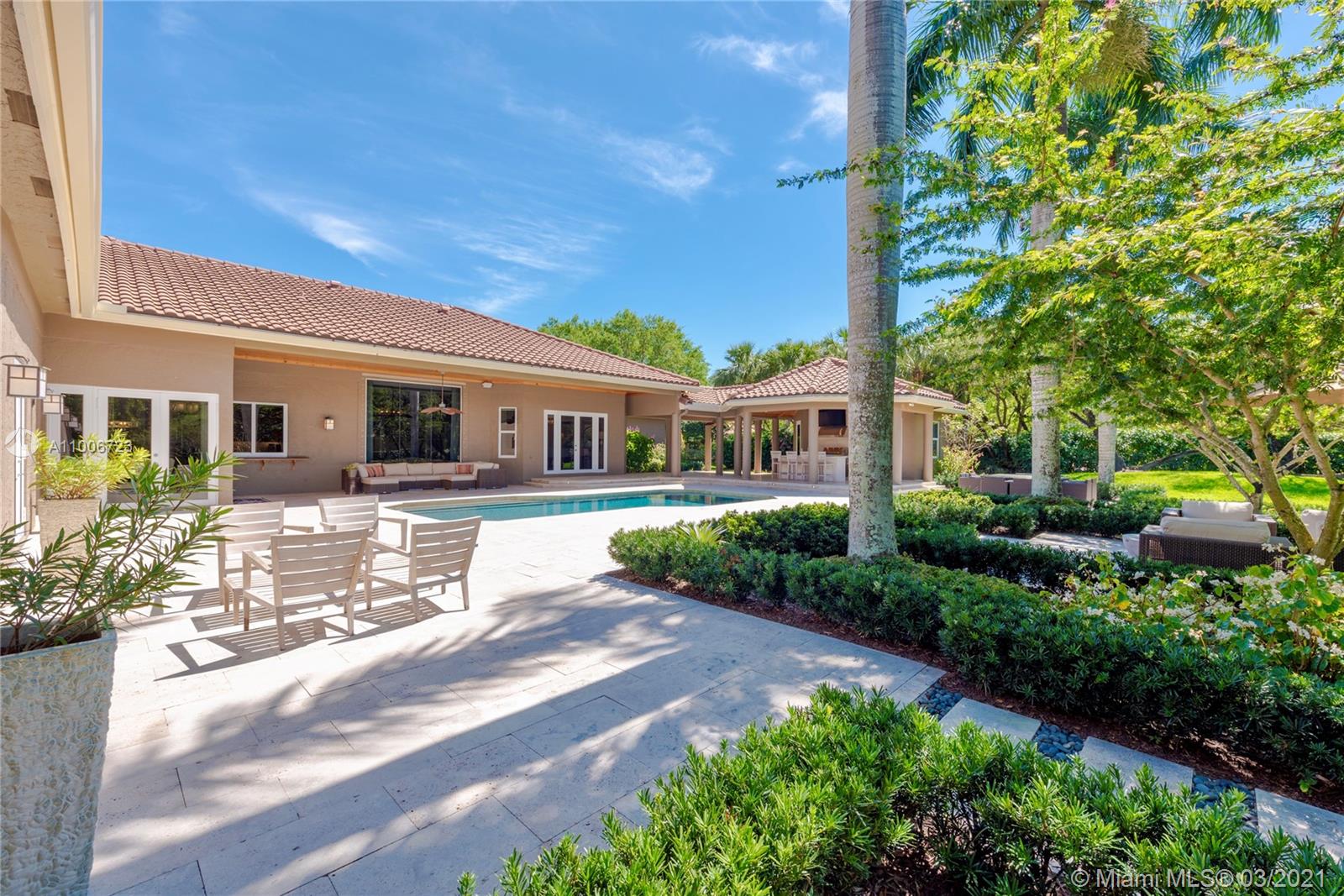 This elegant home is situated in the idyllic surroundings of Windmill Ranch Estates and sits perfectly on a 1.78 acre private lot. As you enter the home, it enchants you with views through the large picturesque windows overlooking the beautiful landscaped grounds and pool area. The expansive master suite features a sitting area and an impressive walk-in closet with island and onyx counter-tops. His and hers baths make this master a true gem. The gourmet kitchen features top of line appliances and granite counter-tops. The main residence has 4 bedrooms, 5.5 baths with office, game room, bulter's pantry and a 1 bed 1 bath guest house with summer kitchen. Custom oversized garage fits up to 6 cars with a lift. An entertainer's paradise in one of the most coveted communities in Weston!