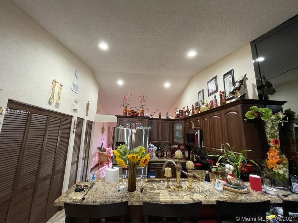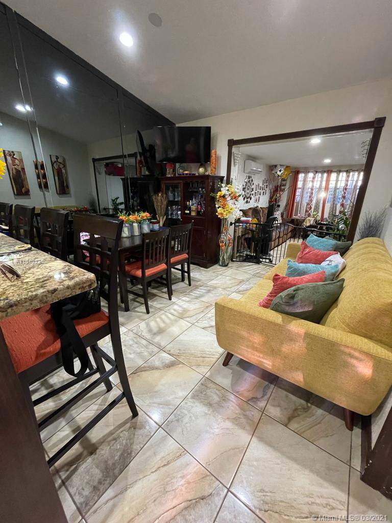Beautiful Hialeah house!. Nicely decorated. High Ceilings, Remodeled Kitchen and bathrooms, Stainless Steal appliances. Tile throughout. Relaxing Covered Terrace, Driveway fits three cars. Roof is only 2 years new. Mango and avocado tree. HOA $110 annual. Owner occupied please call LA for showing instructions. Realtors, please wear a mask.