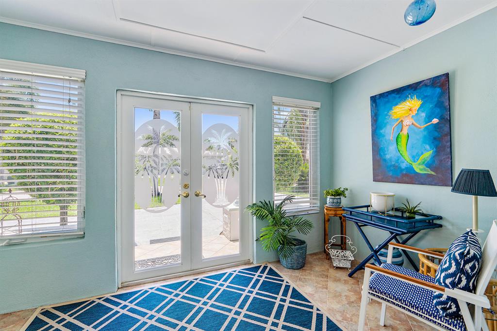 Skip to the Sailfish, saunter to the beach and sashay to the Inlet. This location is perfect. A large, interesting floor plan that can easily be modified, but currently includes three bedrooms and two and a half bathrooms. The kitchen and baths have recently been upgraded and remodeled. Current, crisp and clean. Very nice lot that could accommodate a pool. Mature avocado tree and banana trees as well. The enclosed porch brings the outside IN with plenty of light. This is the perfect spot to spend your winters.