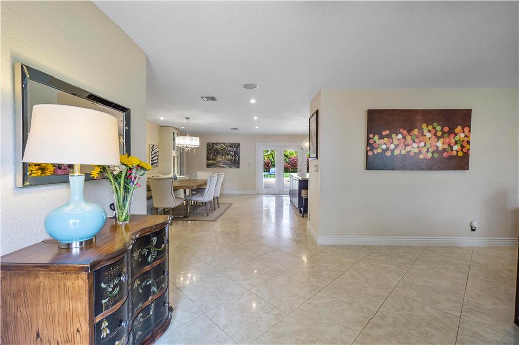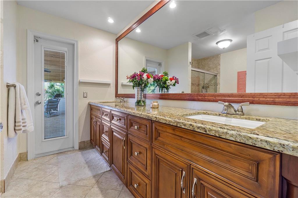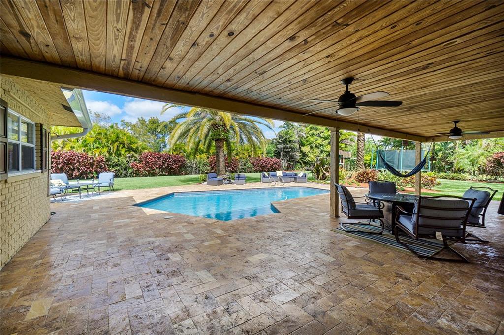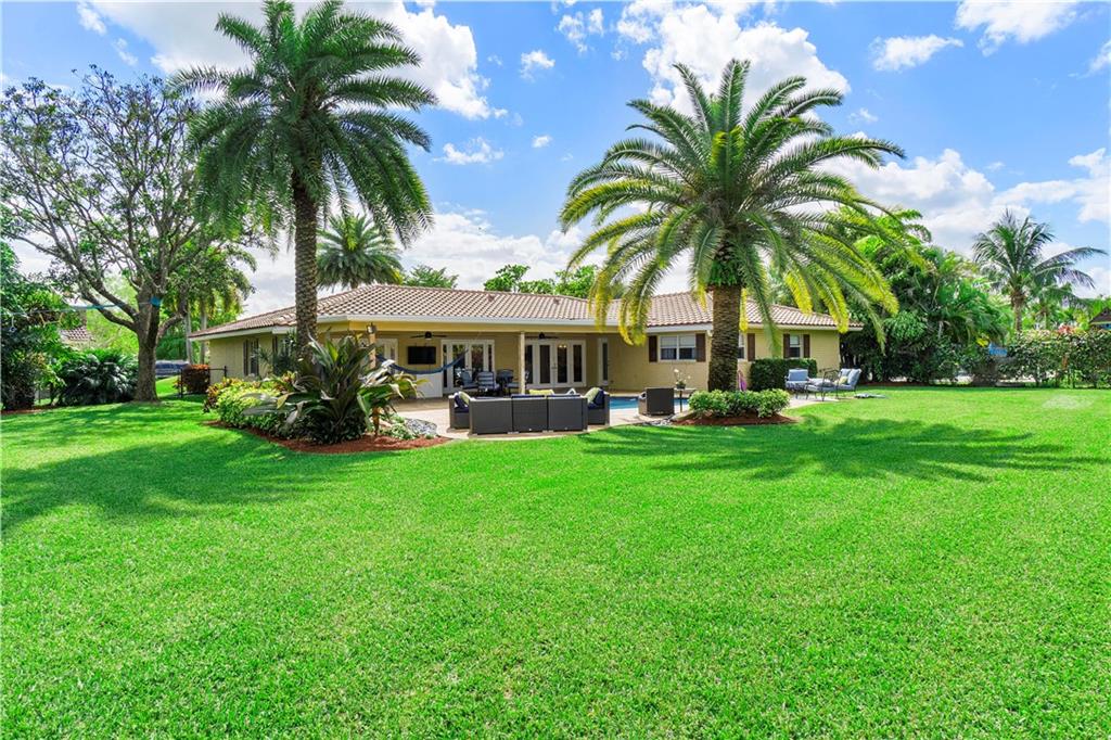 Pristine move in condition home with a lot that is over 16,000 square feet, and a 2 year new roof. This redesigned and upgraded 4 bedroom 2.5 bath home features a split bedroom plan with a cabana bath. Oversized custom closets in every bedroom. The open kitchen with an island is conveniently located for easy access to the backyard and pool. The oversized travertine patio overlooks the beautiful landscaping, giving this tropical paradise a great area for entertaining. The pool area has an outdoor shower. The A/C is 2 years new, hurricane panels for every window, nest cameras in the front and rear of the home, and NO HOA. This home is centrally located within walking distance of 2 parks and close to all major highways and shopping.