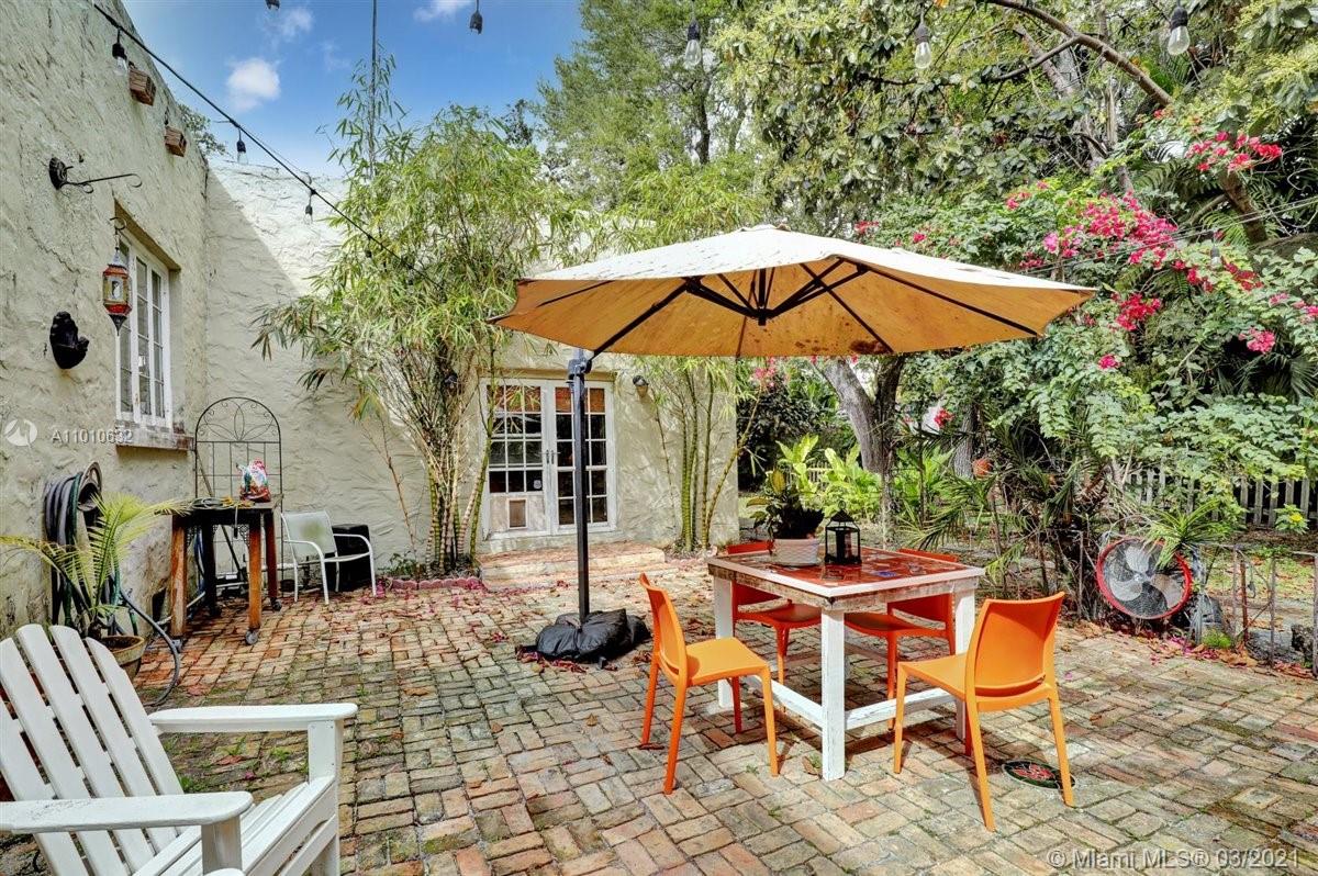 Charming Old Spanish sitting on an oversized (9,450 Sq.Ft) lot in Coral Gables. Surrounded by fruit trees and lush vegetation. Villa style with a walk in foyer, living room with gas fireplace, dining room, eat-in kitchen, 2 bedrooms and 2 bathrooms, and a large family room that leads to a Chicago brick paved court yard. Detached garage.