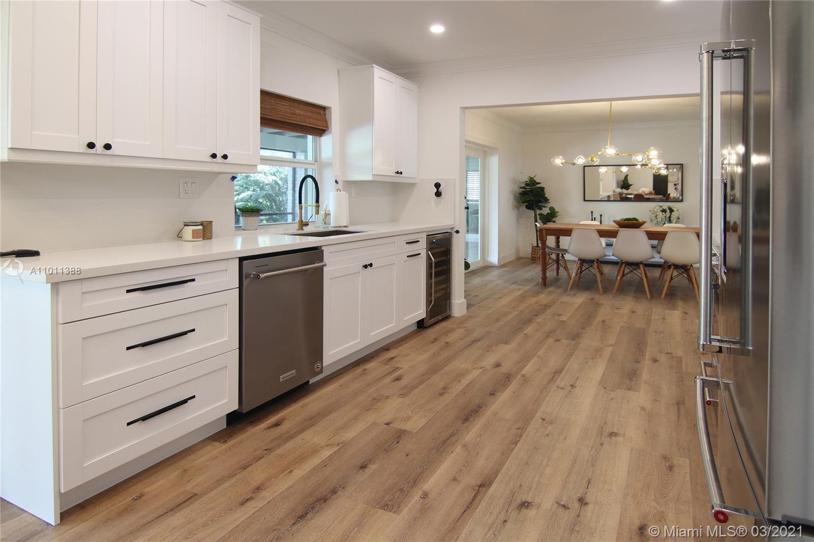 This newly remodeled 4/2.5 home with an office sits on a quiet cul-the-sac on a canal. The open lay out is filled with natural light and offers 2 separate living room spaces. The eat-in kitchen is bright with quartz countertops and Kitchen Aid stainless-steel appliances. The master bedroom offers a large walk-in closet and direct access to the pool. Gorgeous new flooring throughout and ample closet spaces. Great lay out with a bright laundry room and a double car garage. All design elements have been carefully selected and customized to make this a unique home. The private backyard features a large covered terrace, pool, and great outdoor kitchen. Enjoy the peace of mind of living in a fully remodeled home with a new roof, new impact windows and updated plumbing. Designed by Porta Negra.