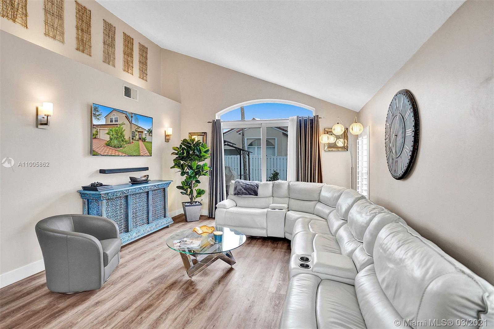 Wow! This beautiful totally updated Silver Lakes home features two stories filled with elegant upgrades. Luxurious high-grade vinyl plank floors. Plantation shutters. Volume ceiling. Designer colors. Kitchen features granite counters, solid wood cabinets, SS appliances, and a bay-window. Big master suite with a huge walk-in closet and seating area. Oversized shower has two shower heads, Roman tub, two vanities, and private toilet. Spacious family room with French doors and service bar. Separate laundry room with newer washer/dryer. Hurricane impact window and doors. Well maintained yard with Palm trees, gazebo, large patio and plenty of room for a pool. Oversized two car garage. Outdoor storage closet. Excellent schools. Perfect family neighborhood!