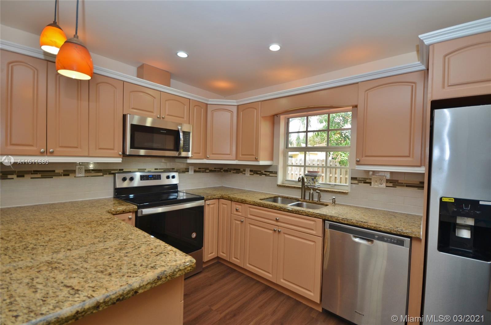 Cozy renovated single family home with 3 bedroom, 2 bathroom, one car garage in the gated community of LAKES ON THE GREEN, new stainless steel appliances, granite countertops, A/C less than 1 year old in/out, water heater, washer & dryer replaced 3 years ago. Very low maintenance of $ 150.00 monthly including gated entry with guard, security patrol 24/7, basic cable, playground. Property located off of I-75 with easy access to Turnpike, Miami Lakes& Palmetto expressway.