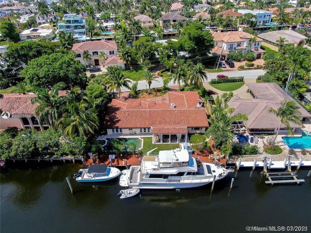 Mid-century Modern meets Spanish countryside. SERIOUS BOATERS: 100 ft deep water dockage for 1 or 2 vessels. No fixed bridges & open ocean only 18 mins away! This house has it all, when it was completely reconstructed in 2009, a new 60 year double barrel roof was put on. Your breath will be taken away with the Stunning Marble and hardwood floors, Chefs gourmet kitchen which has top of the line appliances such as Thermador, Sub Zero & Miele. This home has a full house gas generator and a 300 sqft of covered cabana and a salt water pool 3 car garage & 3 fireplaces. Vaulted ceilings everywhere. Live in the exclusive Seven Isles, make a left to walk to all Las Olas Shops, Restaurants, wonderful event happenings, or make a right for a quick walk to the beach!!! Steps from all!
