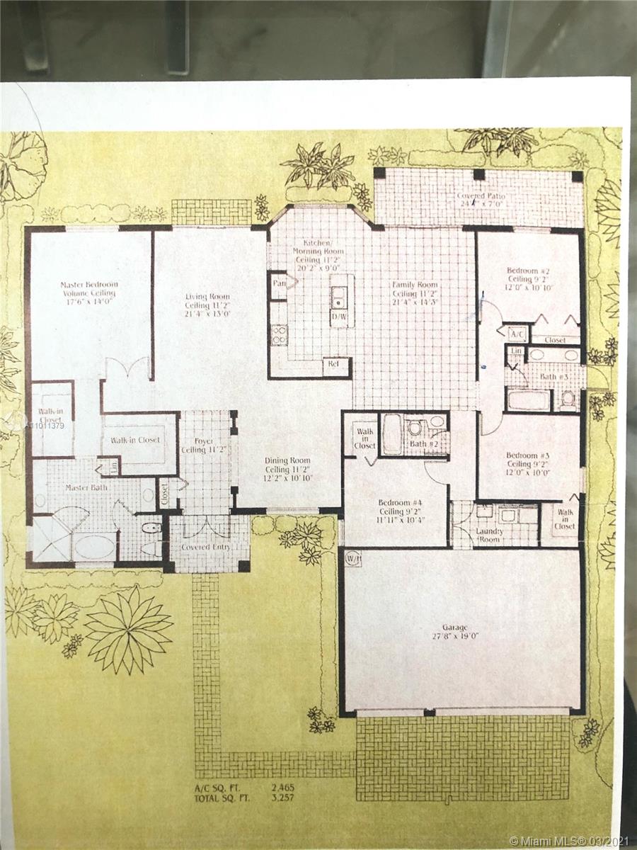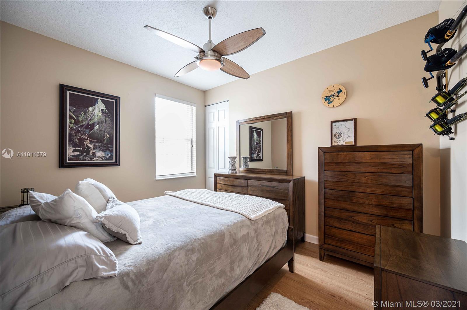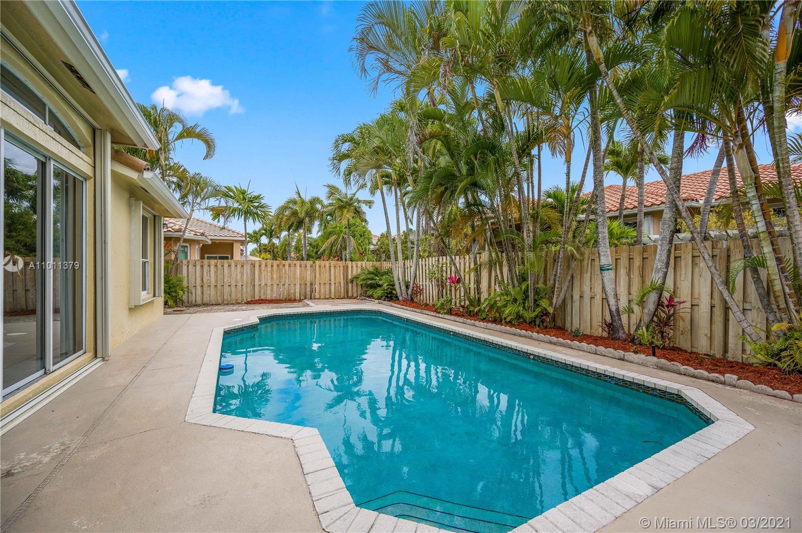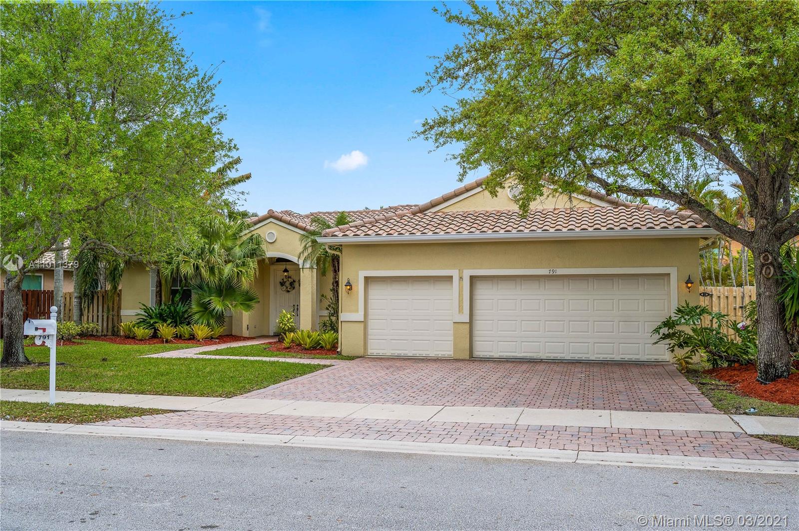 ENCANTADA's finest! This exquisite Mediterranean style one-story home that features 4 bedrooms, 3 baths, and 3 car garage. Relax in your Lush tropically landscaped yard with a 15' x 30' pool and covered patio. This home includes accordion-style hurricane shutters, barrel concrete tile roof, tall ceilings, stainless steel appliances; the open kitchen features white cabinets and white Corian countertops. Enjoy your meals overlooking the pool in your cozy breakfast nook that opens to the family room. The master bedroom has 2 large walk-in closets, the home has tile throughout, and the bedrooms have laminate wood flooring—laundry room w/ sink. Enjoy Tennis, Gym, resort-style pool, kid play areas, and community room. AC 2018, Roof 2000. Lot is 85' X 110'. HOA $138 a month paid quarterly.