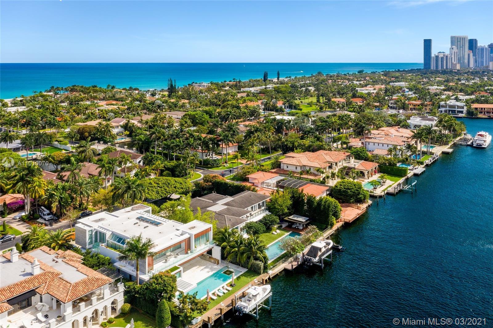 Designed by architect Cesar Molina & interior designer Fanny Haim, this sleek Bali inspired waterfront residence in coveted Golden Beach was rebuilt & modernized in 2012 to perfection. This 2-story masterpiece boasts 6 BR 6+1 BA atop a 16,500 SF lot w/ 100’ on Intracoastal waterway. Perfect for entertaining & boat lovers. Throughout the home’s 7,200+ SF living area are light-filled spaces & natural luxurious finishes maximizing exposure to the outdoors. Downstairs living spaces, kitchen, and bedrooms designed to amplify views. Defining spaces warm up the airy modern floorplan, a casual family room enveloped w/ partial rich walnut lined walls. Blissful outdoor spaces by world-renowned Swiss landscape architect Enea Garden Design feature Orchid filled trees & a rich cumaru-wrapped gazebo.