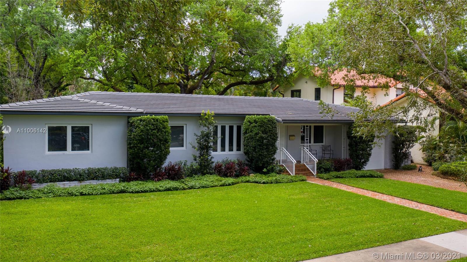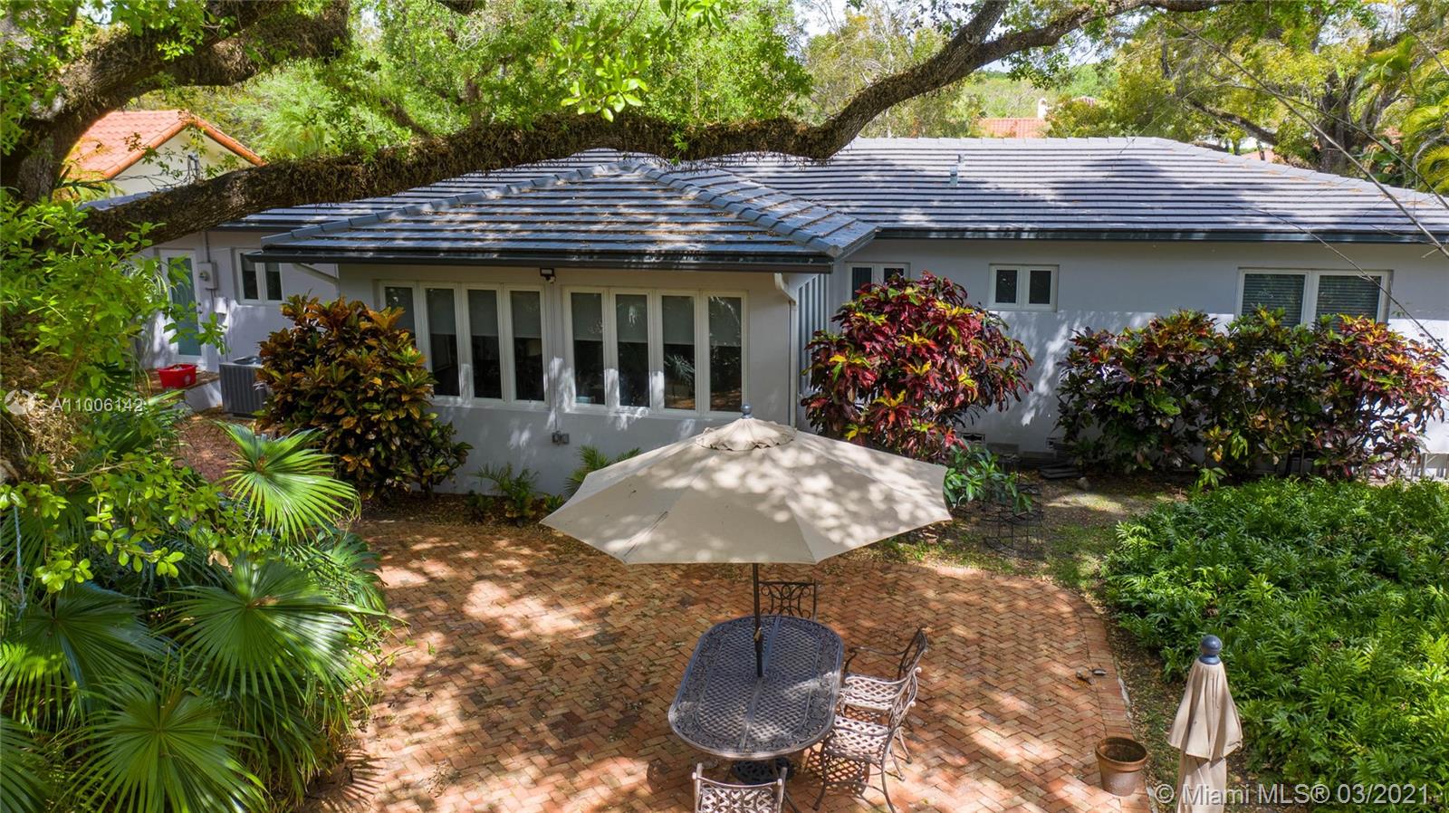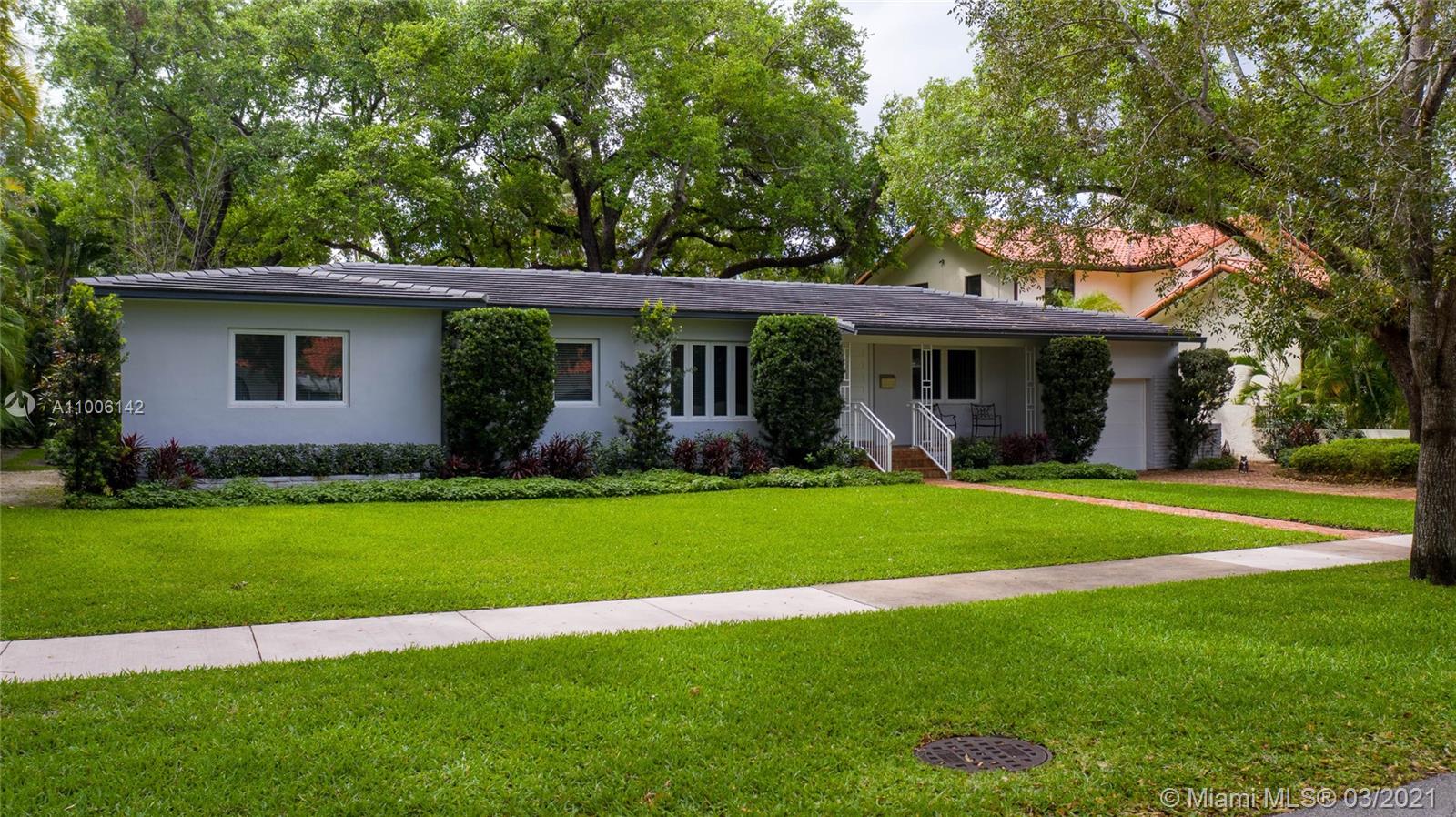 A rare opportunity in North Gables, never been on the market! Couple of blocks away from Biltmore Golf Course and Historic Venetian Pool! Interior location on huge 13,000 sf lot with plenty room for a pool or add on. Totally remodeled and renovated! Flat tile roof is 2018, impact windows & doors, new garage door, new hardwood floors, new kitchen with quartz counters and stainless steel appliances, new bathrooms, everything re-done! Laundry room, garage has a/c great workshop. Large closets, family room, great room, central a/c 2010, new electrical, pvc plumbing, city & sewer, ADT alarm system & cameras, heavy wooded lot with Old Oak trees, Zone "X" not flood zone and no flood insurance required. Truly Nolen termite warranty.