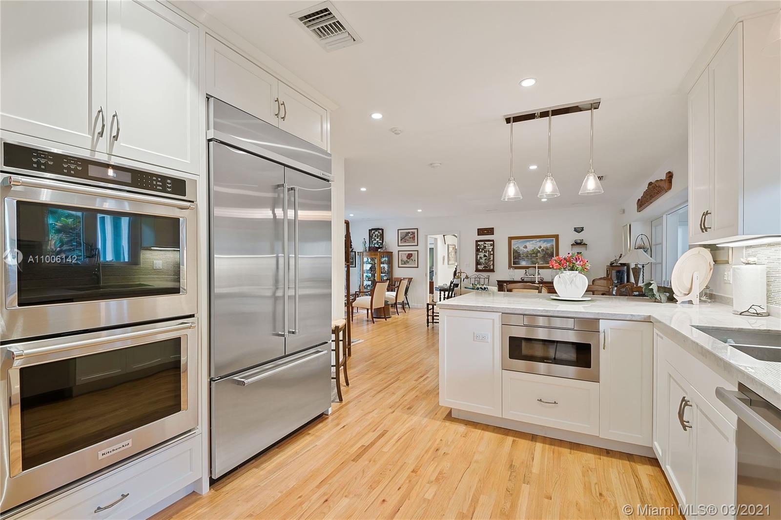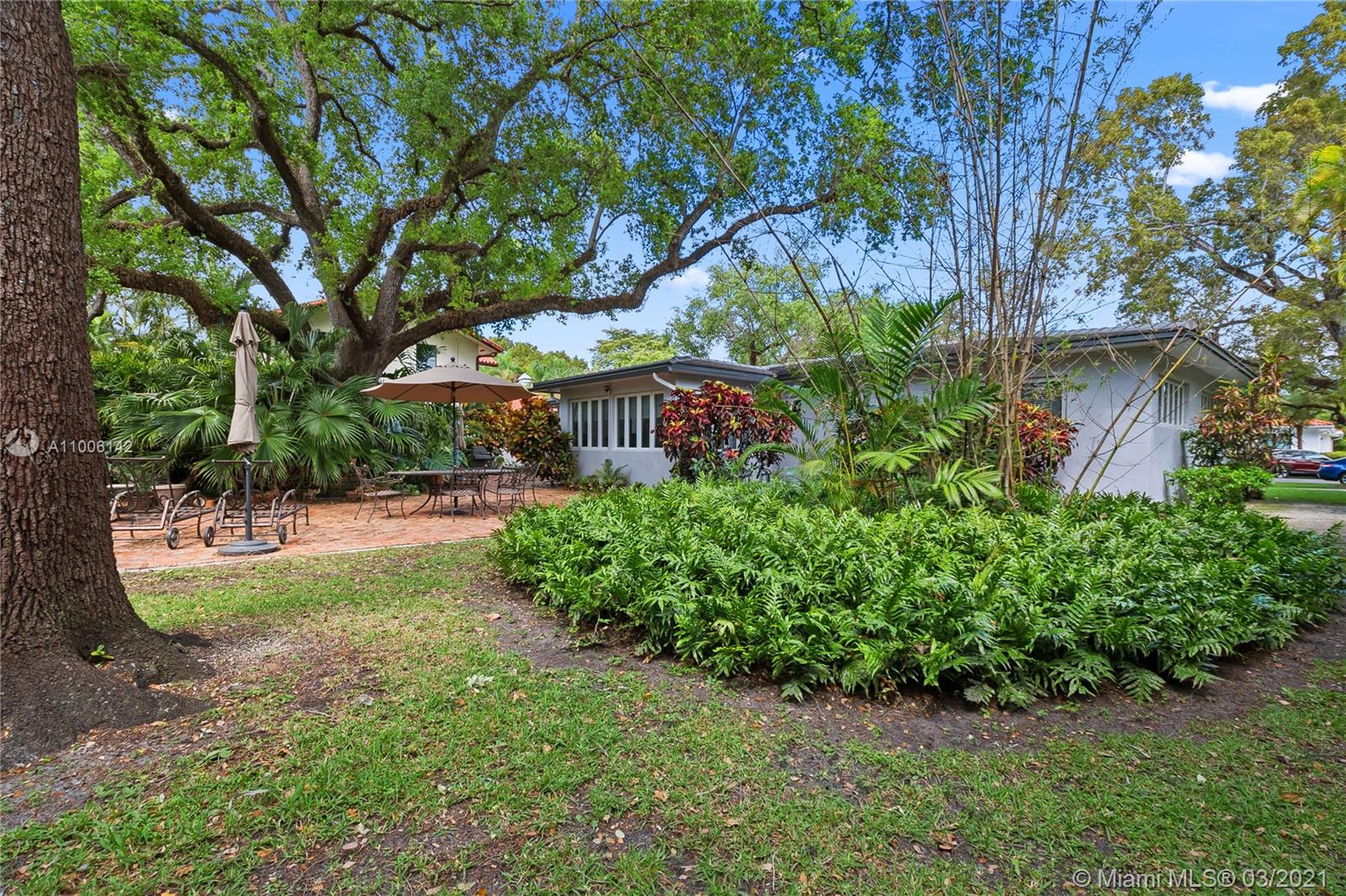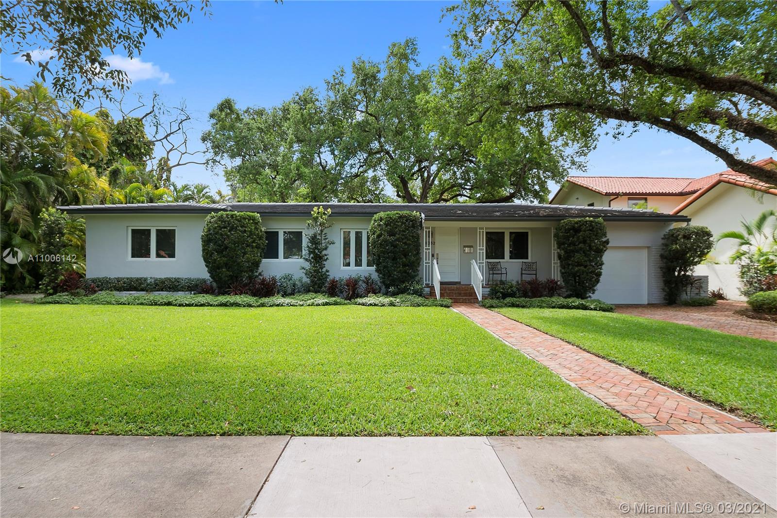 A rare opportunity in North Gables, never been on the market! Couple of blocks away from Biltmore Golf Course and Historic Venetian Pool! Interior location on huge 13,000 sf lot with plenty room for a pool or add on. Totally remodeled and renovated! Flat tile roof is 2018, impact windows & doors, new garage door, new hardwood floors, new kitchen with quartz counters and stainless steel appliances, new bathrooms, everything re-done! Laundry room, garage has a/c great workshop. Large closets, family room, great room, central a/c 2010, new electrical, pvc plumbing, city & sewer, ADT alarm system & cameras, heavy wooded lot with Old Oak trees, Zone "X" not flood zone and no flood insurance required. Truly Nolen termite warranty.