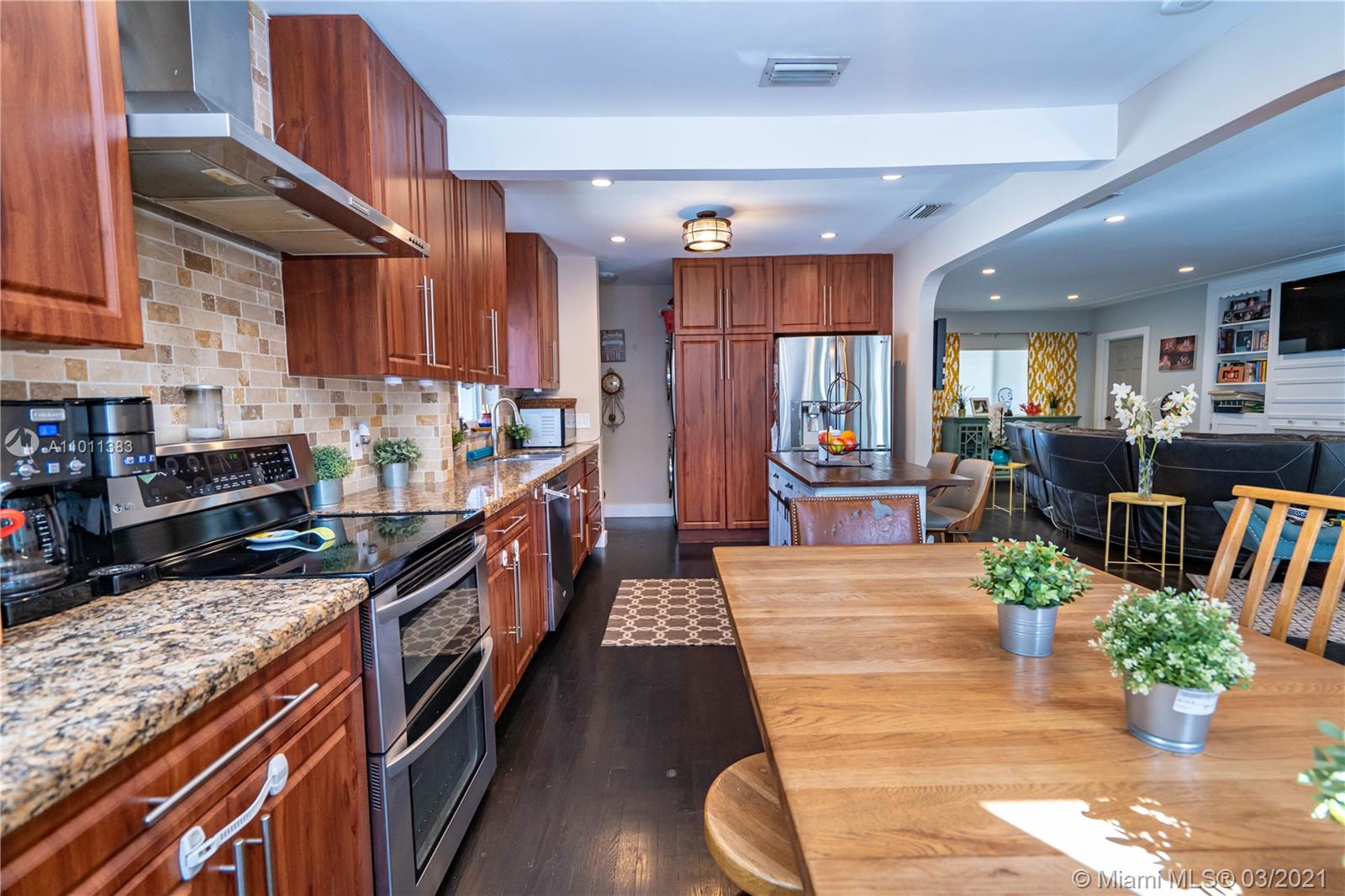 New to the market is this remarkable 3 bed 2 Bath home that presents a nice open floor plan & 1 car garage located in one of the best locations of Surfside. Renovated- upgrades include barrel roof, electric, plumbing, impact windows & doors, designer bathrooms, redone hardwood floors & stone flooring. Large gourmet kitchen w/island/ granite/SS appliances, stone backsplash, wine cooler & lots of storage. New light fixtures, window treatments & hardware throughout, 3 custom barn doors, built in bookshelf, fireplace, A/C less than 5 years old, newer paint inside & out. Florida room with lots of Natural light that leads to a fully fenced backyard w huge deck & custom awning for entertaining. Backyard has an above ground pool, kids playset, hot tub, and captivating landscaping for privacy.
