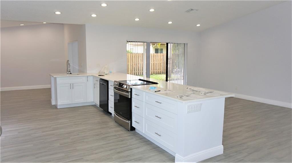 WOW!! STUNNING REMODELED MODERN POOL HOME BRAND NEW KITCHEN WITH NEW STAINLESS STEEL APPLIANCES, QUARTZ COUNTERTOPS OPEN FLOOR PLAN WITH VAULTED CEILINGS, RECESSED LED LIGHTING, NEW TILE FLOORS, NEW CARPETS, NEW INSULATION AND NEW INTERIOR/ EXTERIOR PAINT LAUNDRY ROOM, 2 CAR GARAGE AND TROPICAL LANDSCAPING WITH FENCED BACKYARD AND POOL AREA