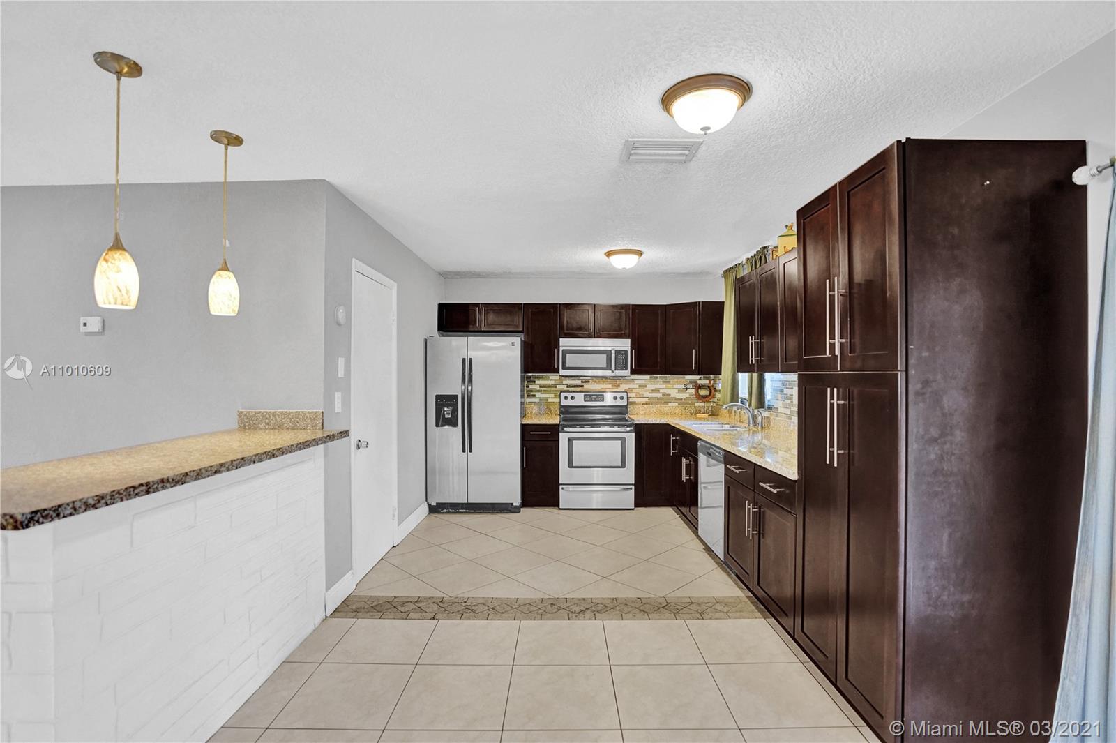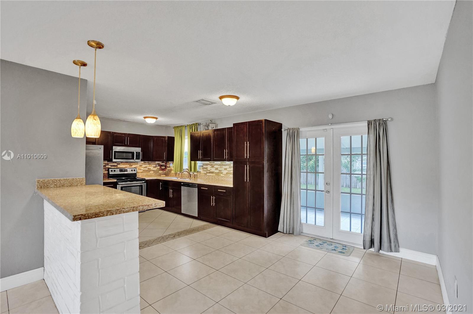Beautiful and cozy 2 bedrooms/ 2 baths single family home. Property was recently painted in exterior. Hurricane Impact Windows installed in 2019. New tankless Water Heater installed in Feb. 2021. Gorgeous Kitchen with Stainless Steel Appliances, granite counter tops with adorable breakfast counter. Nice closets with build in cabinet. Home has an Open Floor Plan with separate Laundry room. Screen lanai in back overlooking completely fenced back yard with Mango Tree. Most pipes to PVC. One Bathroom renovated. There is No HOA. Great area to call home.