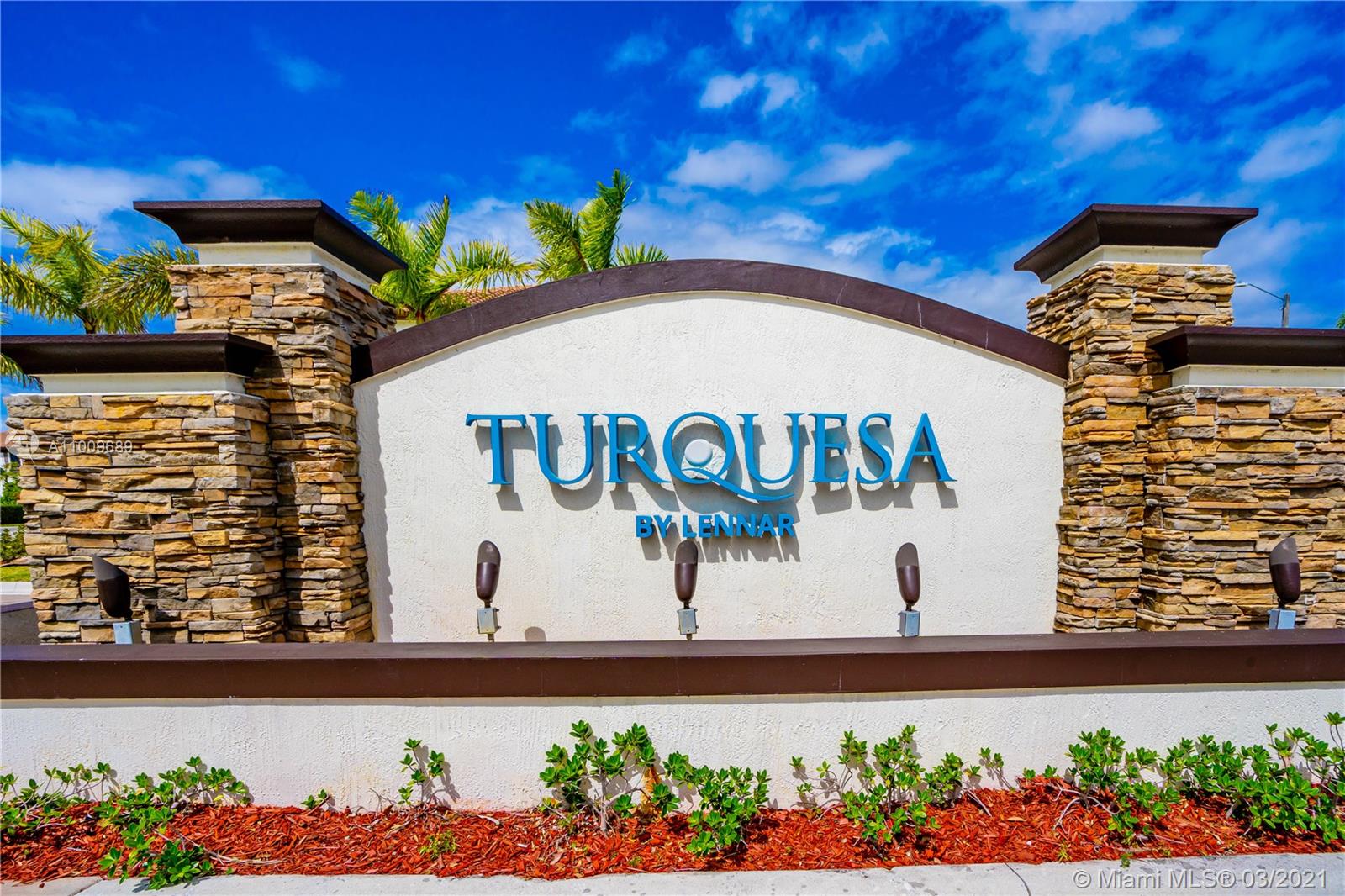 GORGEOUS LAKEFRONT CORNER LOT TOWNHOME LOCATED IN THE DESIRABLE COMMUNITY OF TURQUESA BY LENNAR. LIKE NEW, BUILT-IN 2018 PROPERTY OFFERS 3 BEDROOMS 2.5 BATHS. UPDATED KITCHEN WITH SS APPLIANCES & DARK WOOD CABINETS. EYE-CATCHING STONEWALL IN THE LIVING ROOM. TILED FLOORS THROUGHOUT THE FIRST FLOOR. UPDATED LED LIGHT FIXTURES & CEILING FANS. 1 CAR GARAGE. RING SECURITY CAMERAS, RING DOORBELL/ALARM, & ALEXA SMART HOME SYSTEM. SECOND FLOOR HAS CARPETED FLOORS AND SPACIOUS BEDROOMS. WASHER & DRYER IN THE 2ND FLOOR. AMPLE BACKYARD WITH BEAUTIFUL LANDSCAPING FINISHES OFFERS ARTIFICIAL GRASS, PAVERS, AND WHITE NATURAL GARDEN ROCKS. MUST SEE!