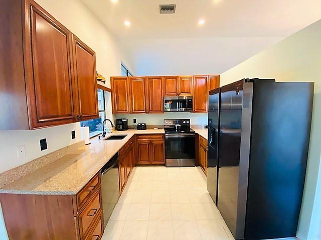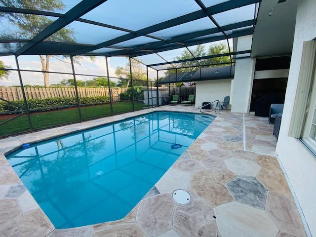 Meticulously maintained 4br/2ba/2cg S/F/H with a private screened pool & huge fenced yard. The updated kitchen is equipped with rich wood cabinets, granite counters, and brand new appliances. The large master retreat features a walk-in closet, upgraded bathroom with double sinks, walk-in shower & a slider to the patio . Relax or entertain on the large screened covered patio overlooking the heated pool & large fenced yard. Other features include a split floor plan, vaulted ceilings with knockdown texture, upgraded guest bathroom, newer A/C, accordion shutters, & security cameras are just a few highlights of this home. You will enjoy first class amenities: tennis, basketball and play areas, conveniently located close to shopping, dining, and ''A'' rated schools. LOW HOA!
