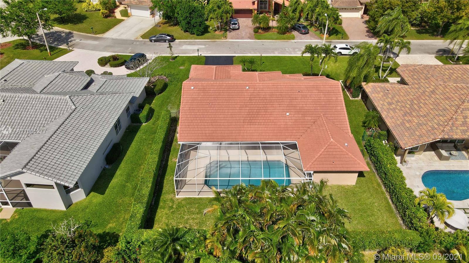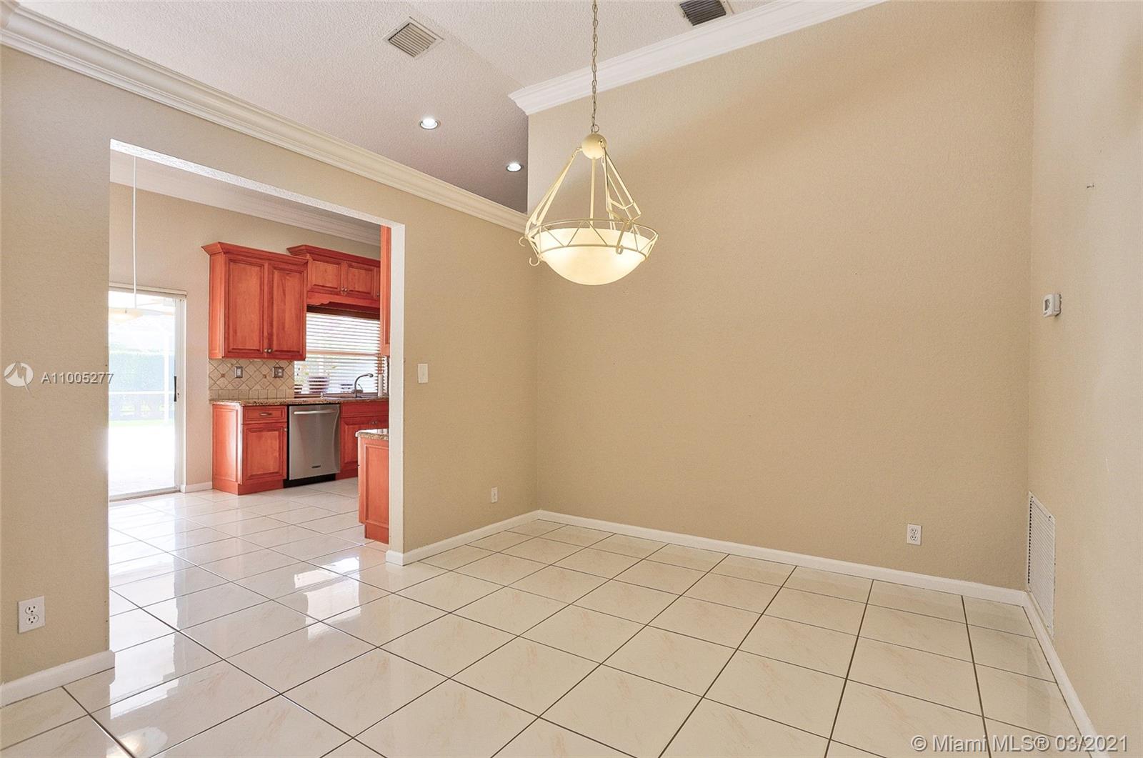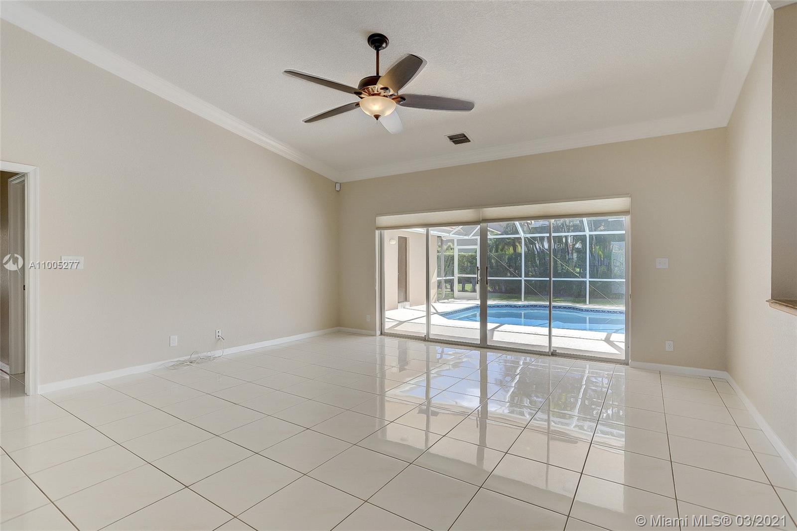 Crisp, light, bright & airy with soaring vaulted ceilings, this beautiful home is perfectly kept by original owner. Features include warm, upgraded kitchen w/granite and stainless appliances. The screened swimming pool with color changing lighting offers ample covered patio for outdoor dining and fun. Nice size bedrooms have built-in closet cabinetry, and 4th bedroom currently serves as an office. Owner's suite is spacious with excellent closet space and pretty bathroom w/double sinks, separate shower and yummy roman tub. This beauty is well cared for, is tastefully appointed with neutral tile and warm laminate flooring. Finishing touches include knockdown walls and ceilings and crown molding, dual zone a/c and hurricane shutters. Amazing neighborhood with top rated schools. Welcome Home!