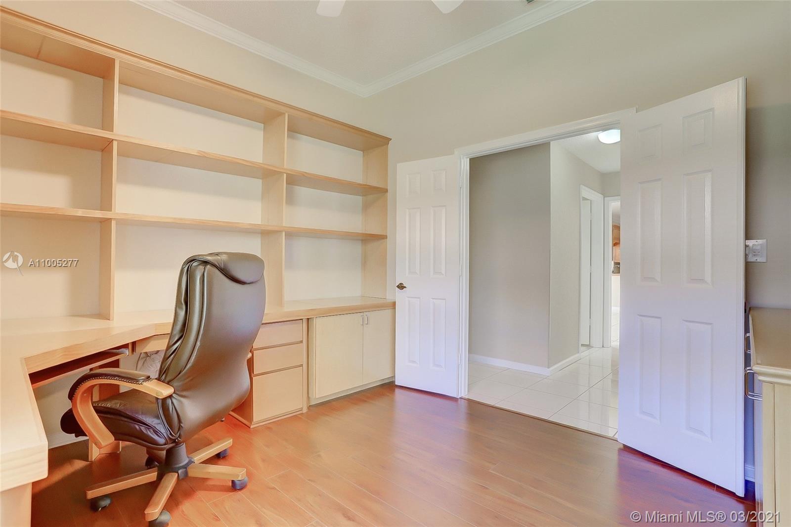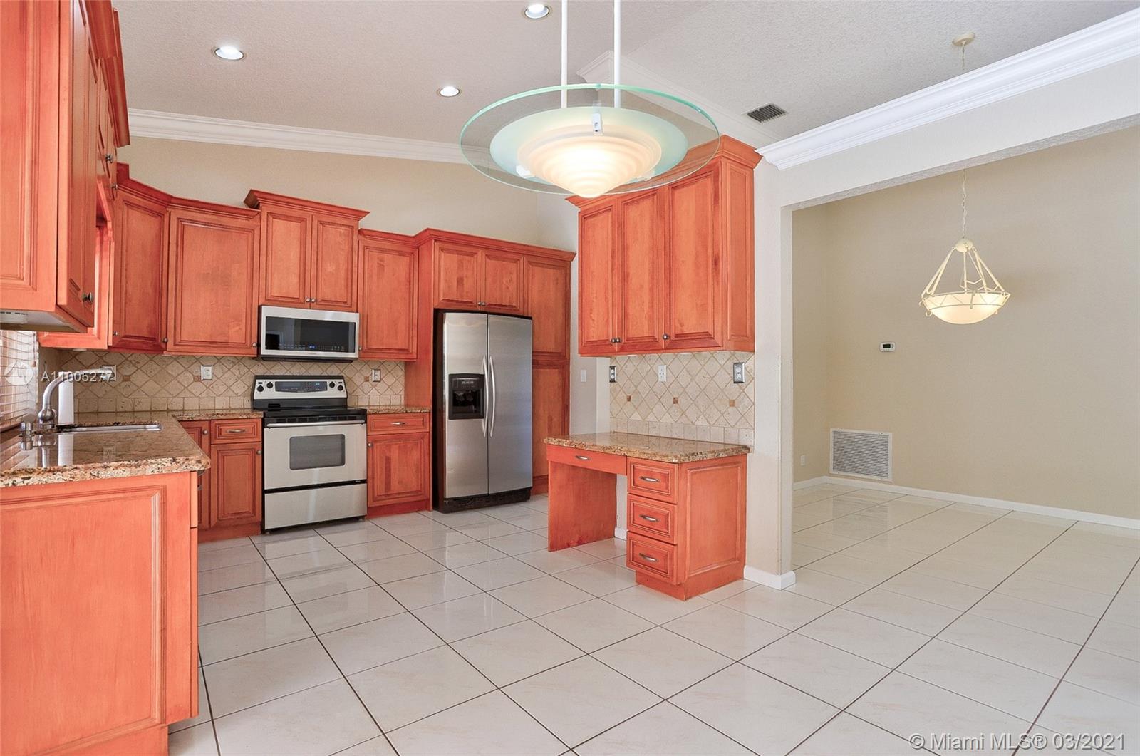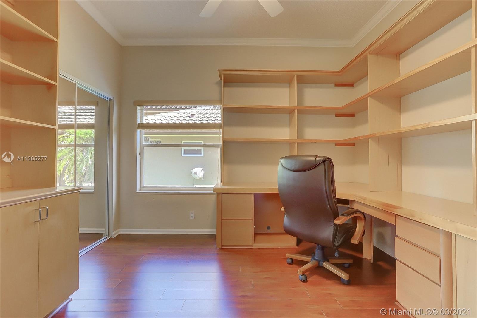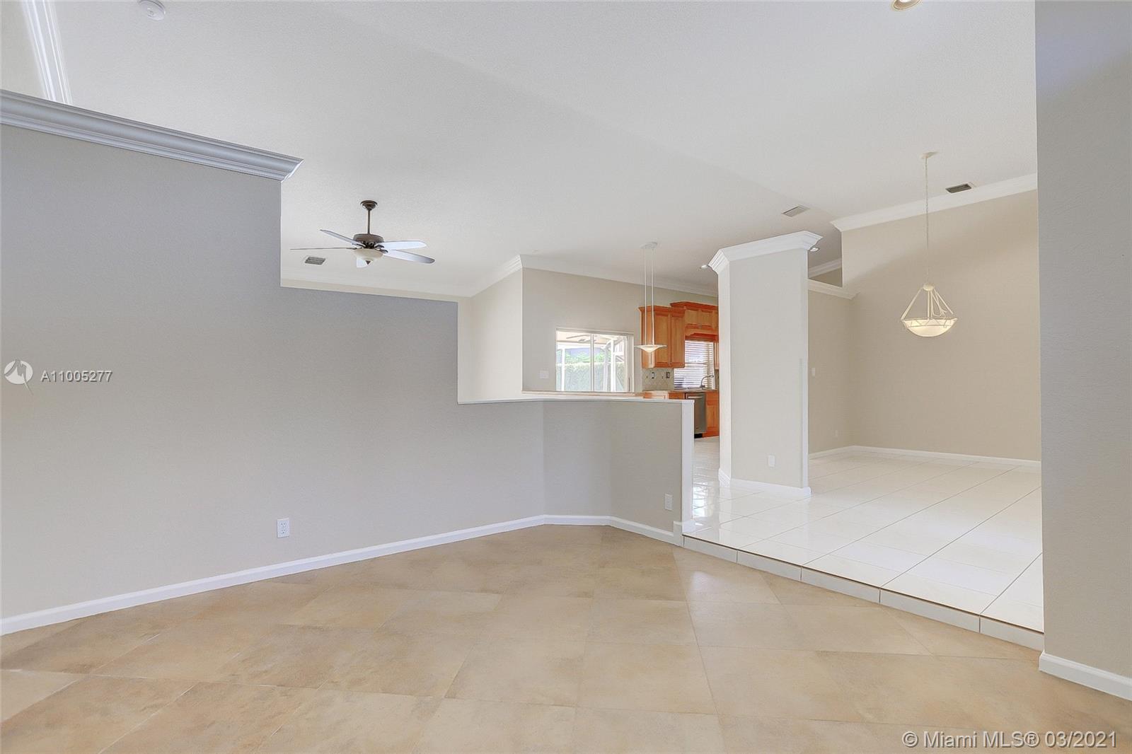 Crisp, light, bright & airy with soaring vaulted ceilings, this beautiful home is perfectly kept by original owner. Features include warm, upgraded kitchen w/granite and stainless appliances. The screened swimming pool with color changing lighting offers ample covered patio for outdoor dining and fun. Nice size bedrooms have built-in closet cabinetry, and 4th bedroom currently serves as an office. Owner's suite is spacious with excellent closet space and pretty bathroom w/double sinks, separate shower and yummy roman tub. This beauty is well cared for, is tastefully appointed with neutral tile and warm laminate flooring. Finishing touches include knockdown walls and ceilings and crown molding, dual zone a/c and hurricane shutters. Amazing neighborhood with top rated schools. Welcome Home!