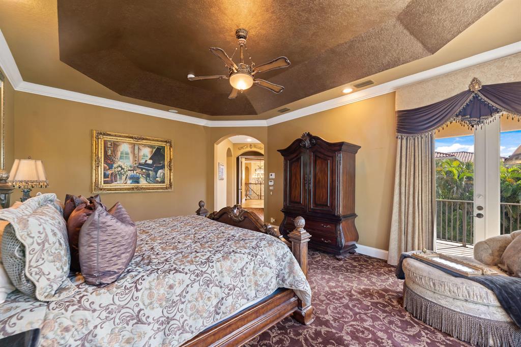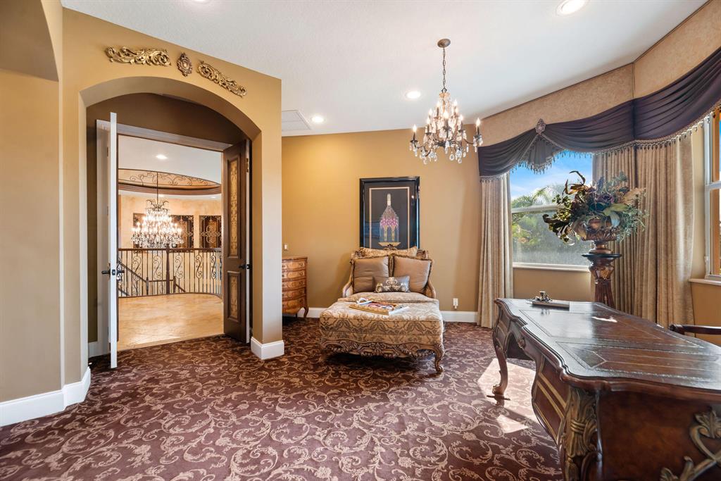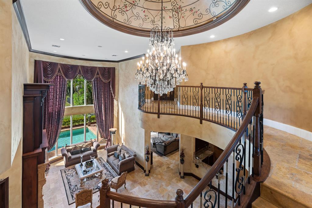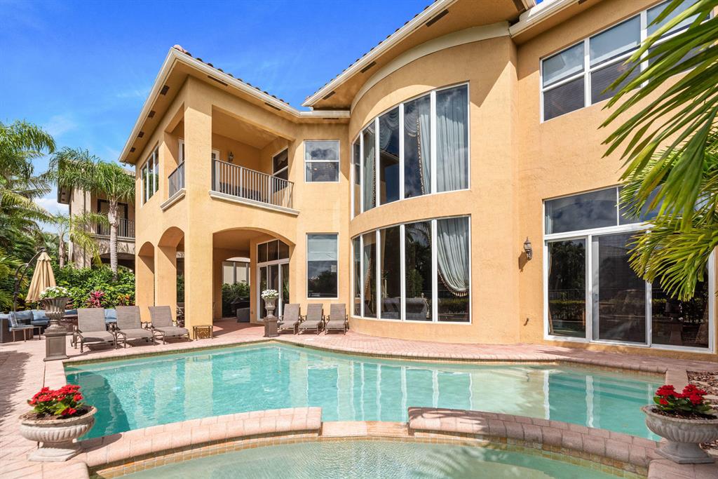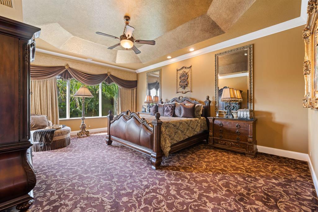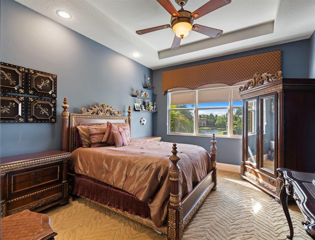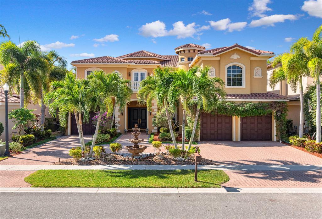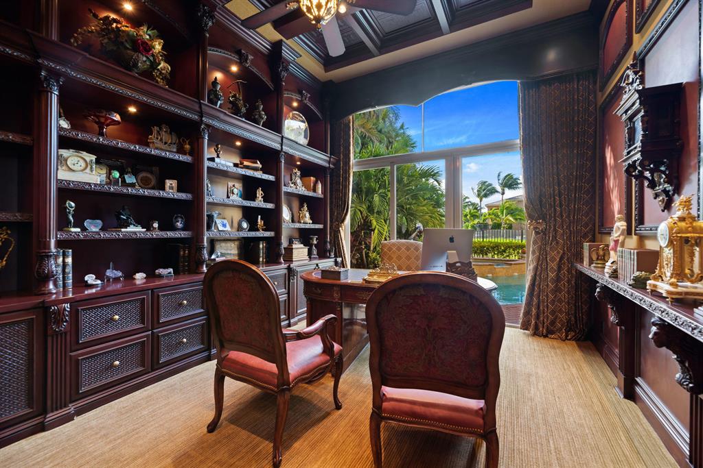 This exquisite waterfront estate awaits you. Situated in one of Boca Raton's most exclusive communities, The Oaks! Built by Gordon Homes in 2006 w/ a well-planned 8,113 total Sq Ft. floorplan and over 6,500 Sq Ft under air. 6 bedrooms + office + a home theatre & 6.2 baths. Upgrades include: Full hurricane impact glass protection, custom built-ins & finishes, Jerusalem marble floors throughout w/ the exception of the bedrooms which are carpeted, & stereo surround sound. Downstairs: 2 bedrooms + a stunning office w/ custom built-ins overlooking the tranquil setting of the beautiful pool & lake.Just off the spacious kitchen & formal dining, there's a beautiful wet bar w/ small SubZero fridge. Elevator ready! Upstairs, the spacious & elegant master suite with a separate sitting area, private